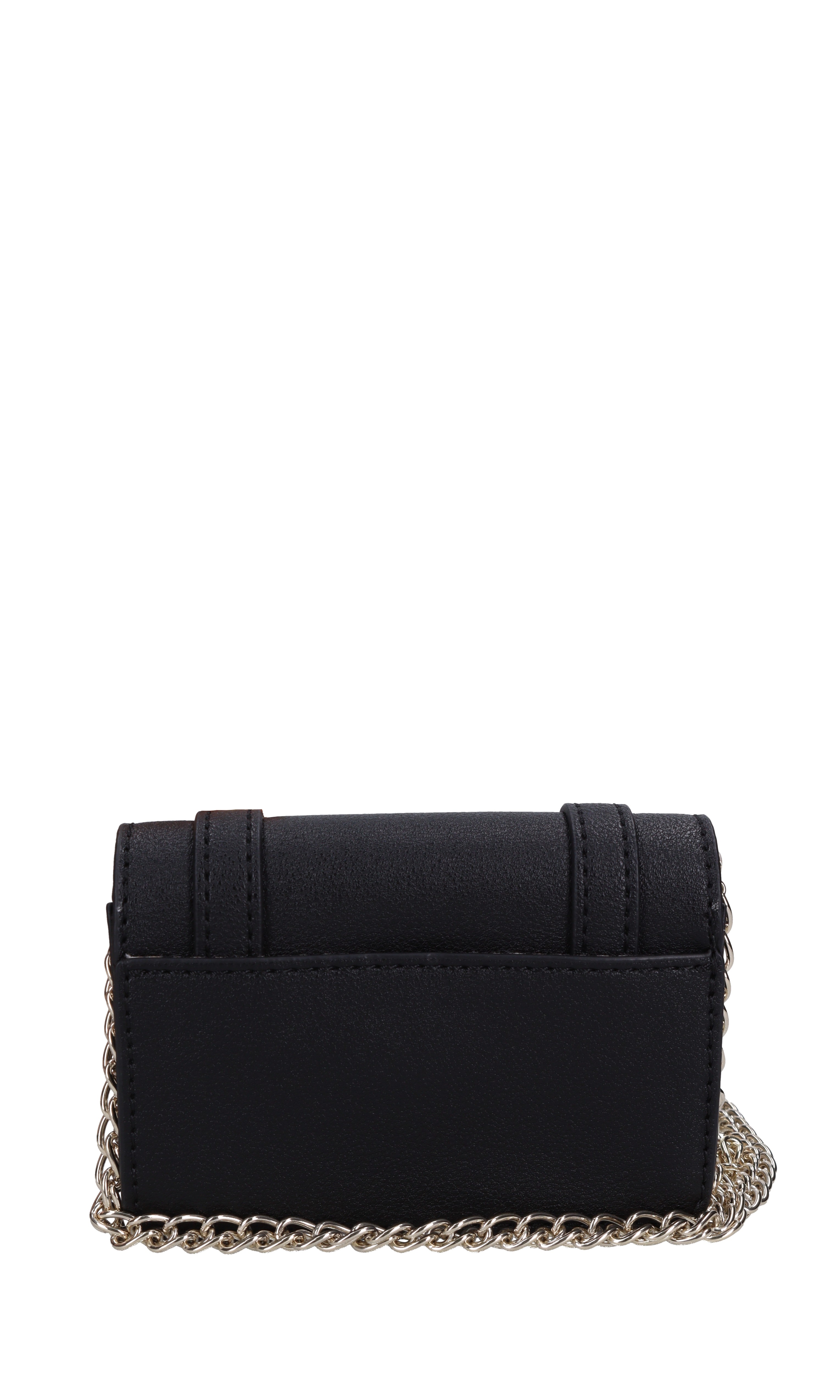 Mini faux leather bag. 1 compartment. Flap closure with snap button. Adjustable and removable shoulder strap. Shipped in a transparent bag.