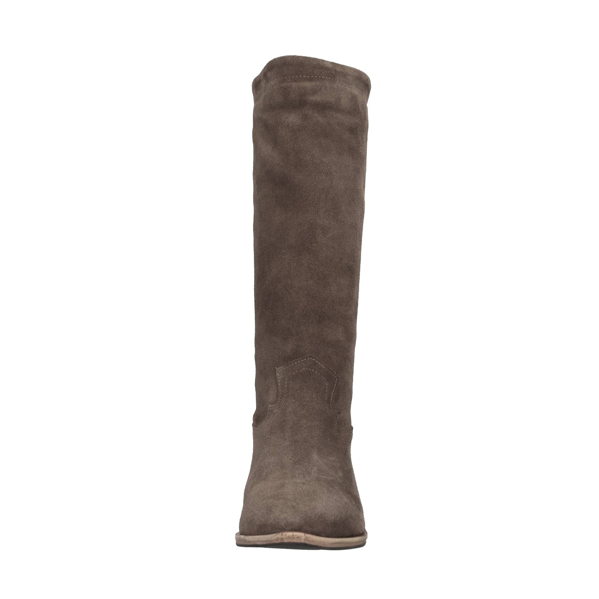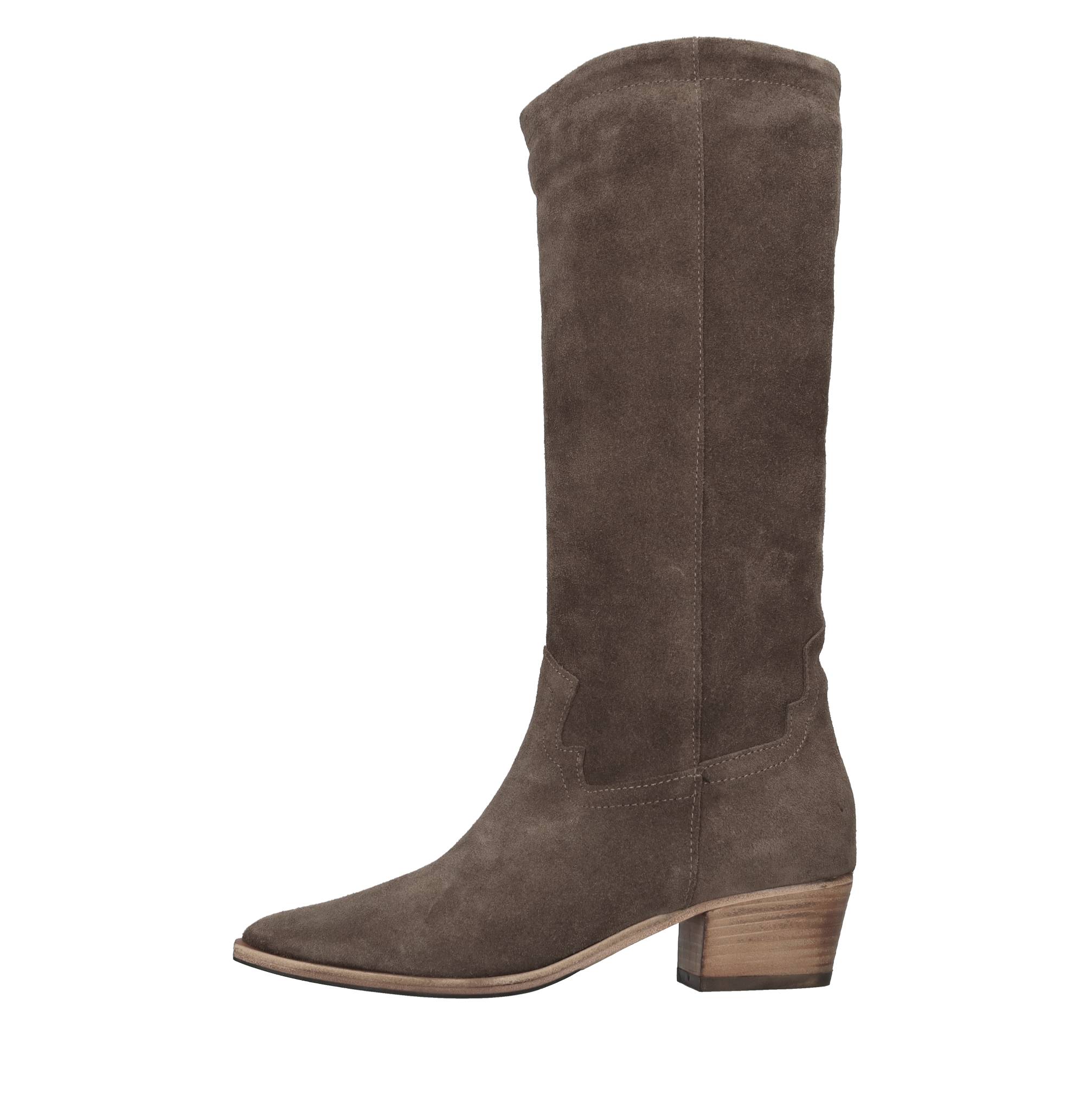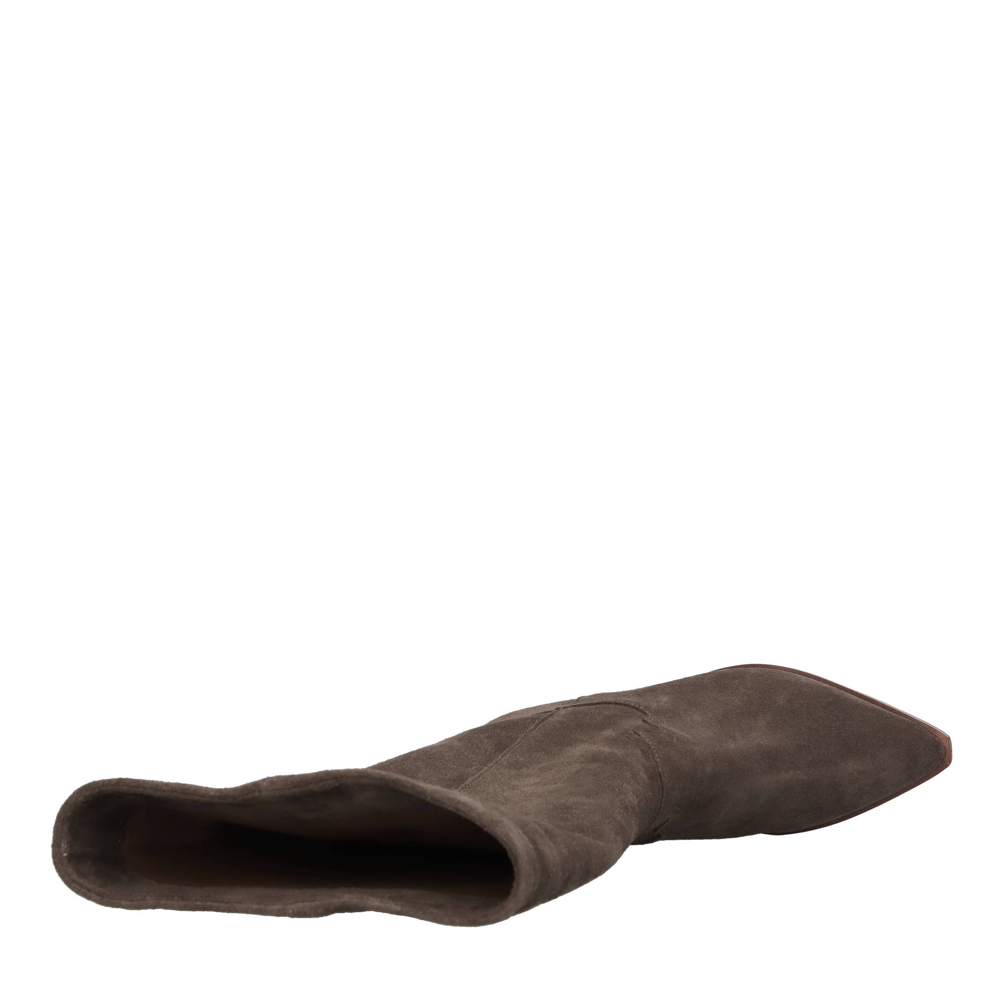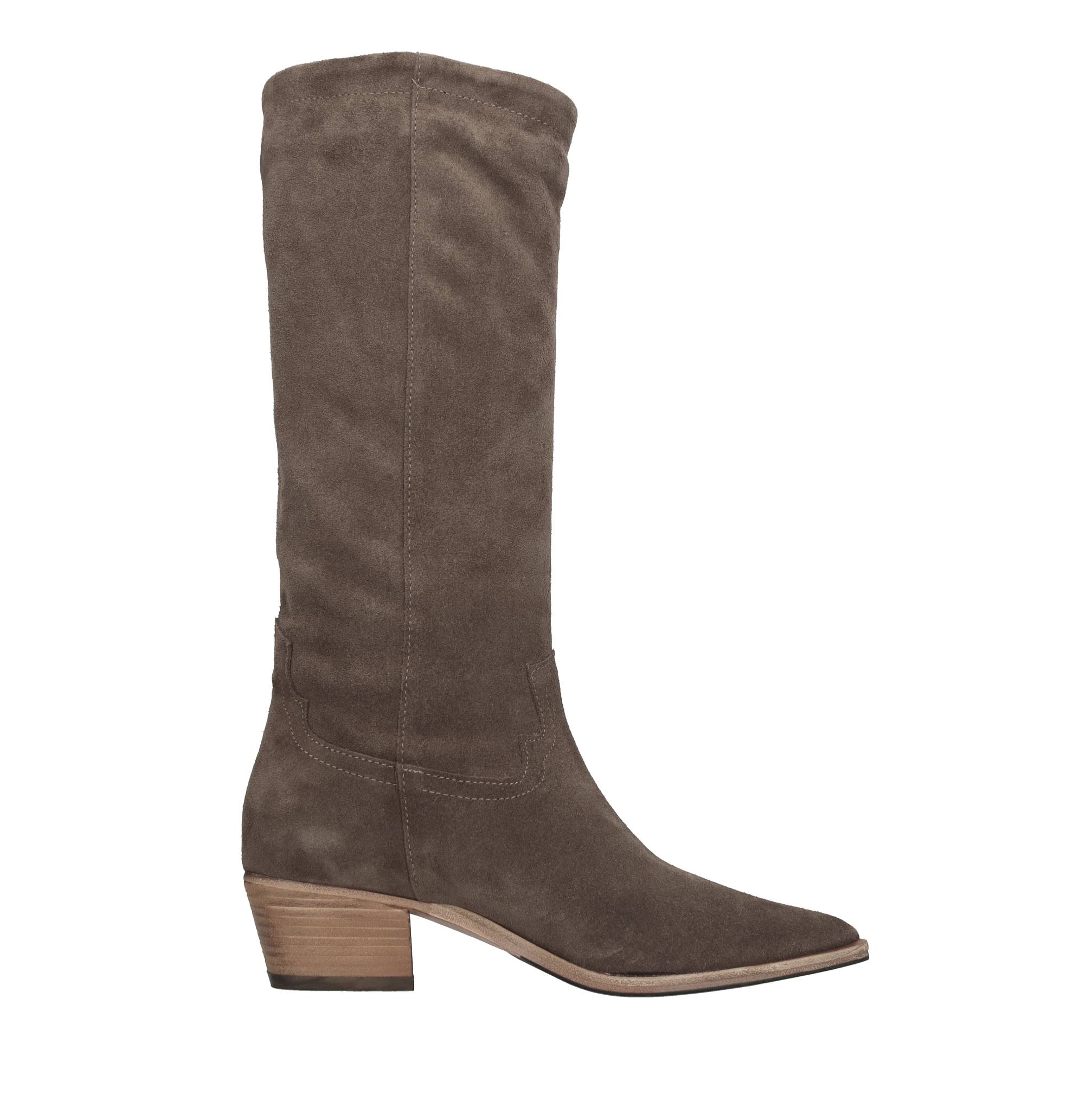 Suede Texan boots. Leather inner upper. Rubber and leather outer sole.