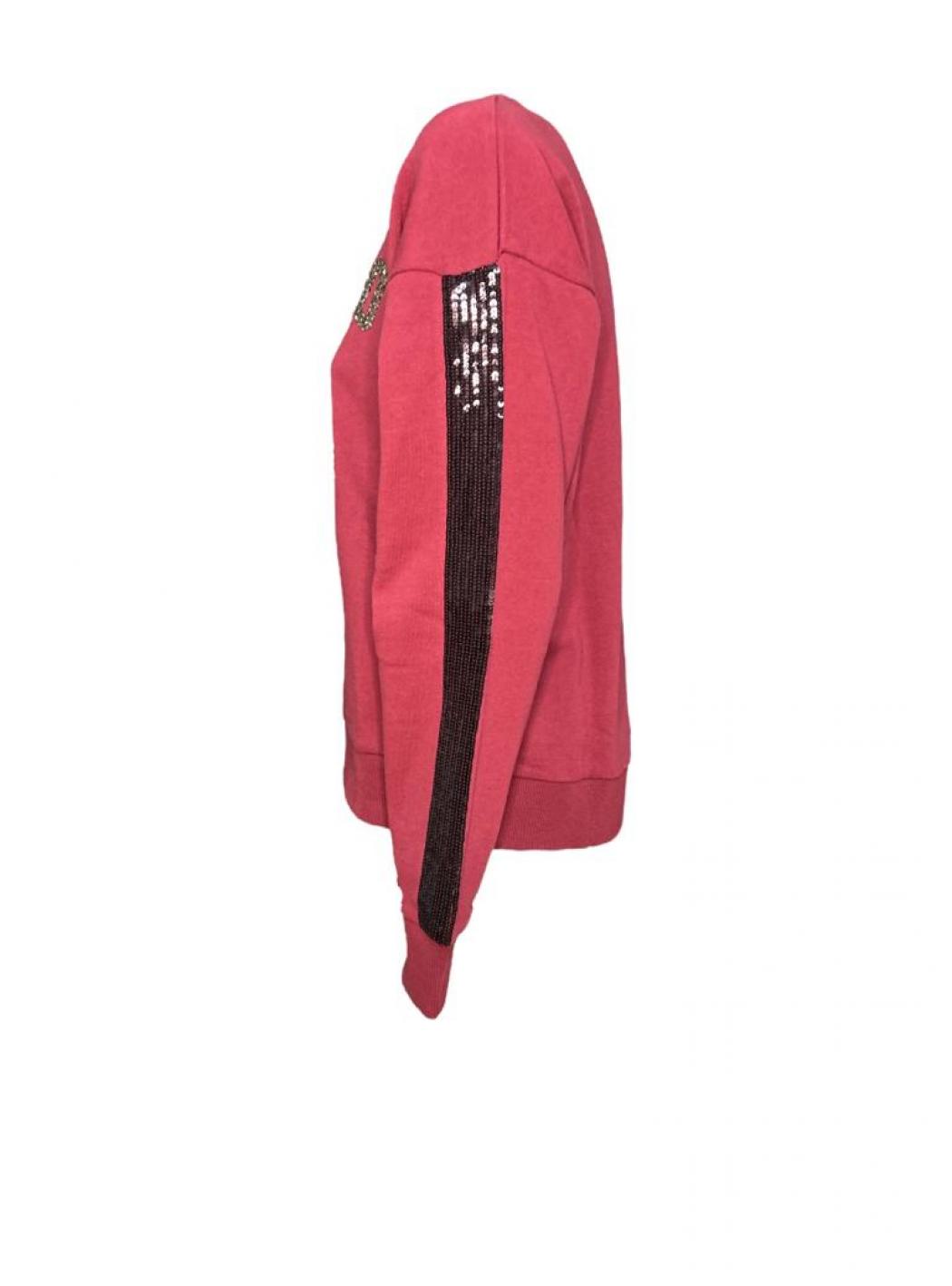 gauze cotton over sweatshirt, long sleeve square pattern, knitted cuffs and cannolè, and big front logo in print with sequins and contrasting stras