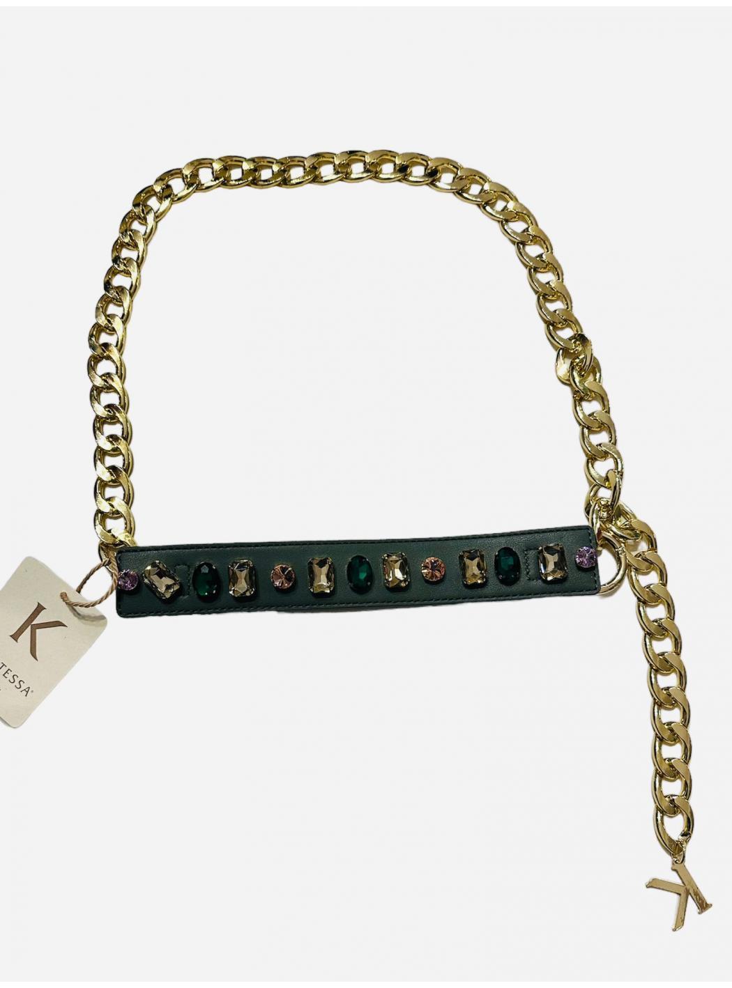 necklace bracelet in eco-leather and gold chain with resin colored stones