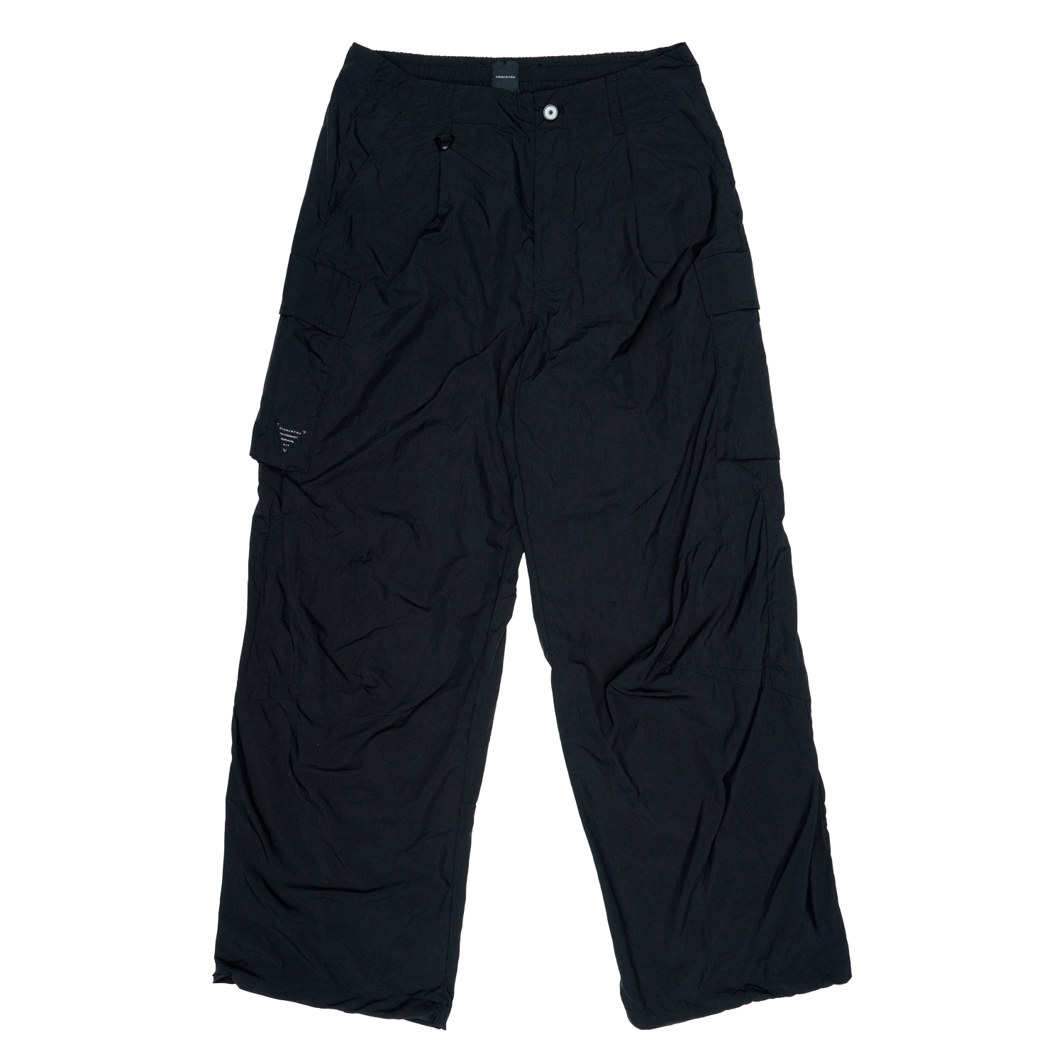 Vanth wide cargo pants for hot summer days. Made of lightweight and fast drying nylon fabric with a slightly rubbed texture.
