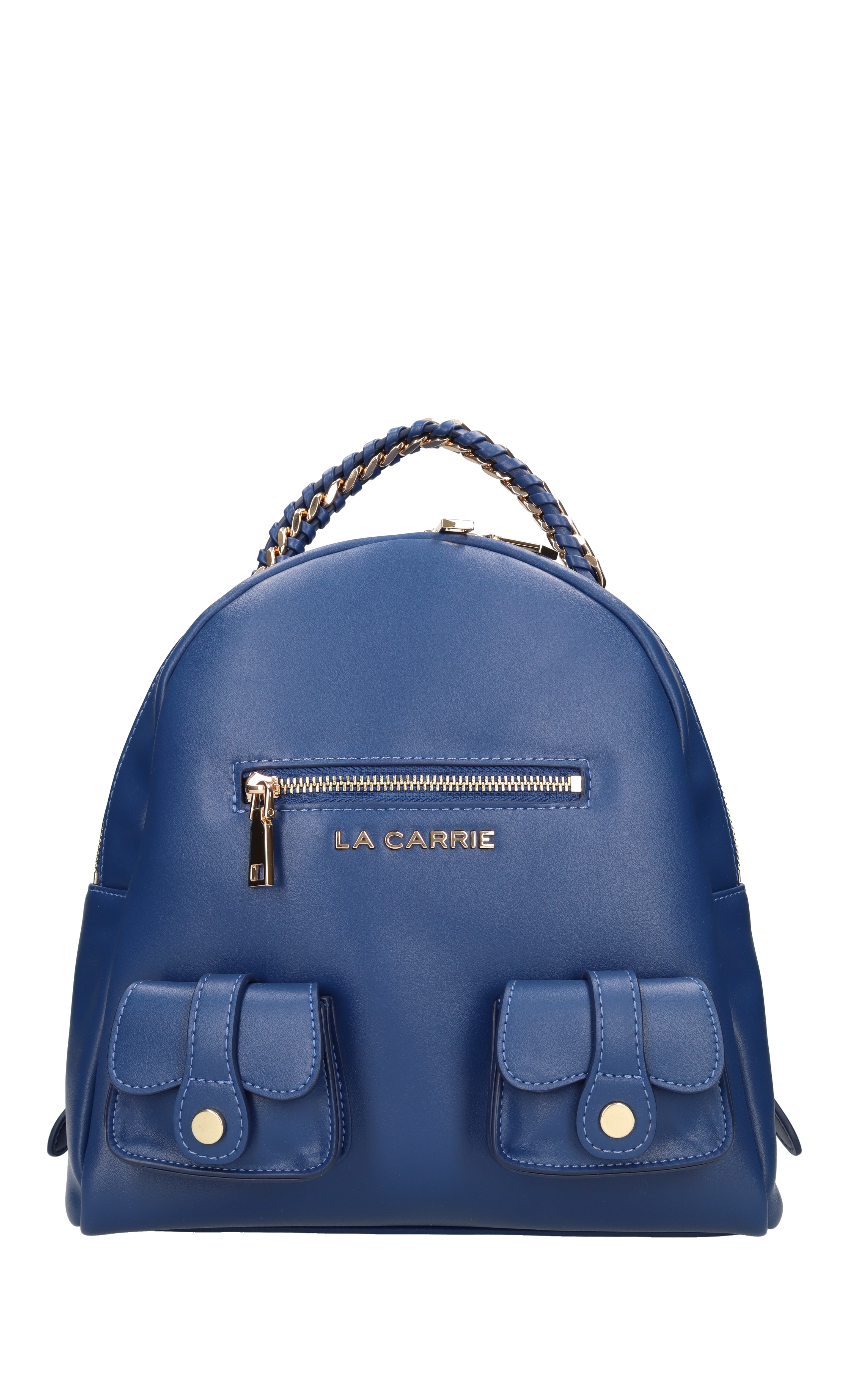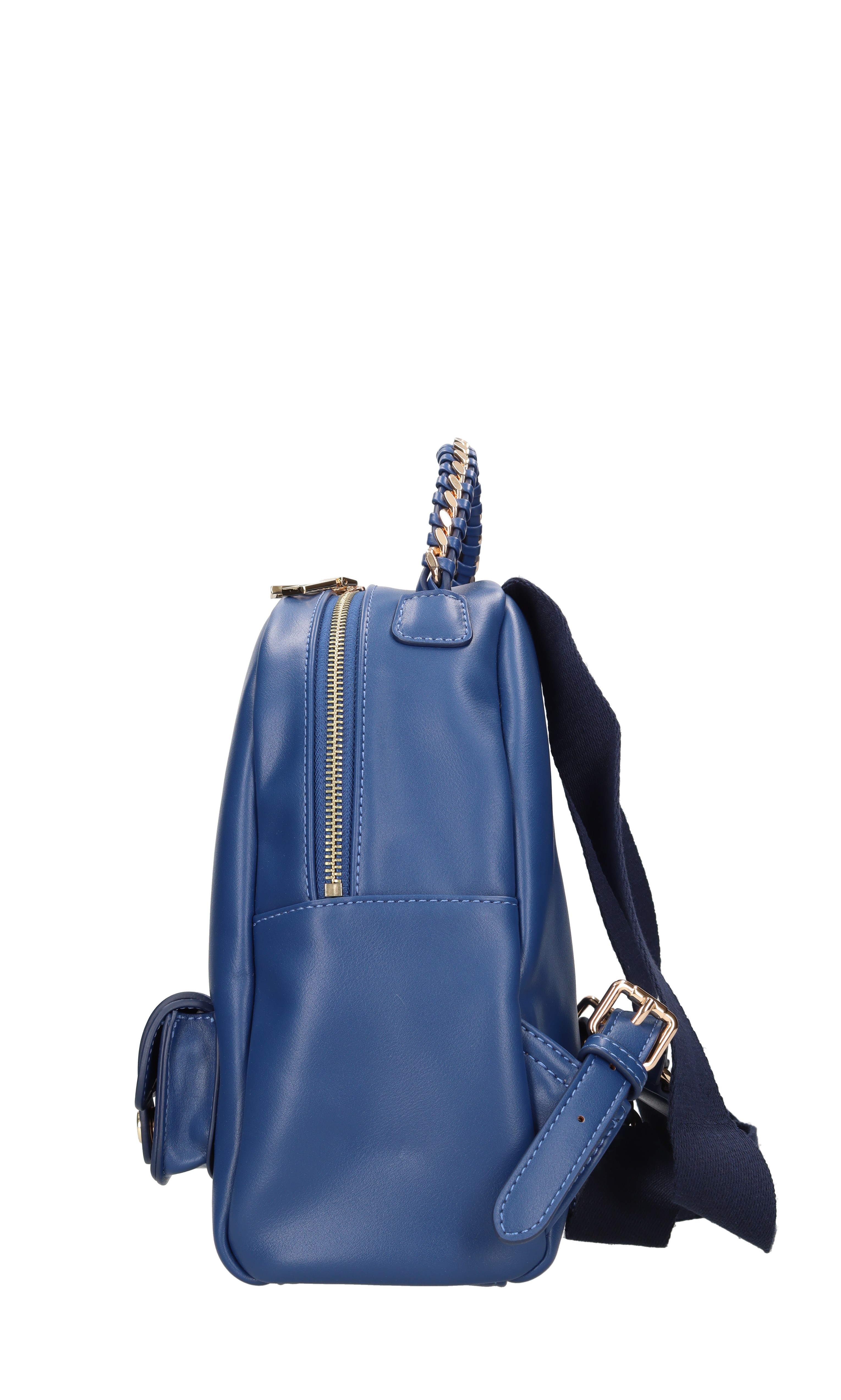 Faux leather backpack. 1 main compartment with internal pockets for objects and external pockets for objects, one of which with zip closure and two with magnetic buttons. Fabric and adjustable shoulder straps.