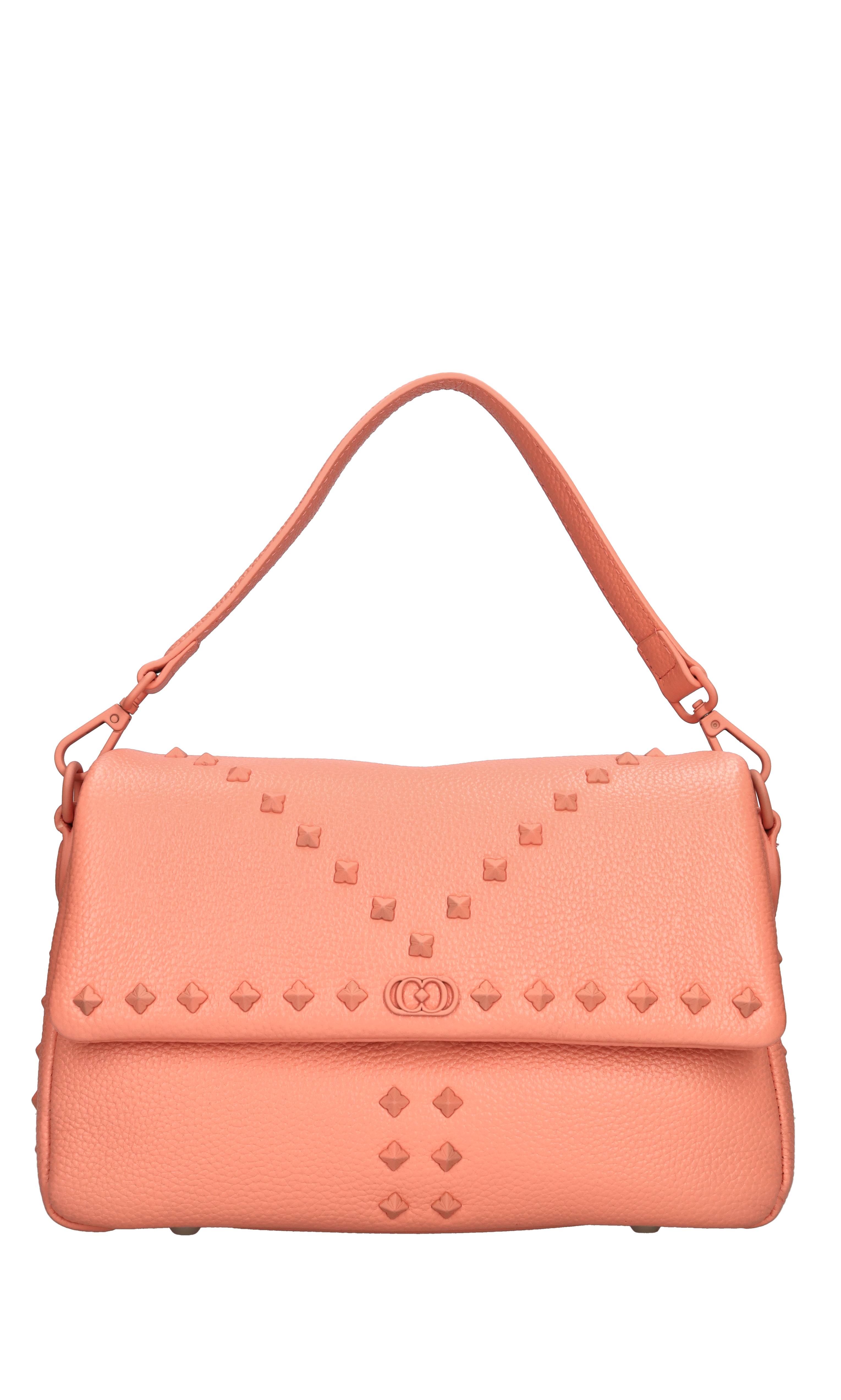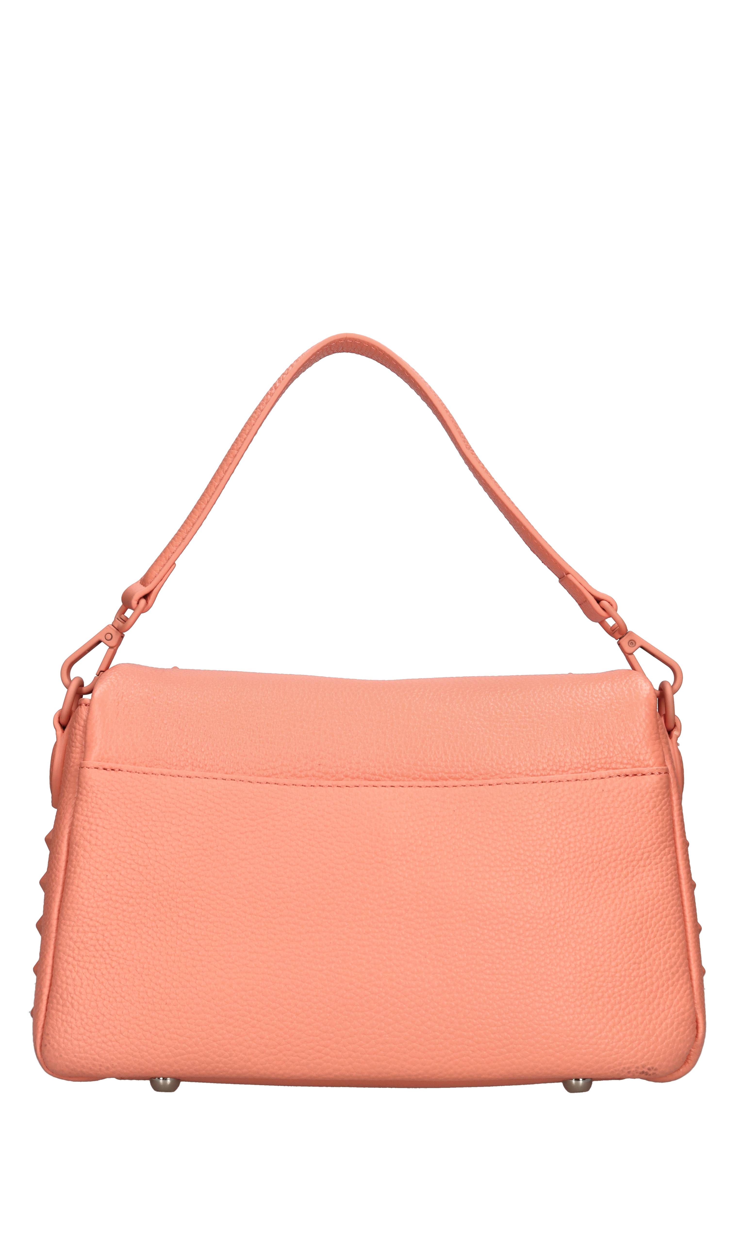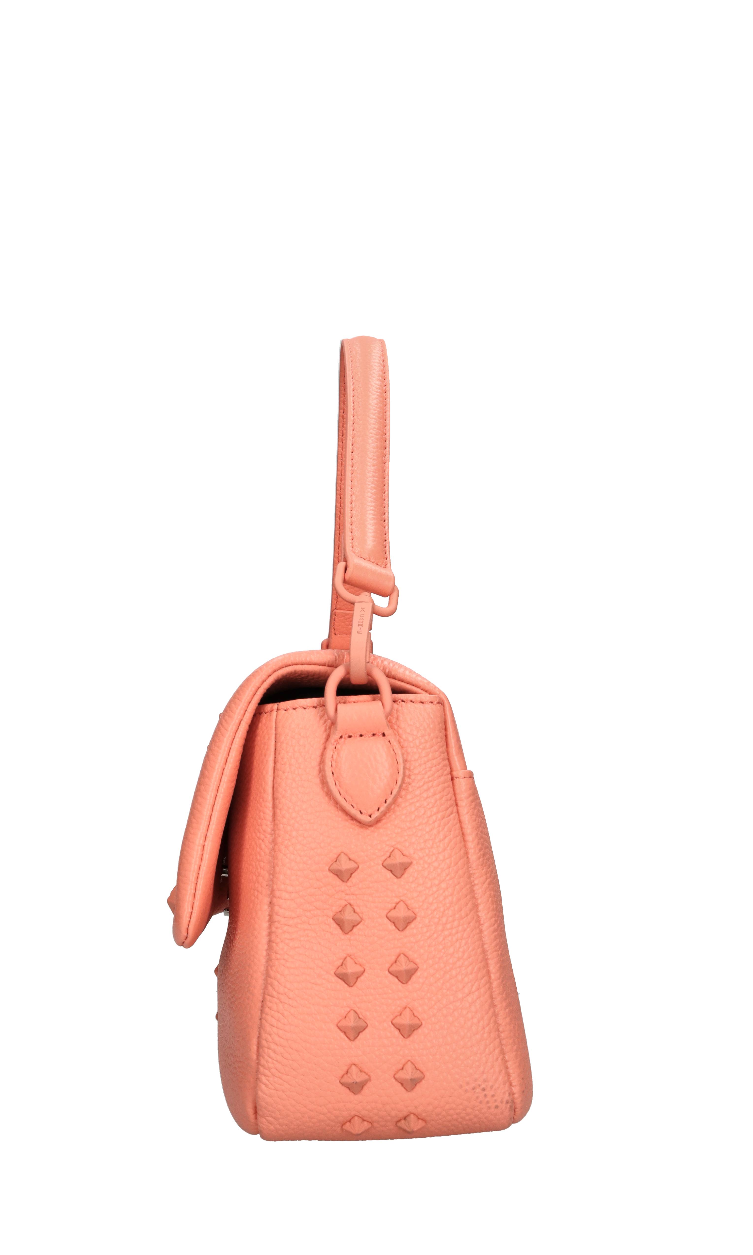 Frivolous bag in leather and studs. One compartment. Tone-on-tone metal details. Closure with snap button. Removable tone-on-tone chain shoulder strap in leather.