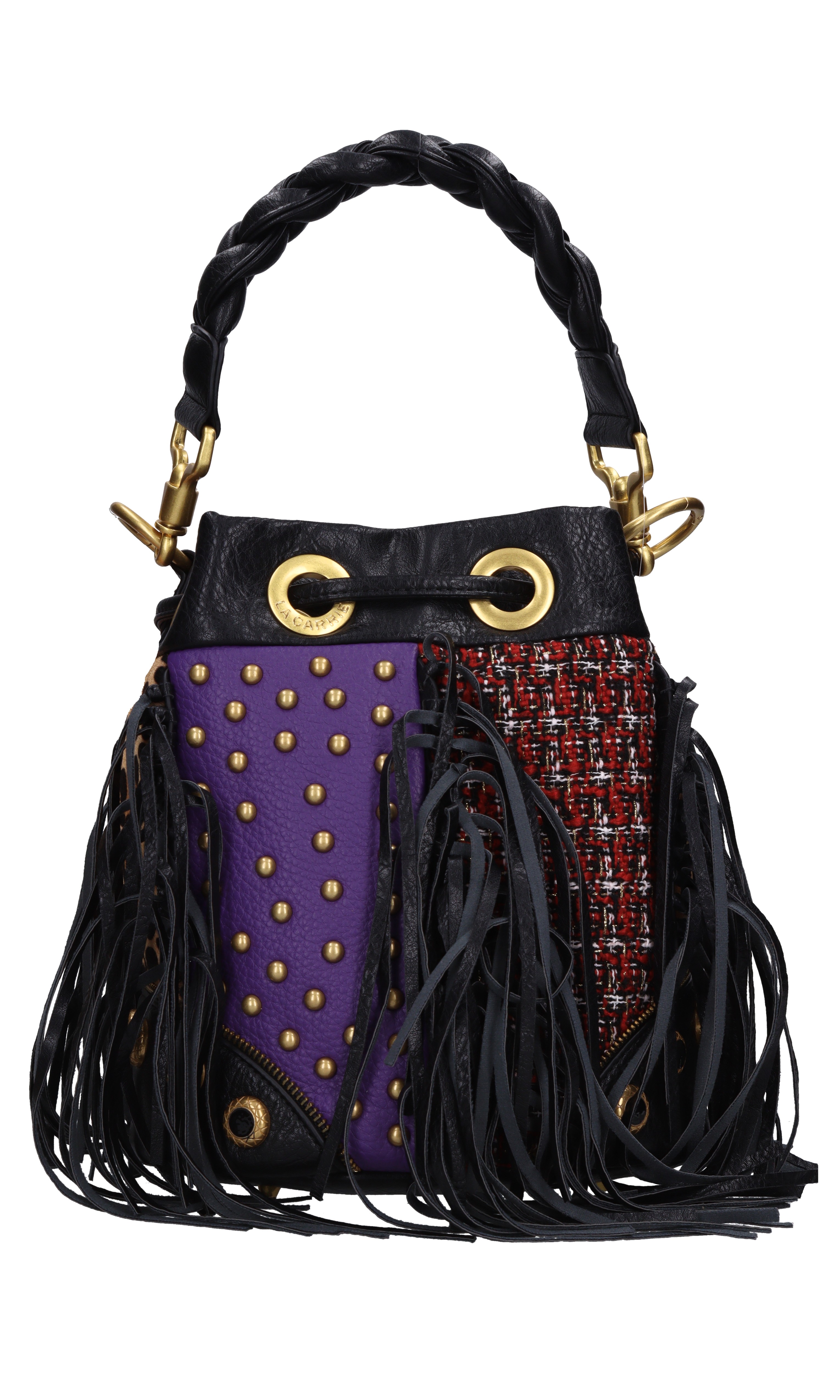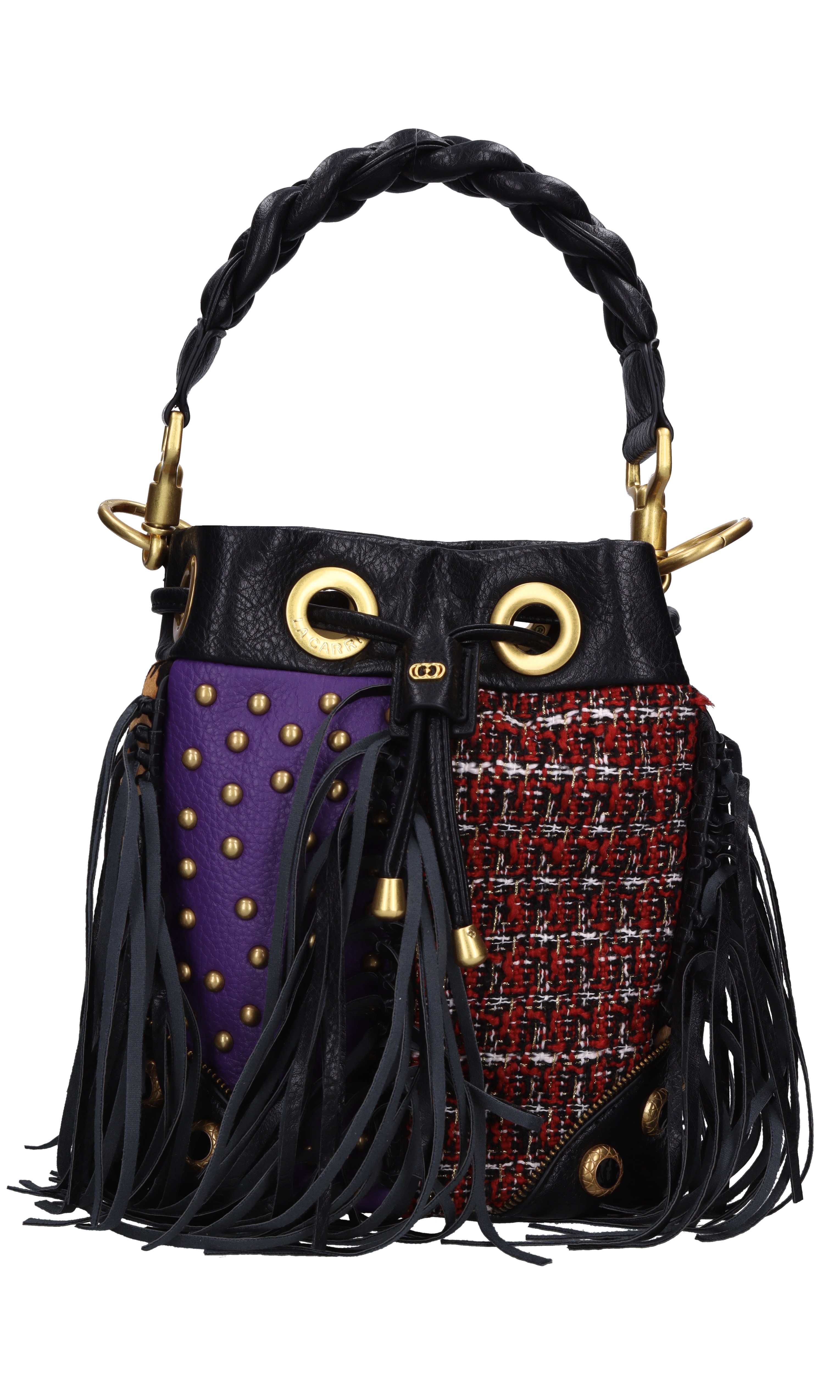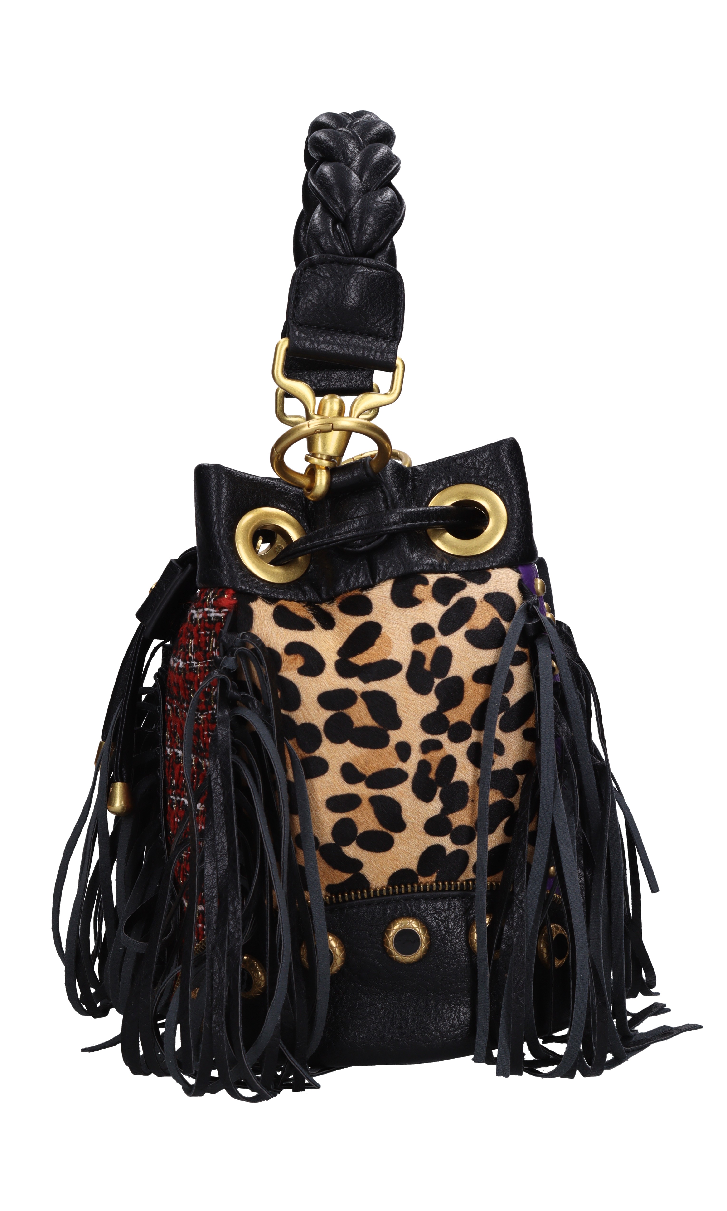 ANN.MAGDA faux leather bag. 1 compartment. Drawstring closure. Removable golden chain and faux leather shoulder strap.