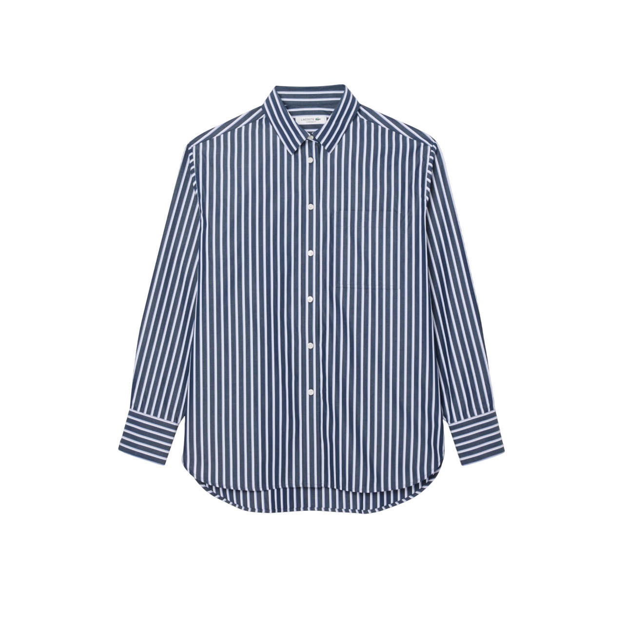 This long-sleeved shirt is a great example of Lacoste elegance and iconic design. Made of cotton poplin with a comfortable and soft cut with the characteristic stripes. The ultimate in casual chic, timeless. Oversized fit. Choose 1 size smaller than your usual size for a more fitted style. Cotton poplin Oversized cut, generous with dropped shoulders Pocket applied to the chest Organza logo label on the side seam Crocodile embossed on the pocket