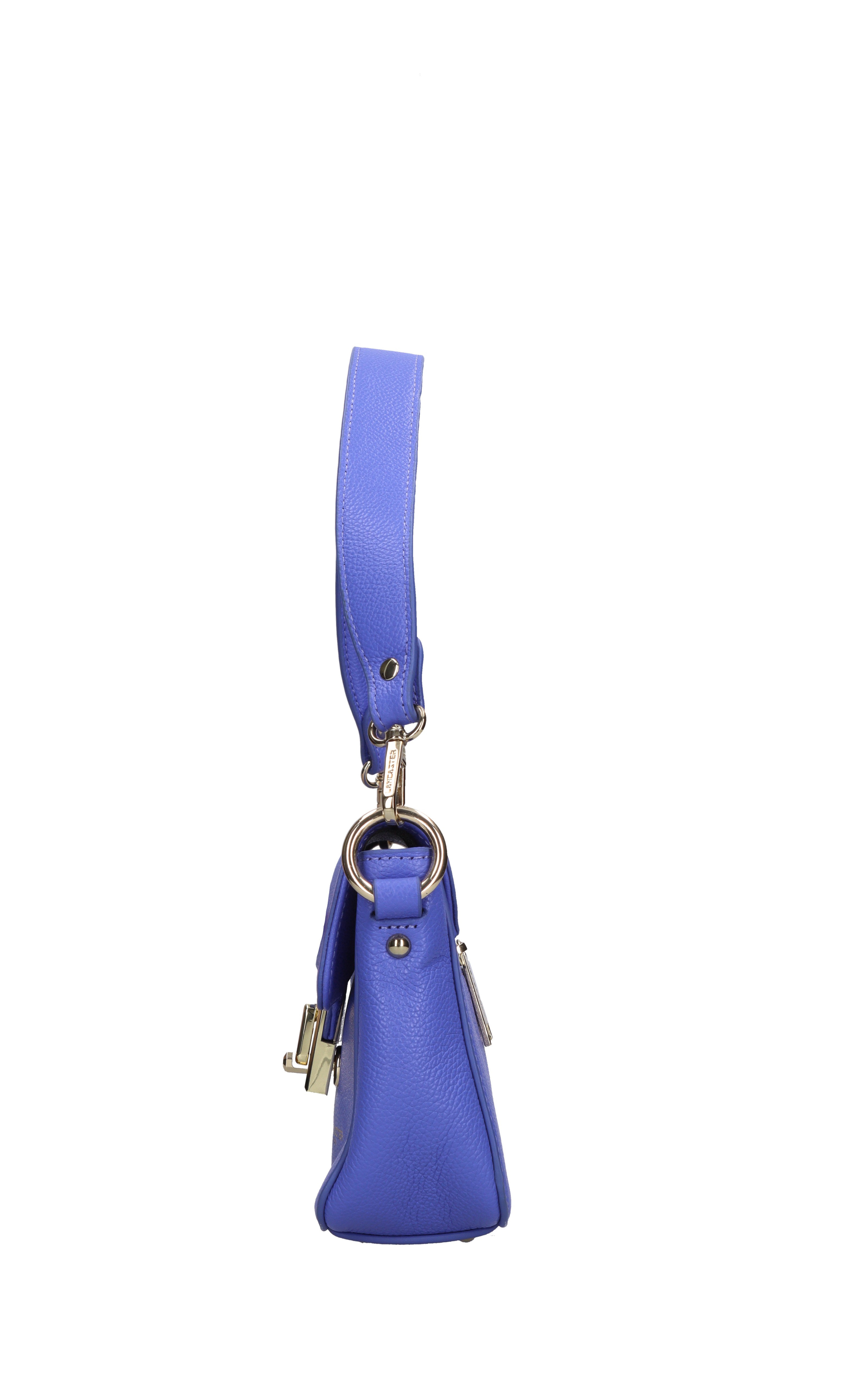 Leather bag. Hammered finish. 1 compartment. 1 external rear pocket. Flap closure with twist lock. Adjustable and removable shoulder strap. Removable handle.