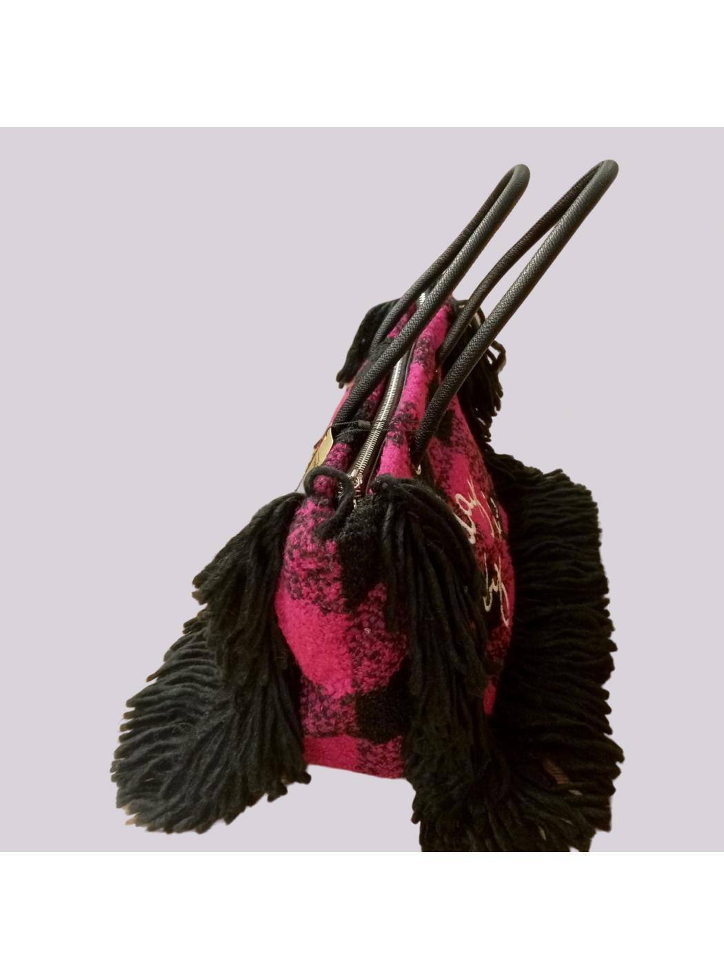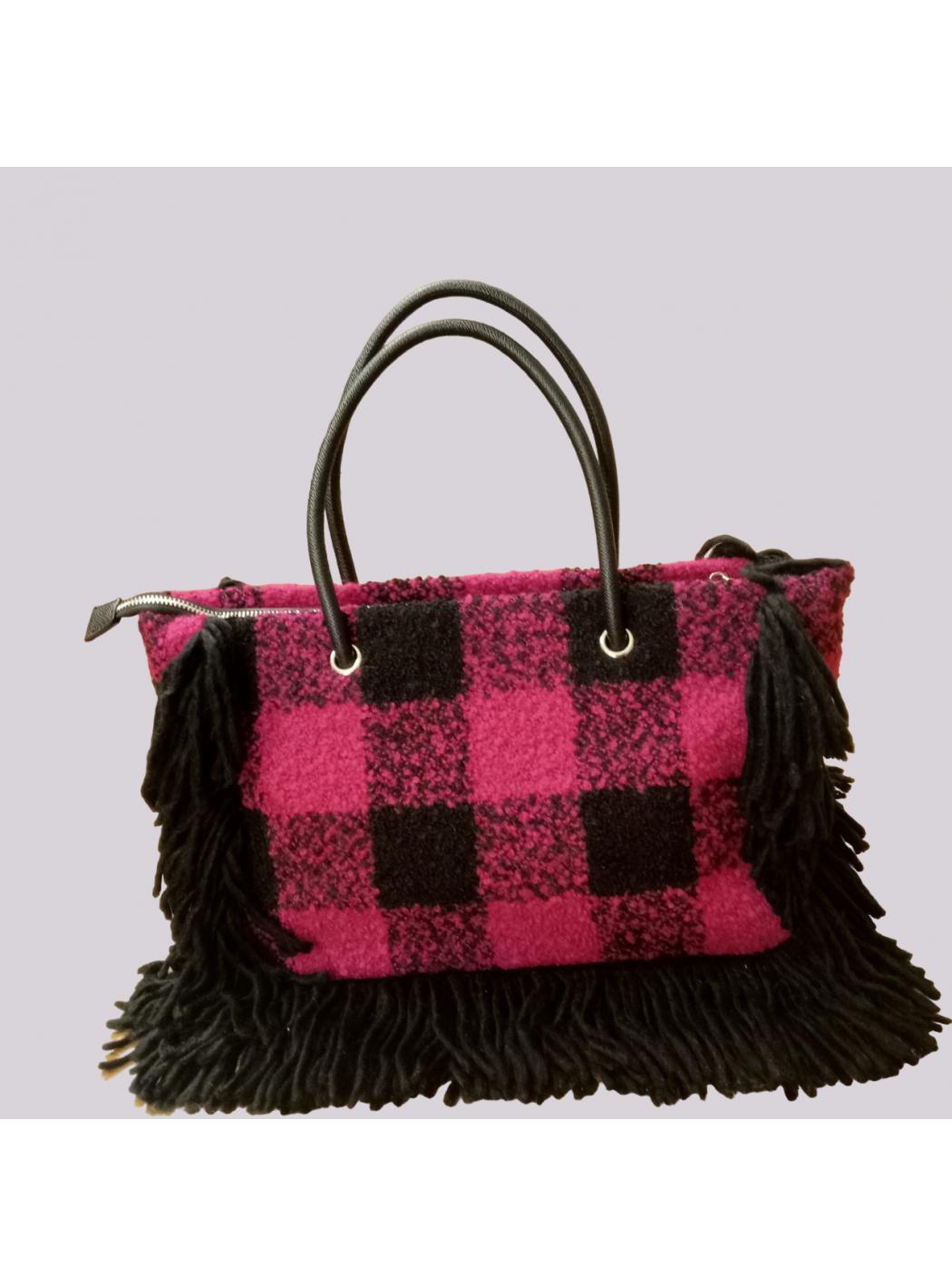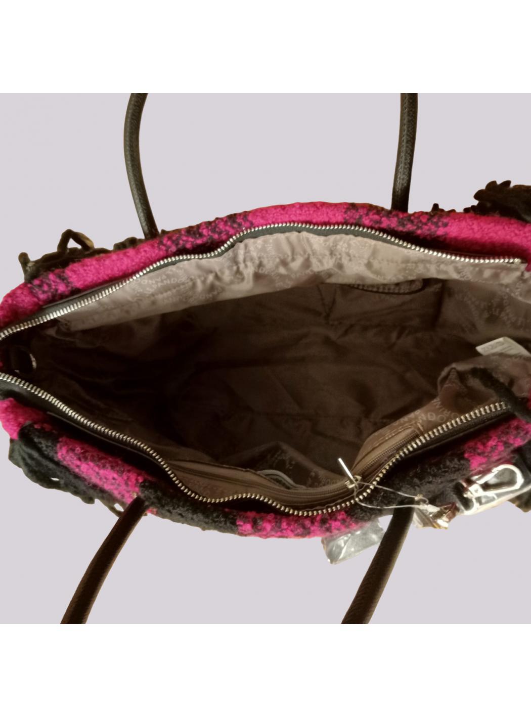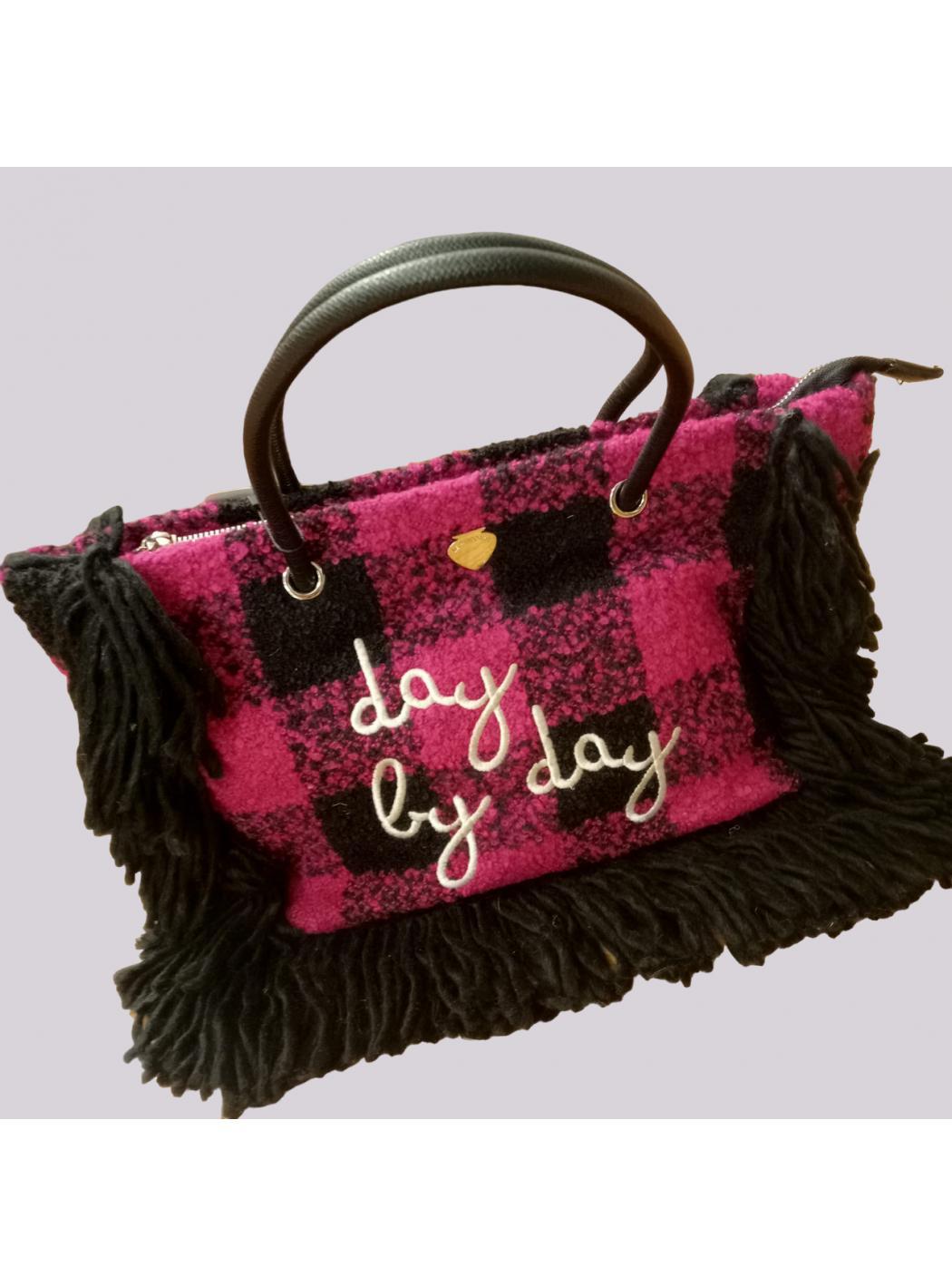 Shopper wool effect with zip closure. Inside it is lined and has two internal pockets of which one with zip. It has two wide handles and a removable and adjustable shoulder color: fuxia text: day by day material: wool effect fabric + polyurethane length:44cm depth:17cm height:23.5cm
