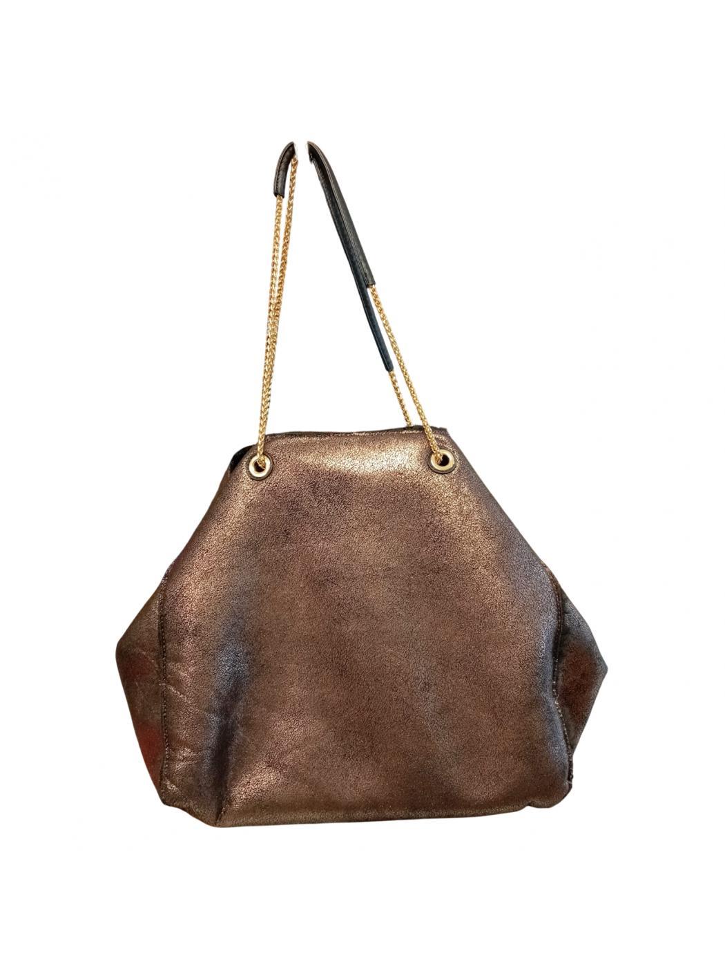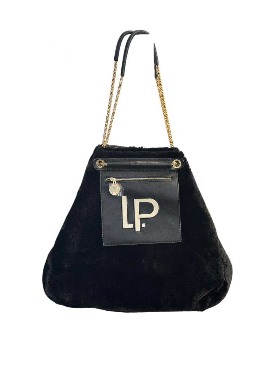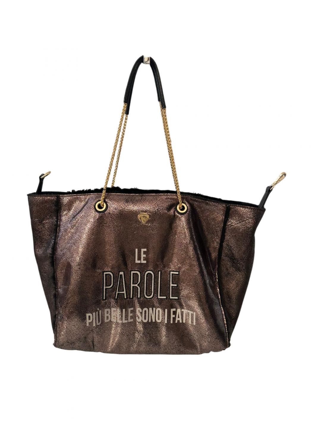 Shoulder bag Pandorine over size reversible with removable clutch. Bronze eco-leather and black synthetic fur.