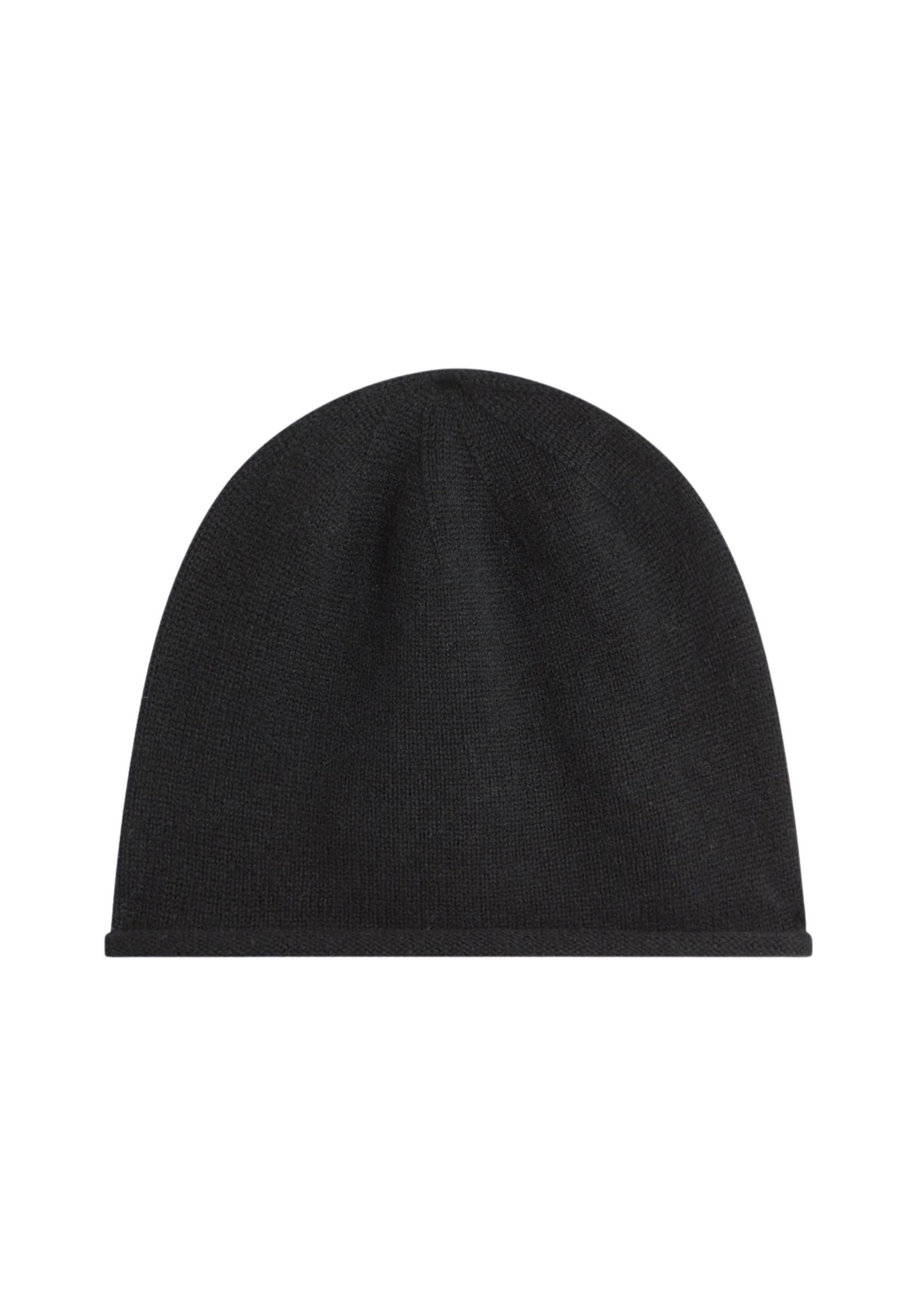 Joy cap in recycled cashmere, with non-stitched bottom and natural rolling.
