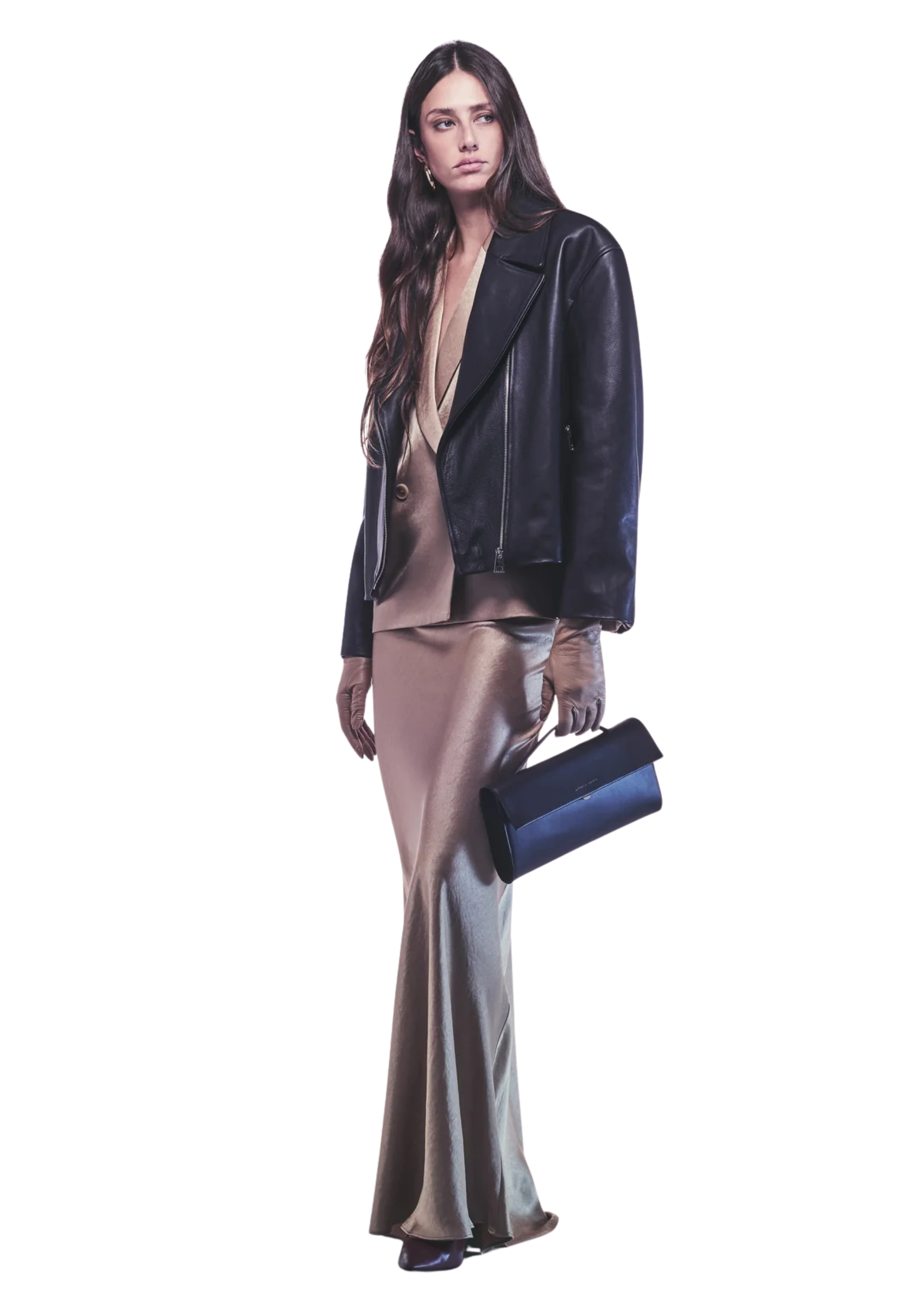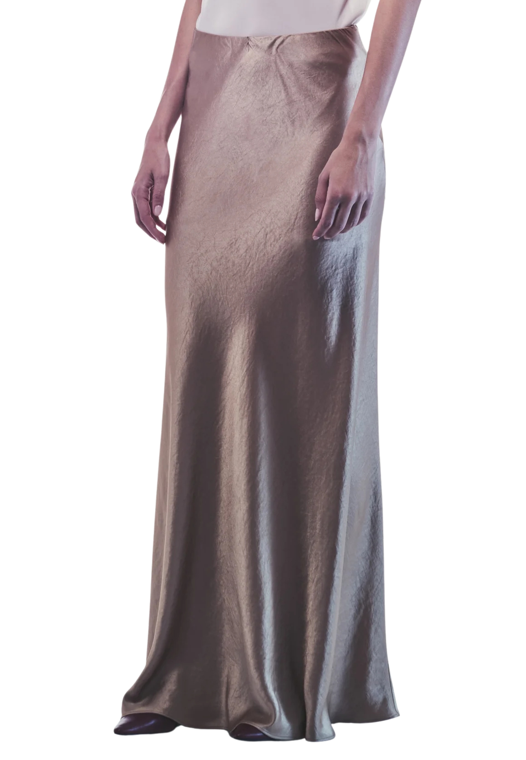 long satin skirt, with straight line and invisible zip closure on the back. essential silhouette And fluid.