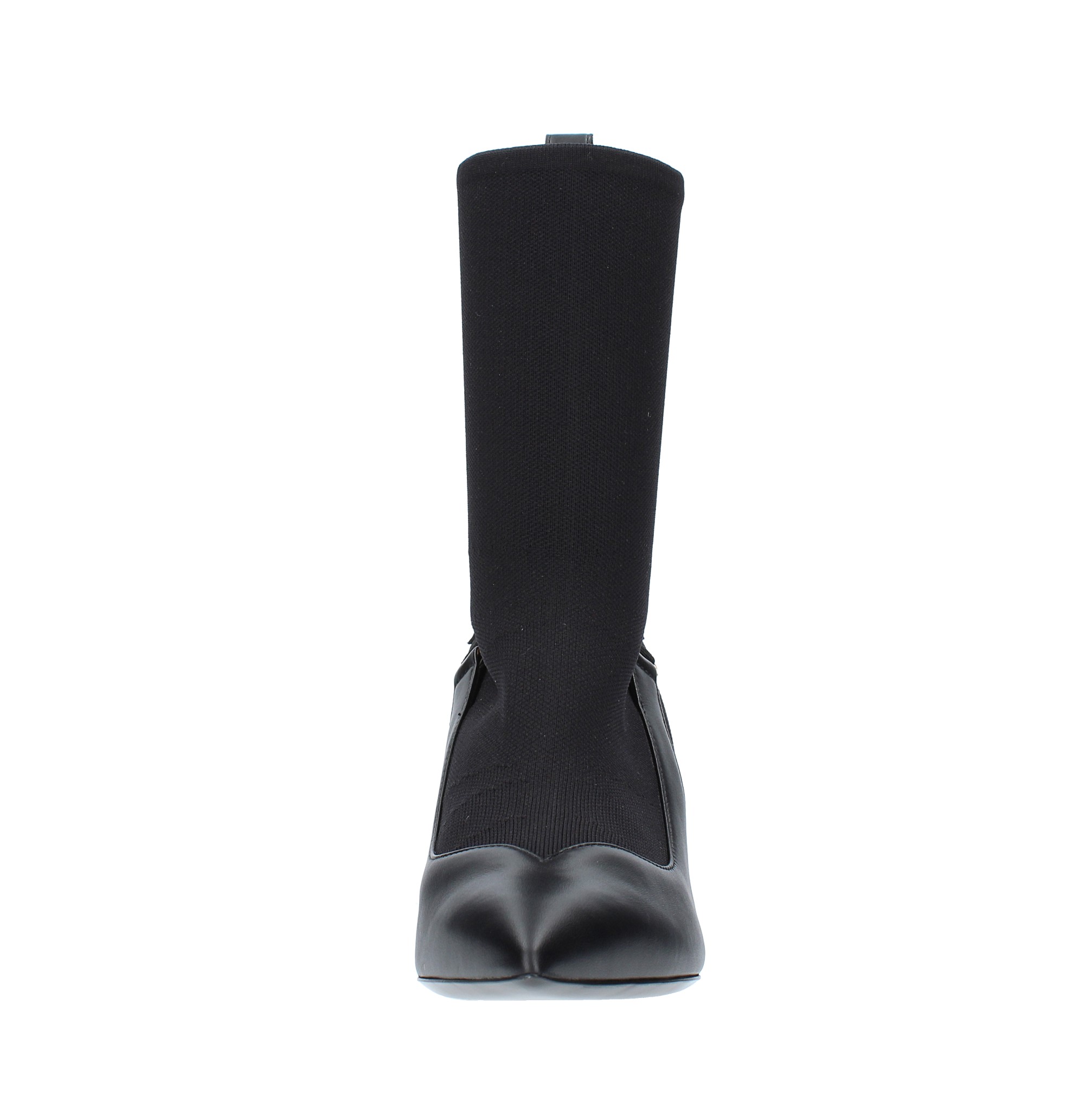 Fabric and leather ankle boots. Leather outer sole. Fabric and leather inner upper.