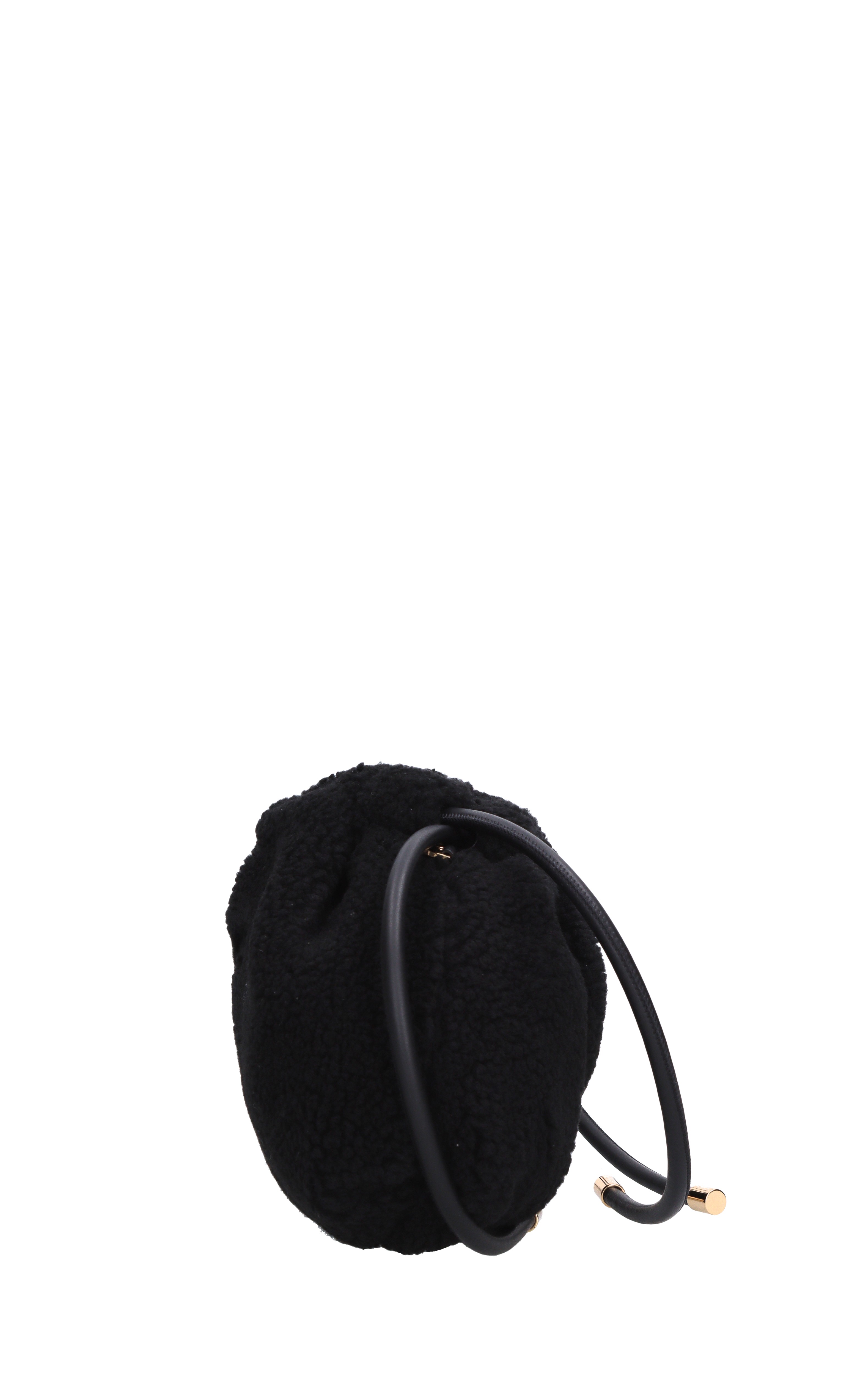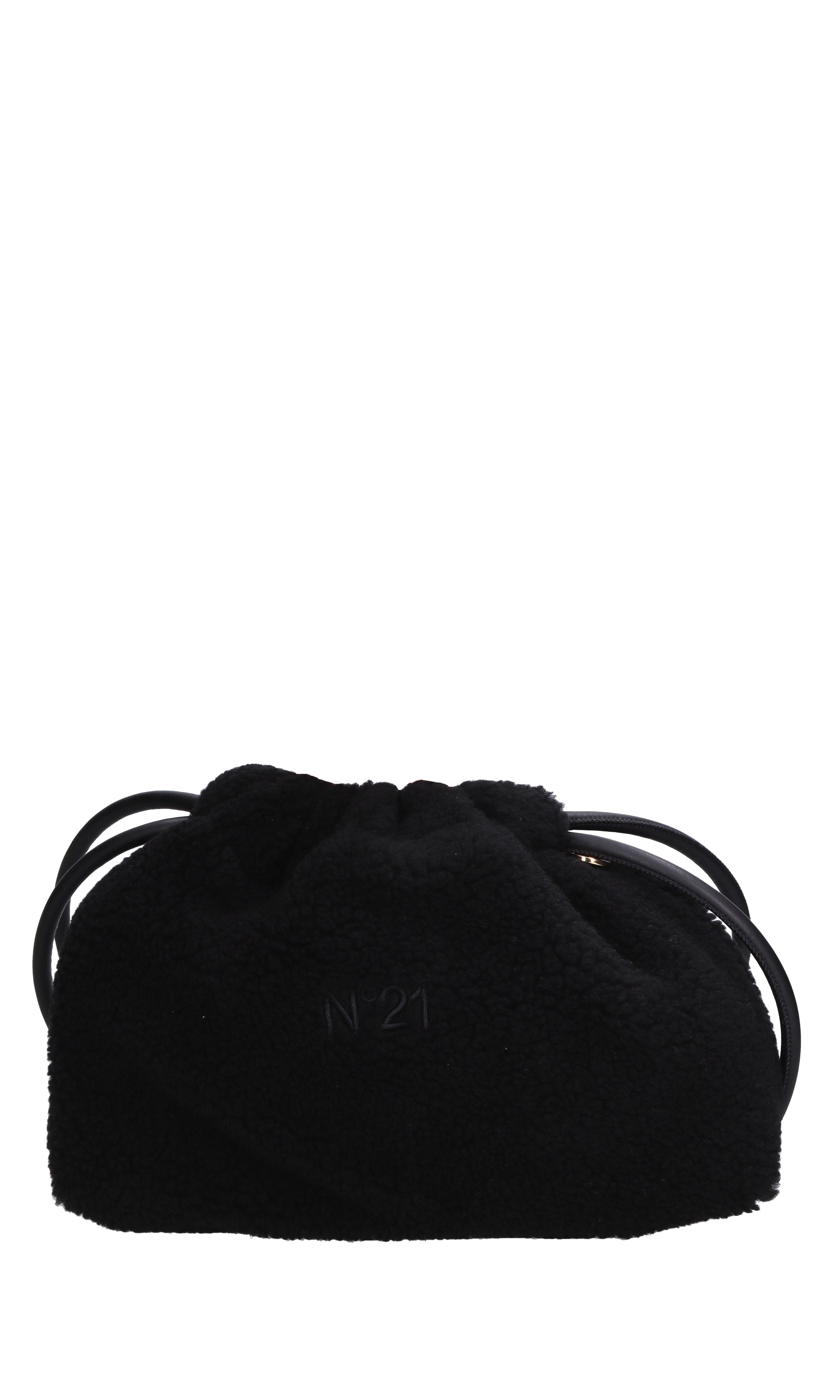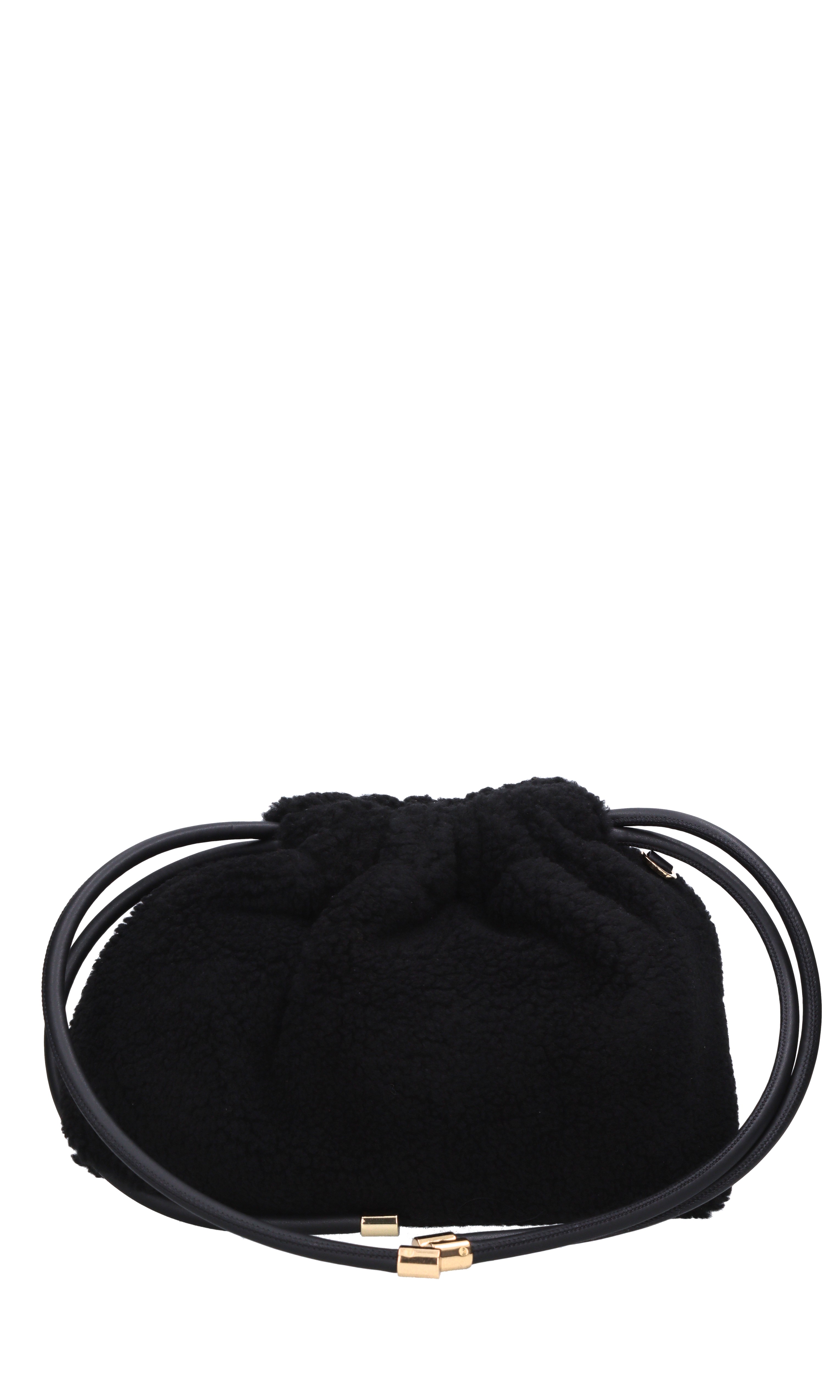 Eva fabric bag. Drawstring closure. Internal pouch. Adjustable and removable leather shoulder strap.