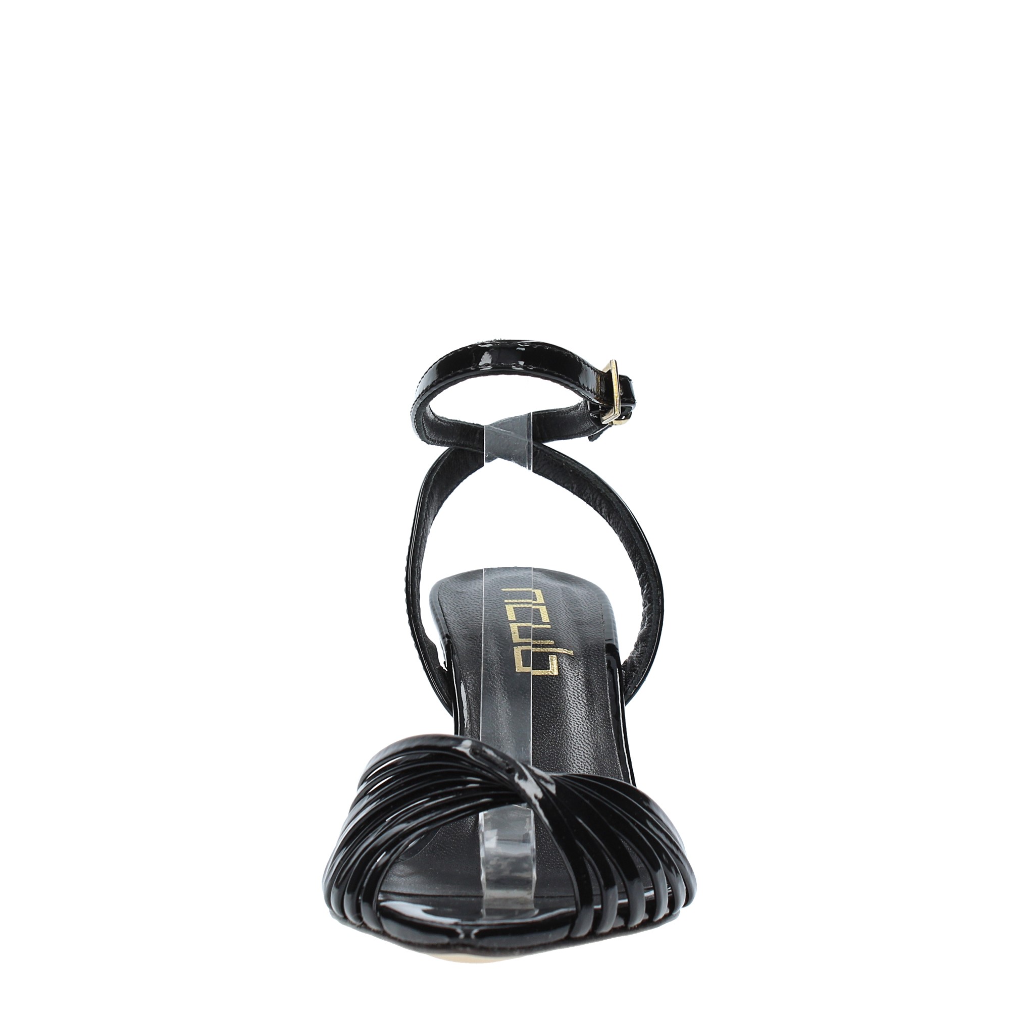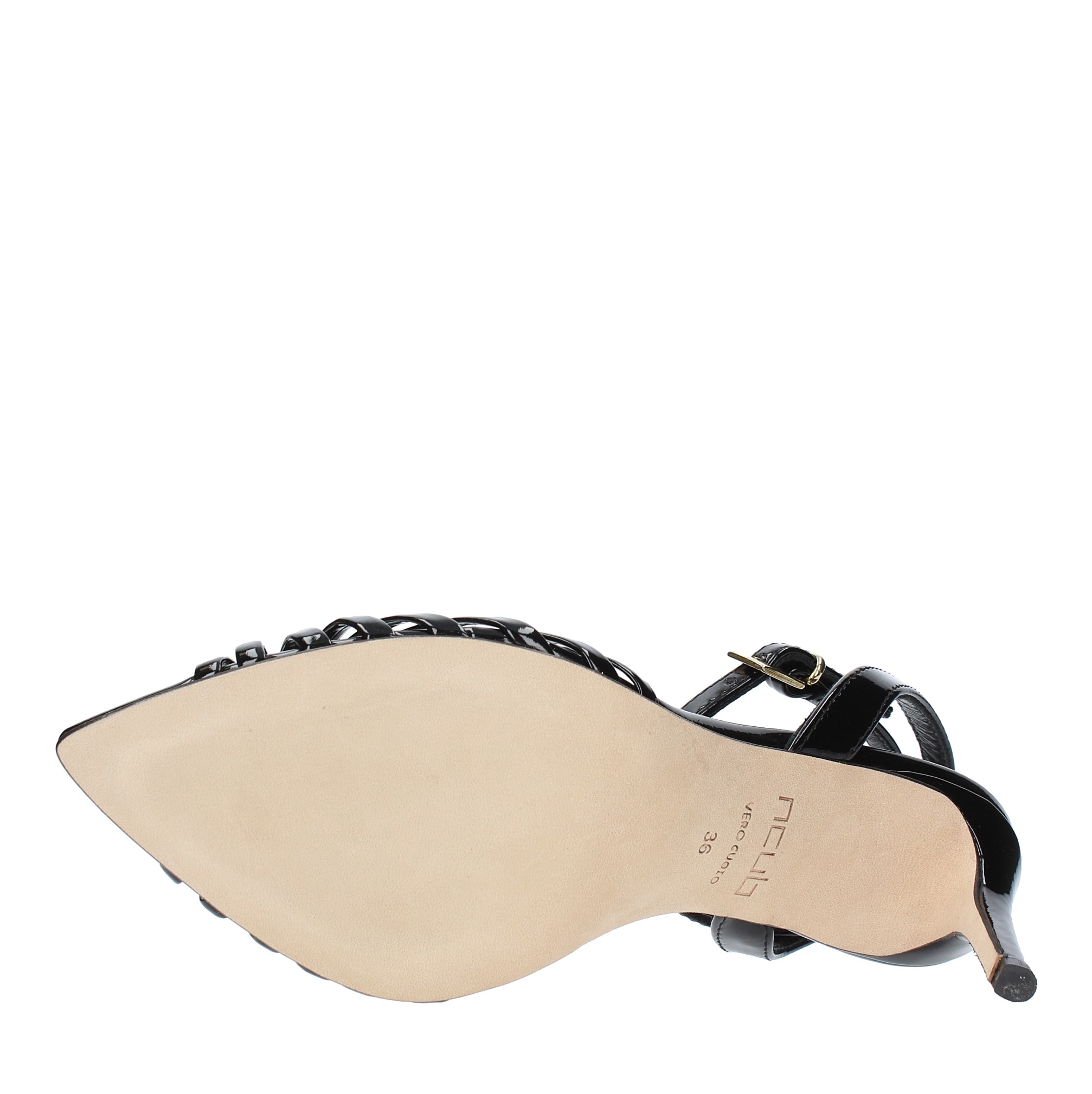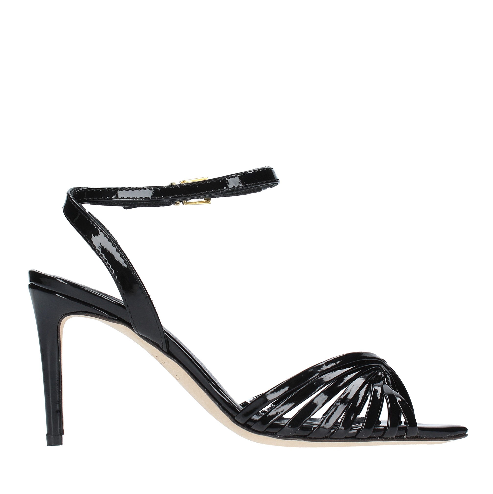 Patent leather sandals. Leather outer sole. Internal leather upper.