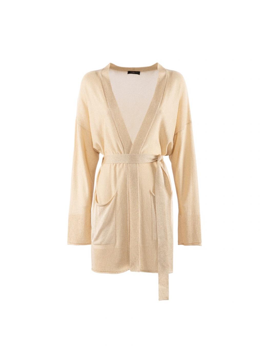 Cardigan knitted lurex fine, characterized by a minimal design and a soft and enveloping texture. The relaxed fit makes it perfect to complete sophisticated or casual-chic look, ideal to ensure comfort and style on any occasion. Fitted with smooth trousers or light dresses for a refined and timeless outfit.-88% ACETATO-6% POLIESTERE-6% polyamide