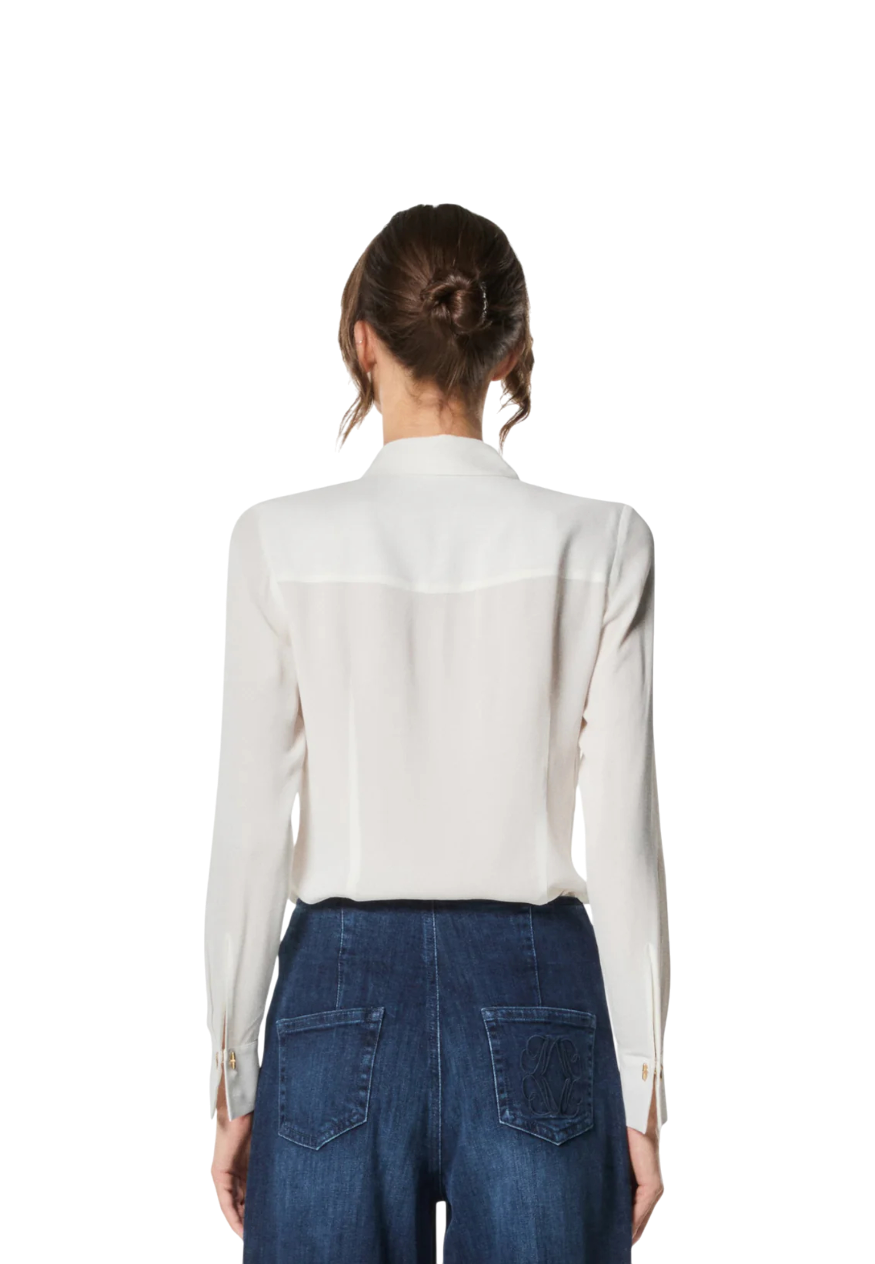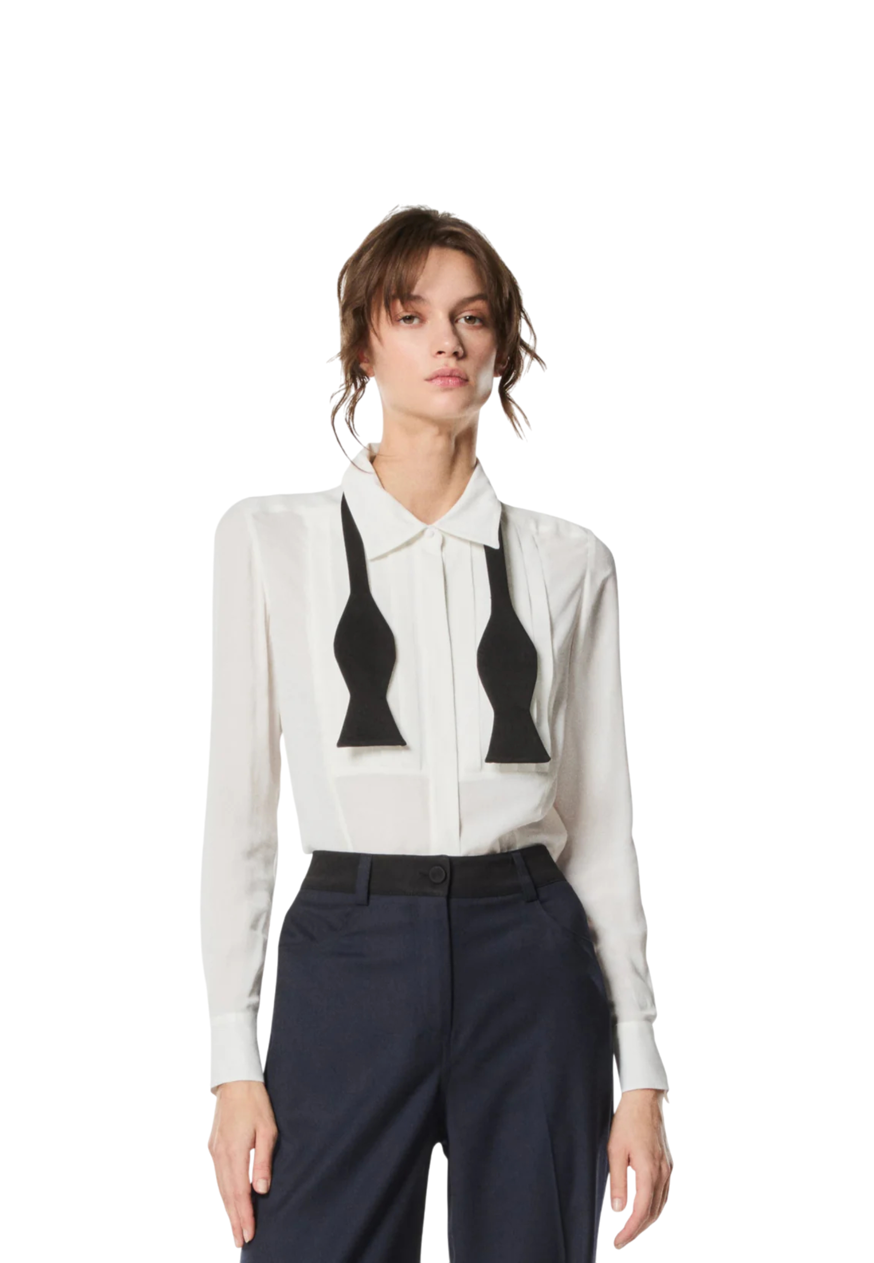 Shirt with plastron and bow tie in viscose, light and fluid. Sartorial detail with cuff closure through custom cuffs nn. An elegant and refined garment, ideal for formal looks with a distinctive and feminine touch.