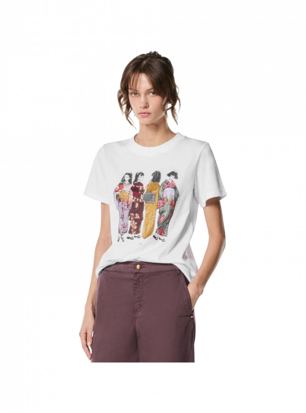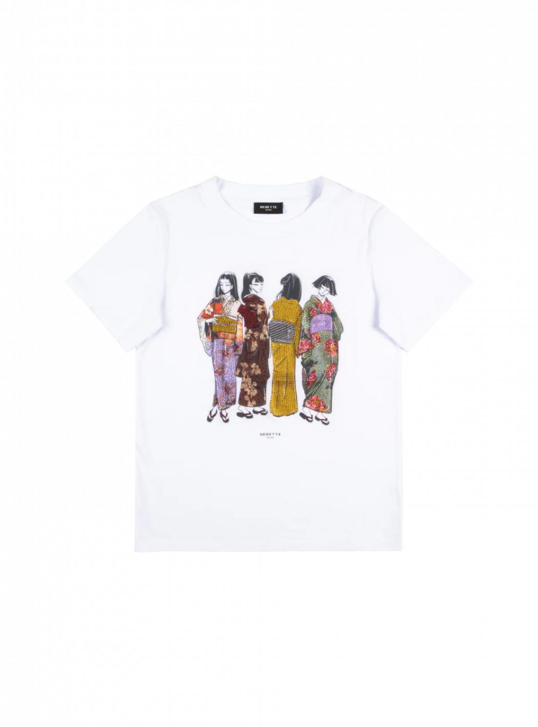 Short sleeve t-shirt in cotton, soft and breathable. The pattern with drawn geishes adds an artistic and oriental touch to the head. Perfect for casual look with unique character, it combines comfort and style with a refined and distinctive print.