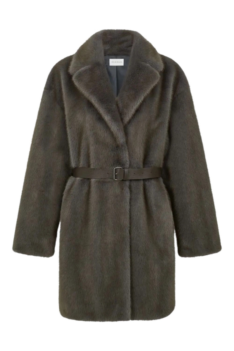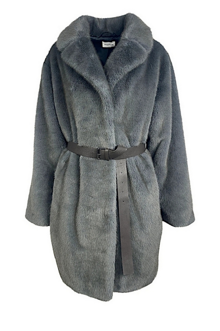 P.A.R.O.S.H. faux fur coat. Composition: 100% polyester. Belted style. Coat with pockets. Length: 90 cm