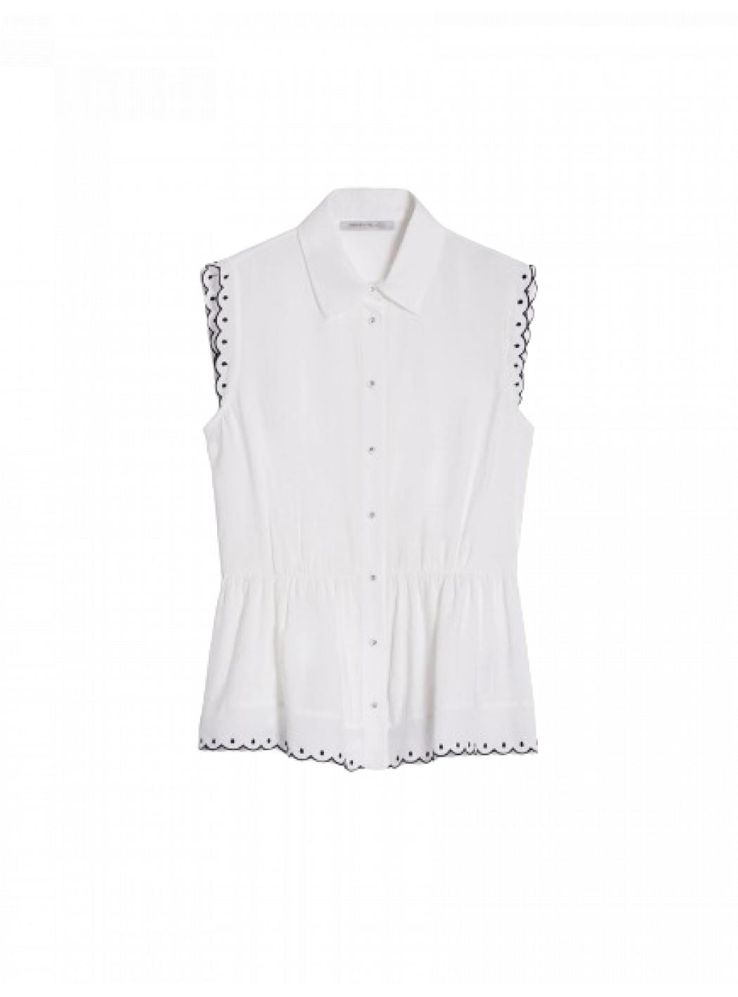 Top in fluid modal with striped edges and contrasting embroidered. Collated and buttoned, touches the silhouette and outlines the life with a delicate curling. Perfect in total white or combined with blue, for mix & summer match.