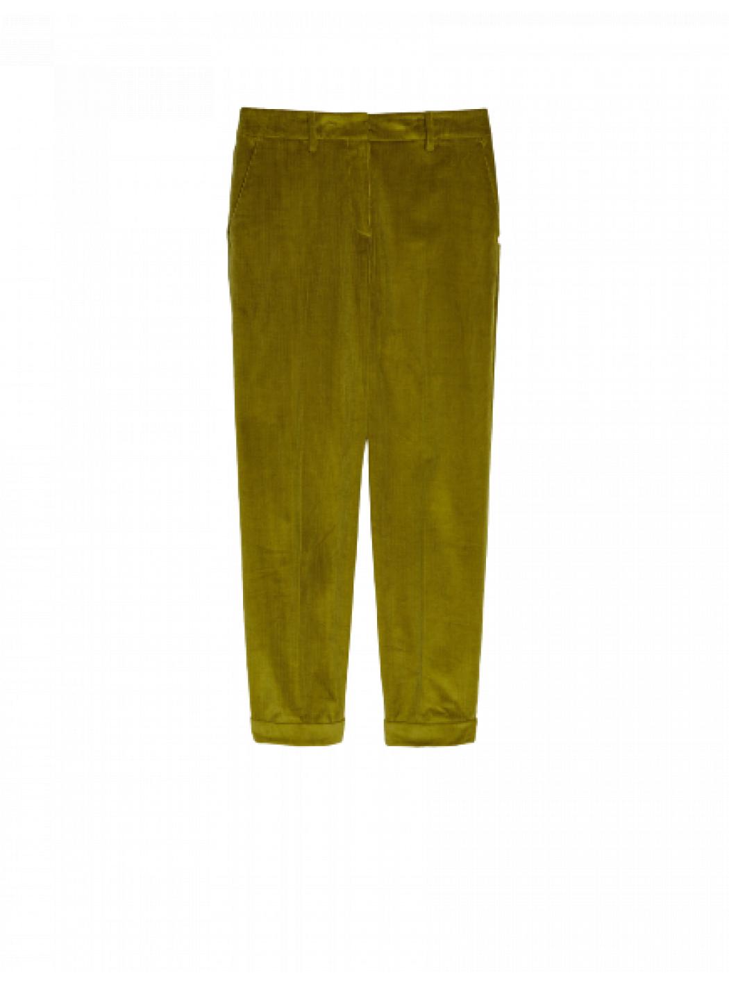 Trousers in stretch cotton ribbed velvet. They have a soft cut with tapered lines at the bottom and turned to the ankle. Stretched feet, regular waist and hidden zip closure. Perfect in combination with neutral tones.