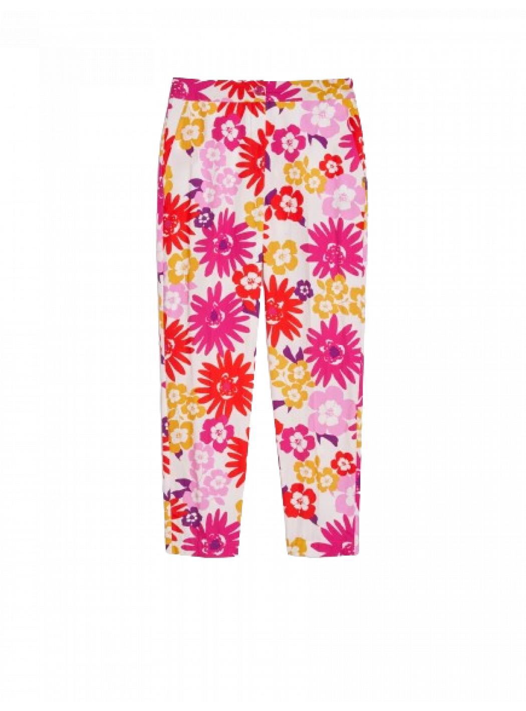 Trousers in cotton poplin. They have a slim cut with tapered lines and ankle length. French pockets, regular waist and hidden zip. Fresh and light, in solid color or flowers that smell in summer.