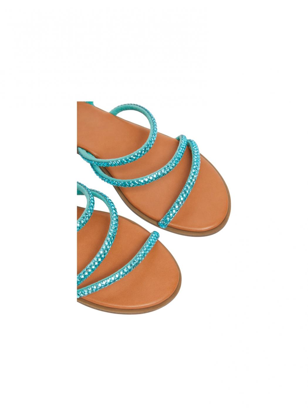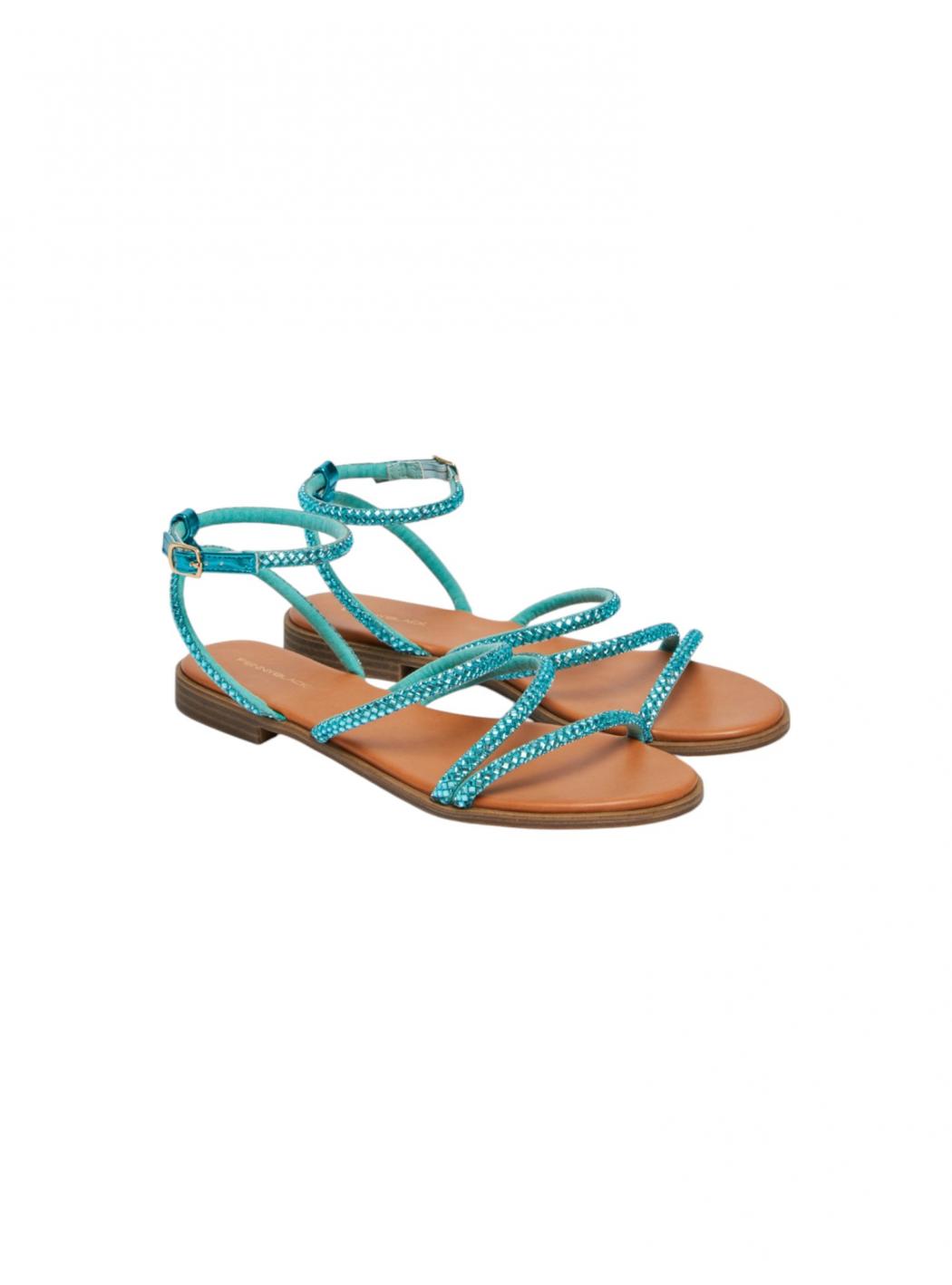 Glamour and comfort in a perfect mix: flat sandals with glittering rhinestones will be perfect both with party dress, as well as with jeans and T-shirts.