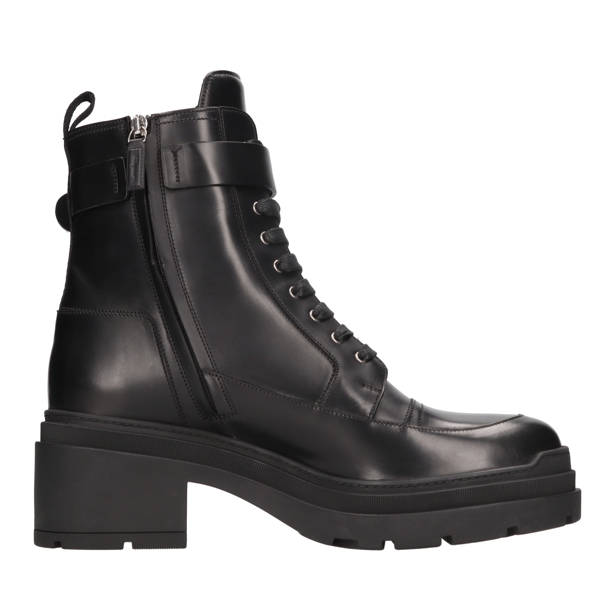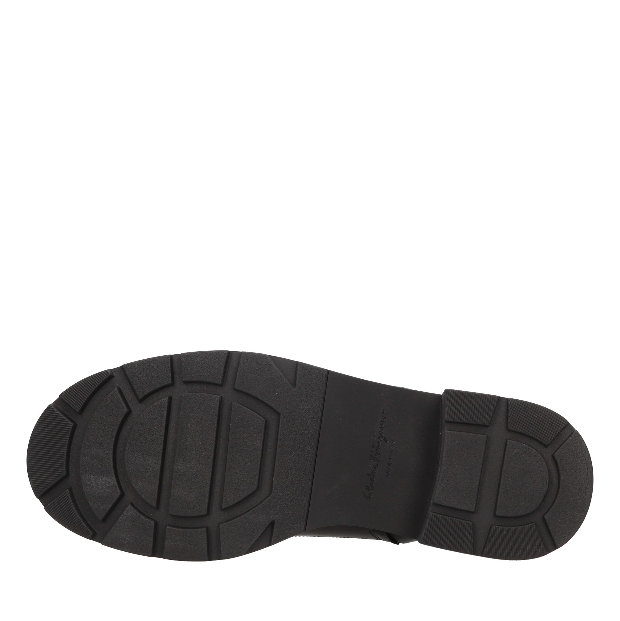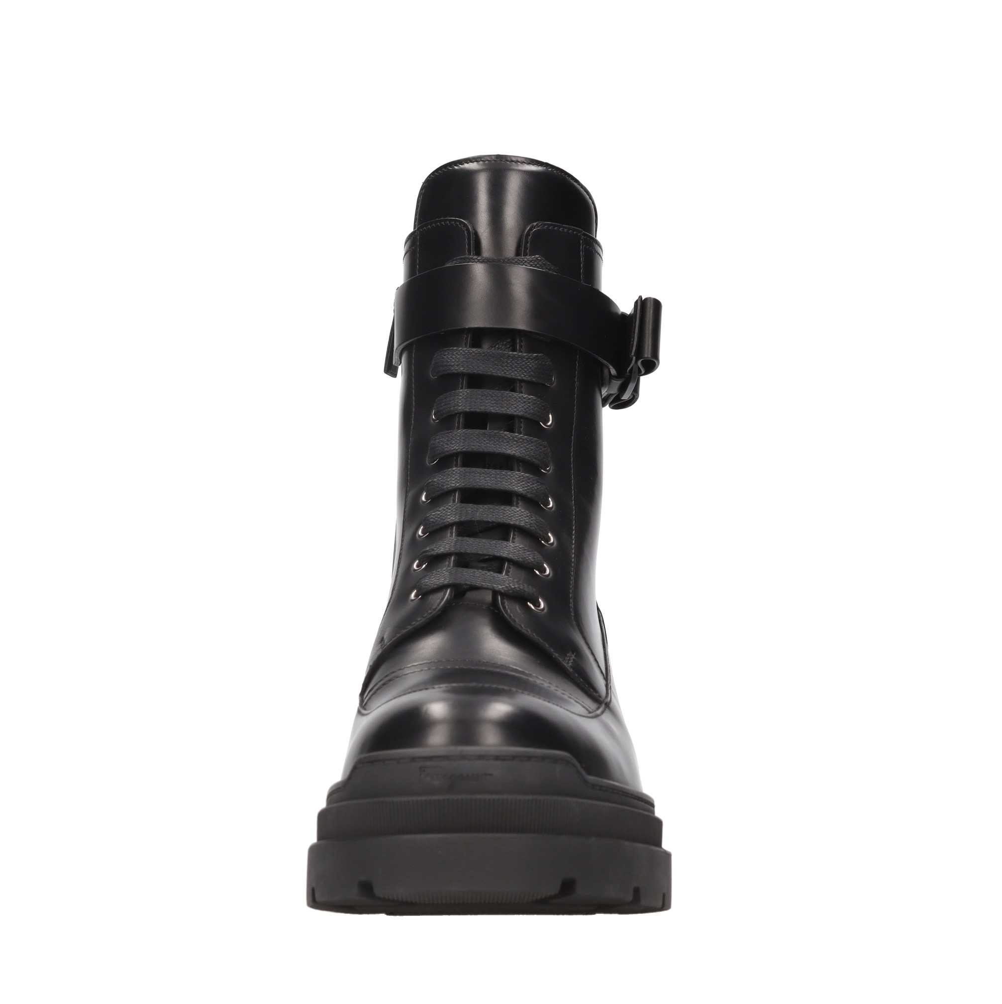 Leather biker boots. Internal leather upper. Outer sole in synthetic material.