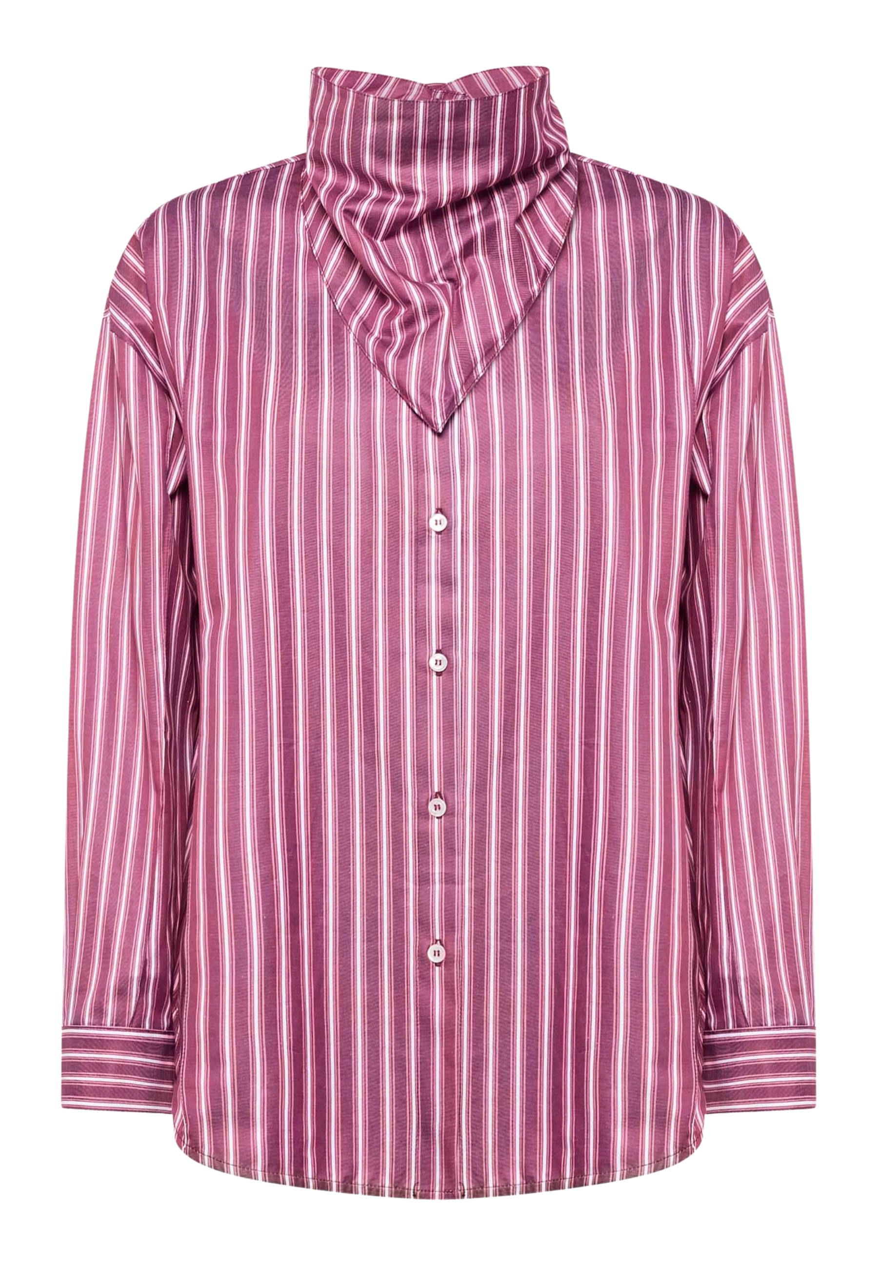 Straight fit shirt in jacquard line popeline with matching scarf. Abbottonation and closure of cuffs with buttons in mother of pearl.