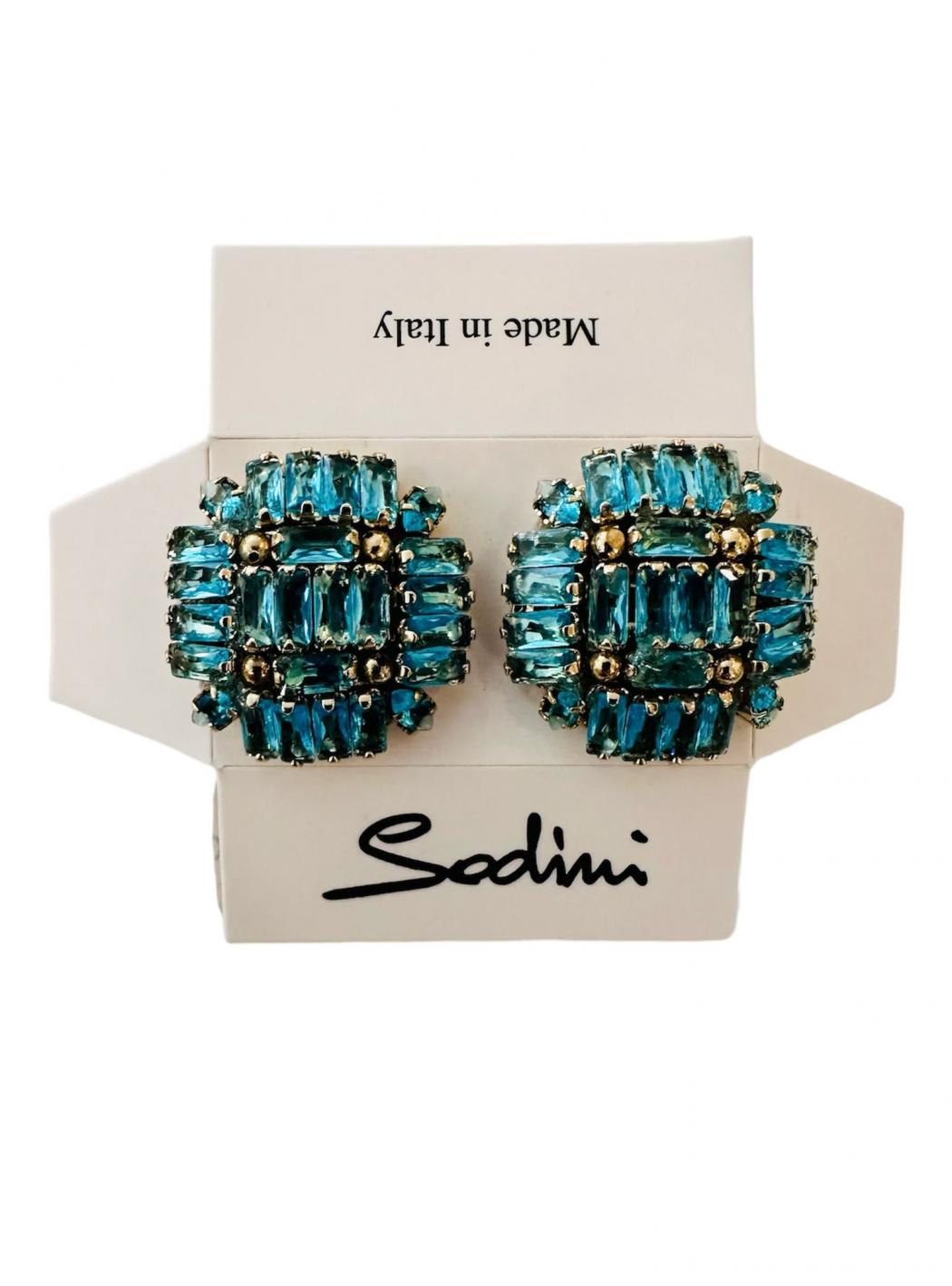 beautiful gold and blue button earring. Elegant bijoux made Sodini Bijoux 100% nickel free