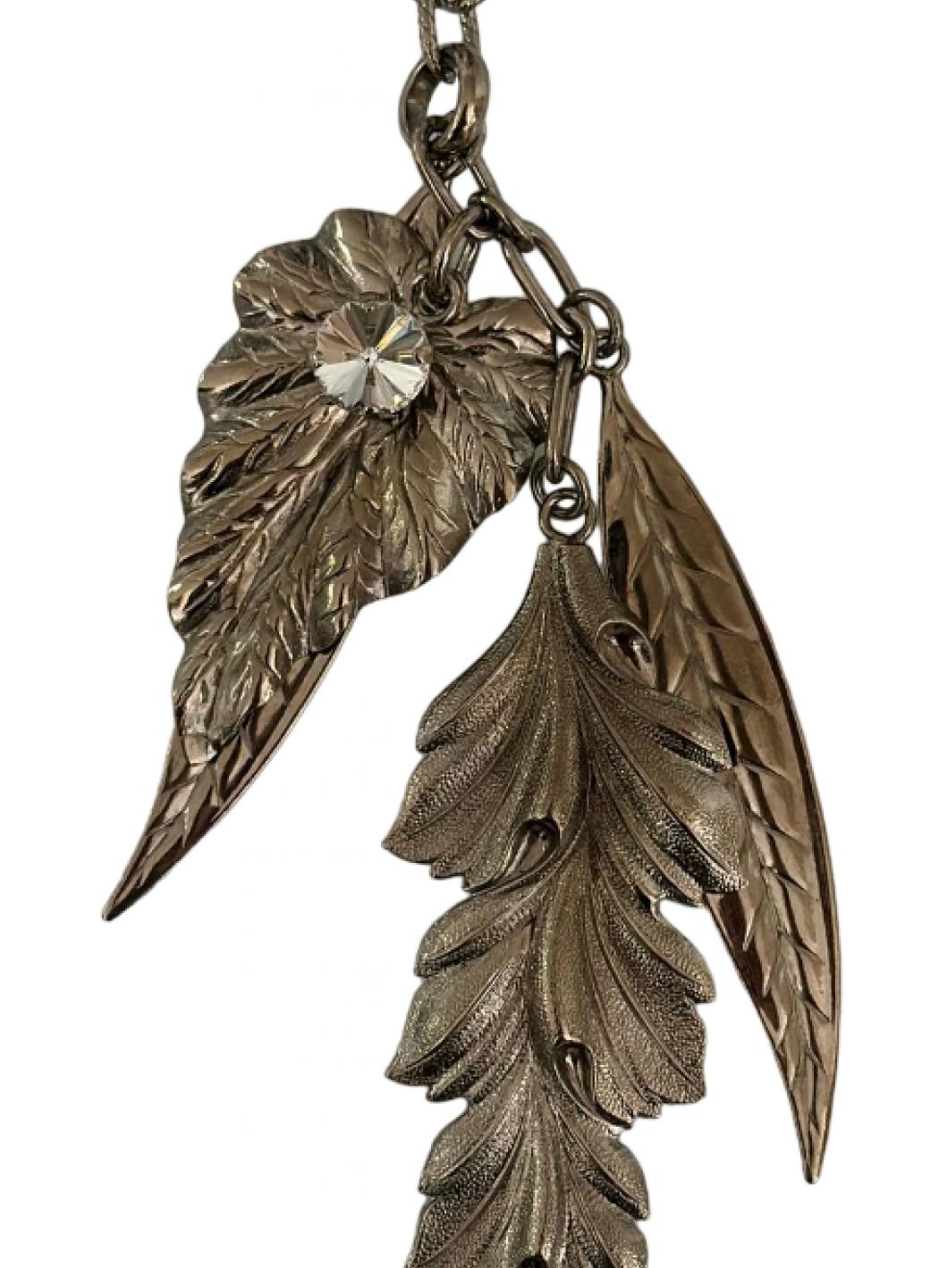 Beautiful long necklace with silver metal and pendant with metal leaves and light point. A unique and original bijoux 100% made in Italy. Sodini Bijoux is a guarantee of success.
