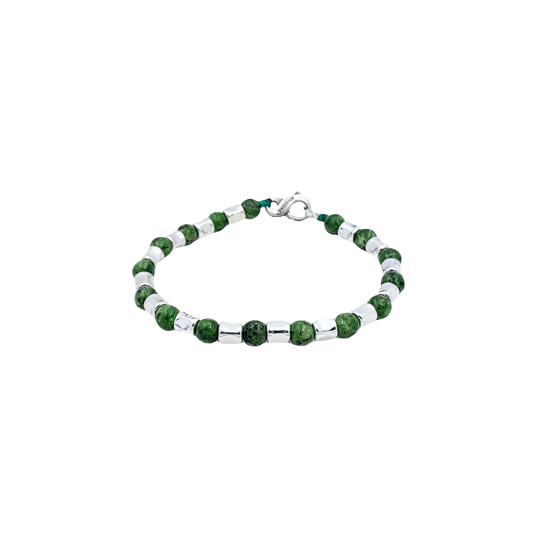 Metal Bracelet With Details in Silver 925% And Green Natural Pet.
