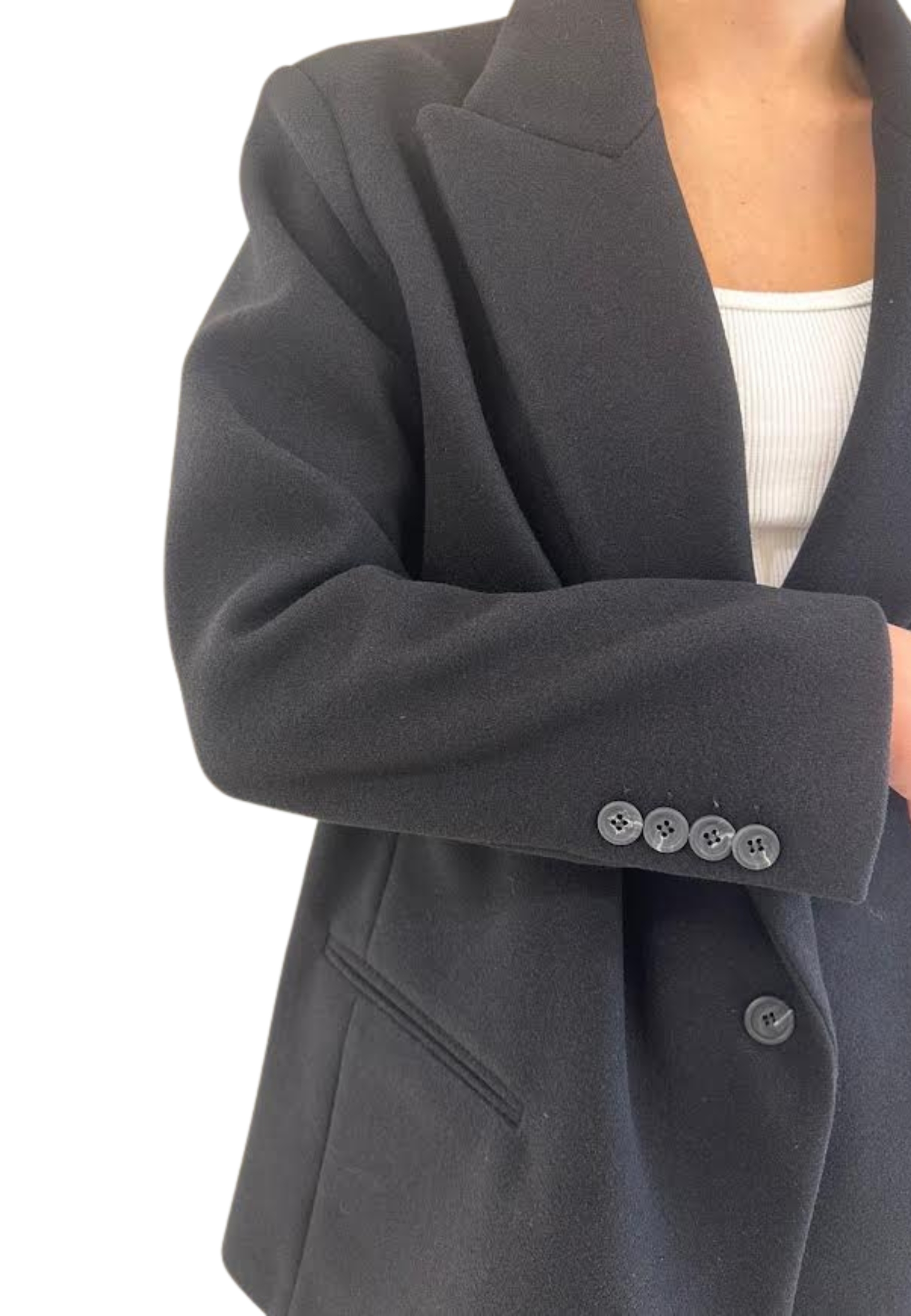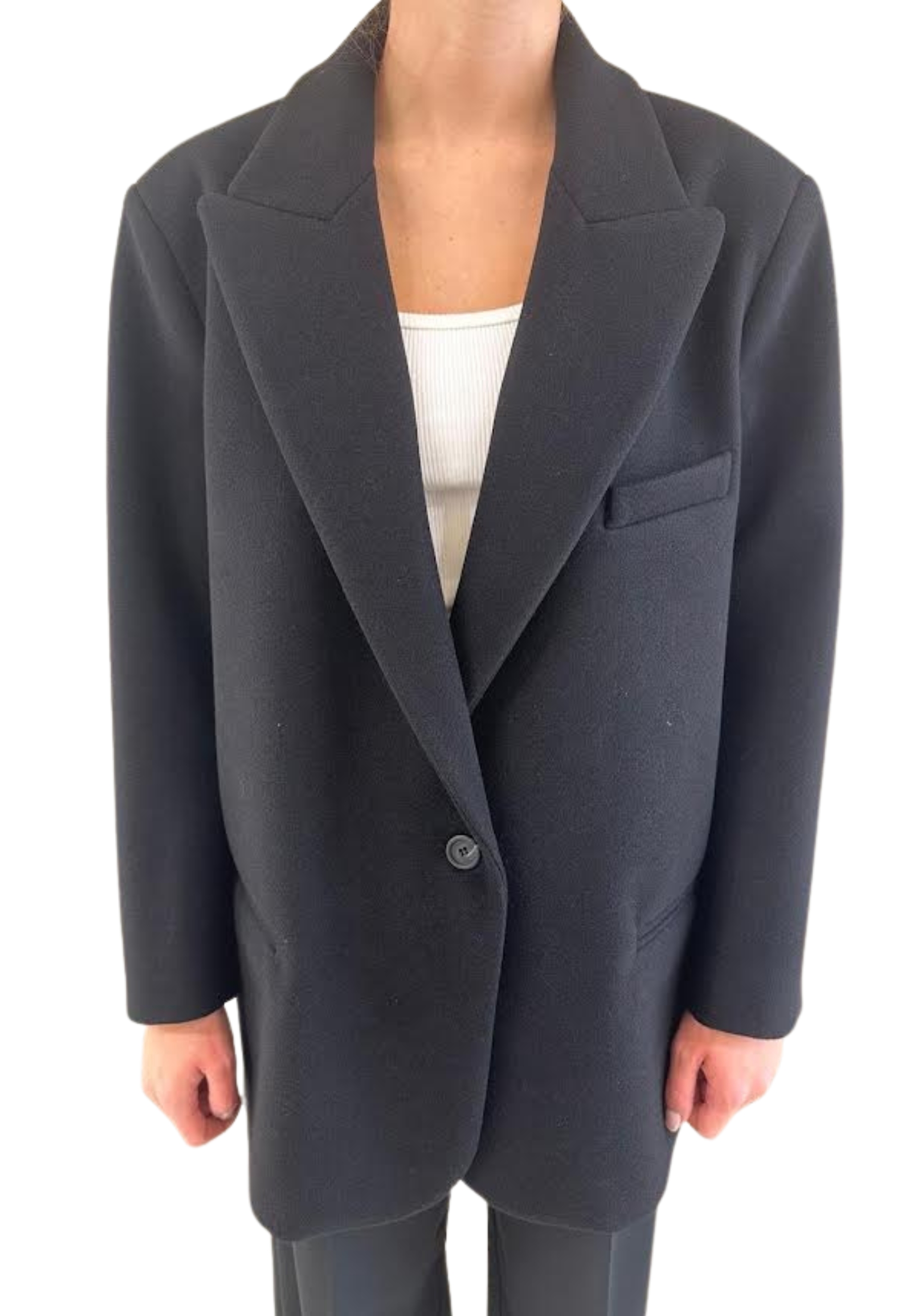 Jacket with revers in cranked technician. Front flap. Front pockets with thread. Label logo on the back under the collar