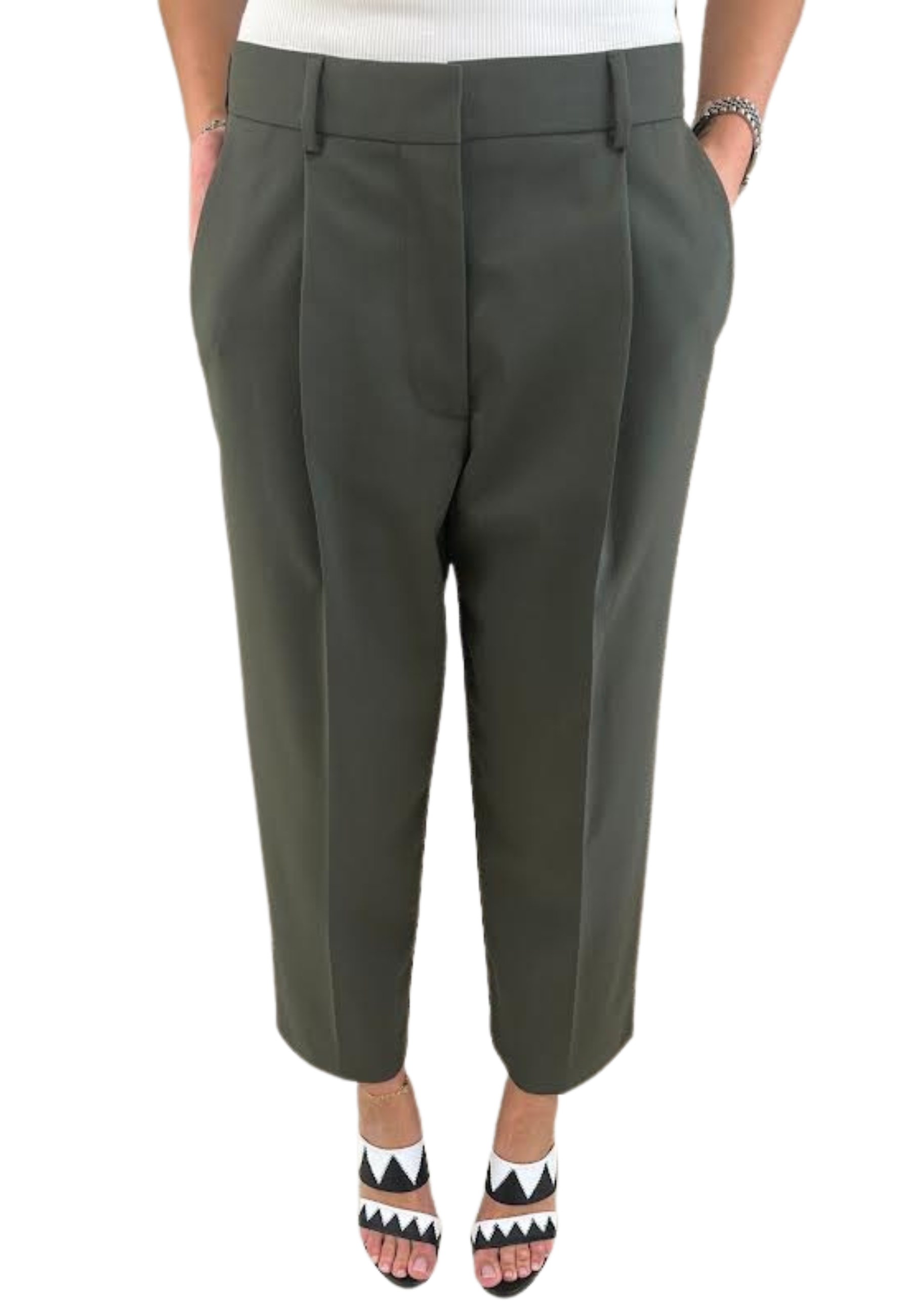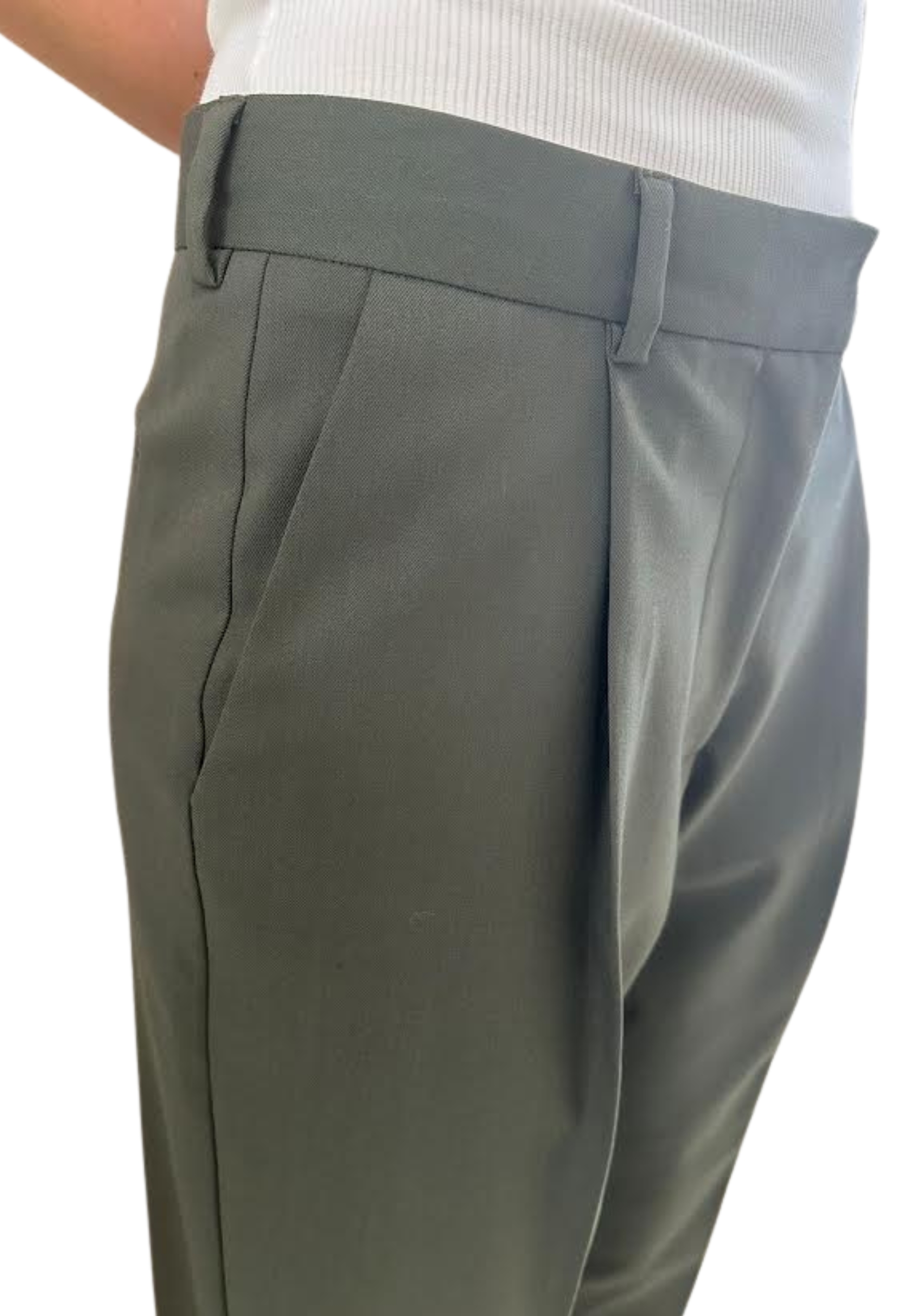 Mid-life trousers in fresh wool. Zip closure and hidden hook, diagonal front pockets and back to thread