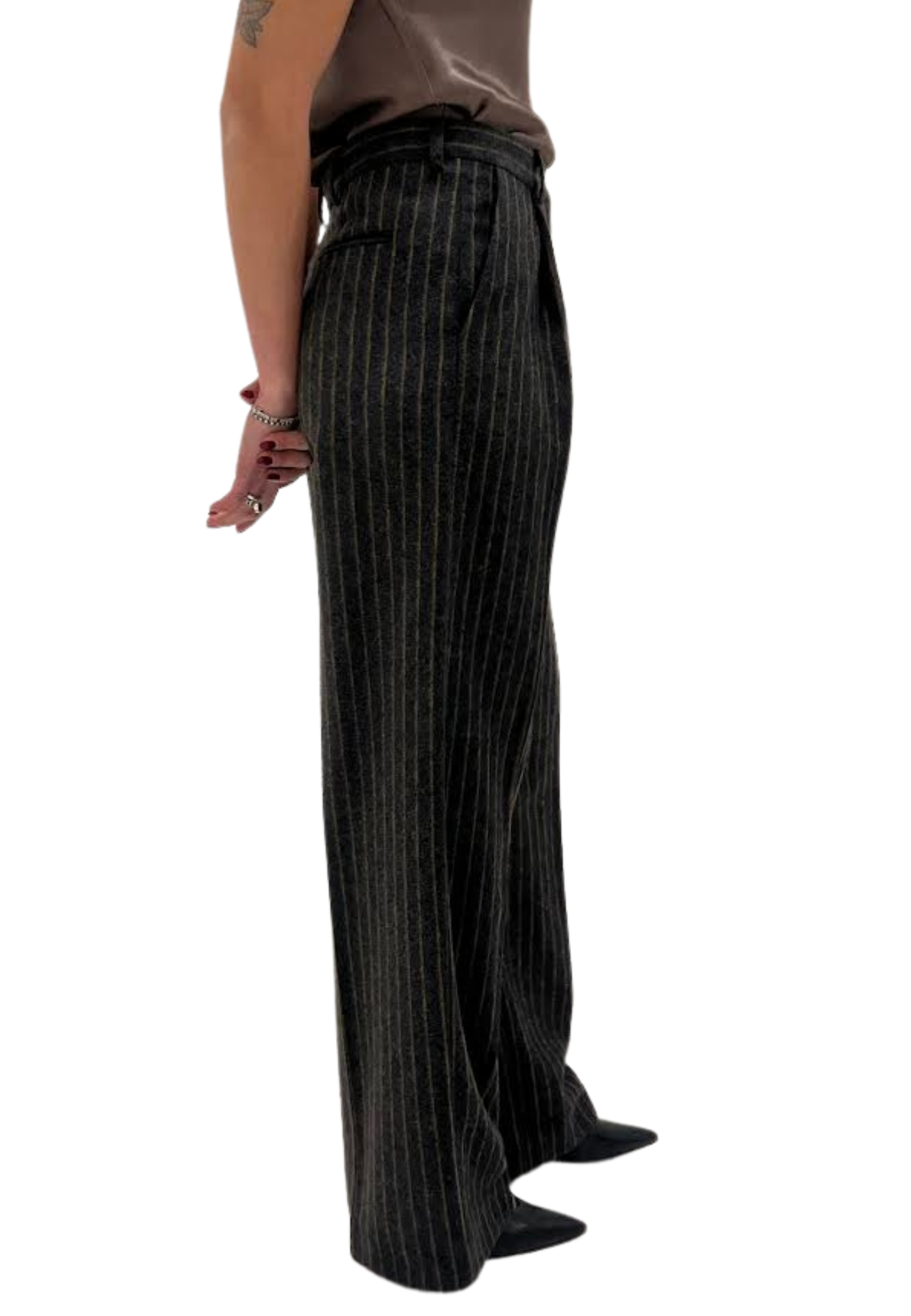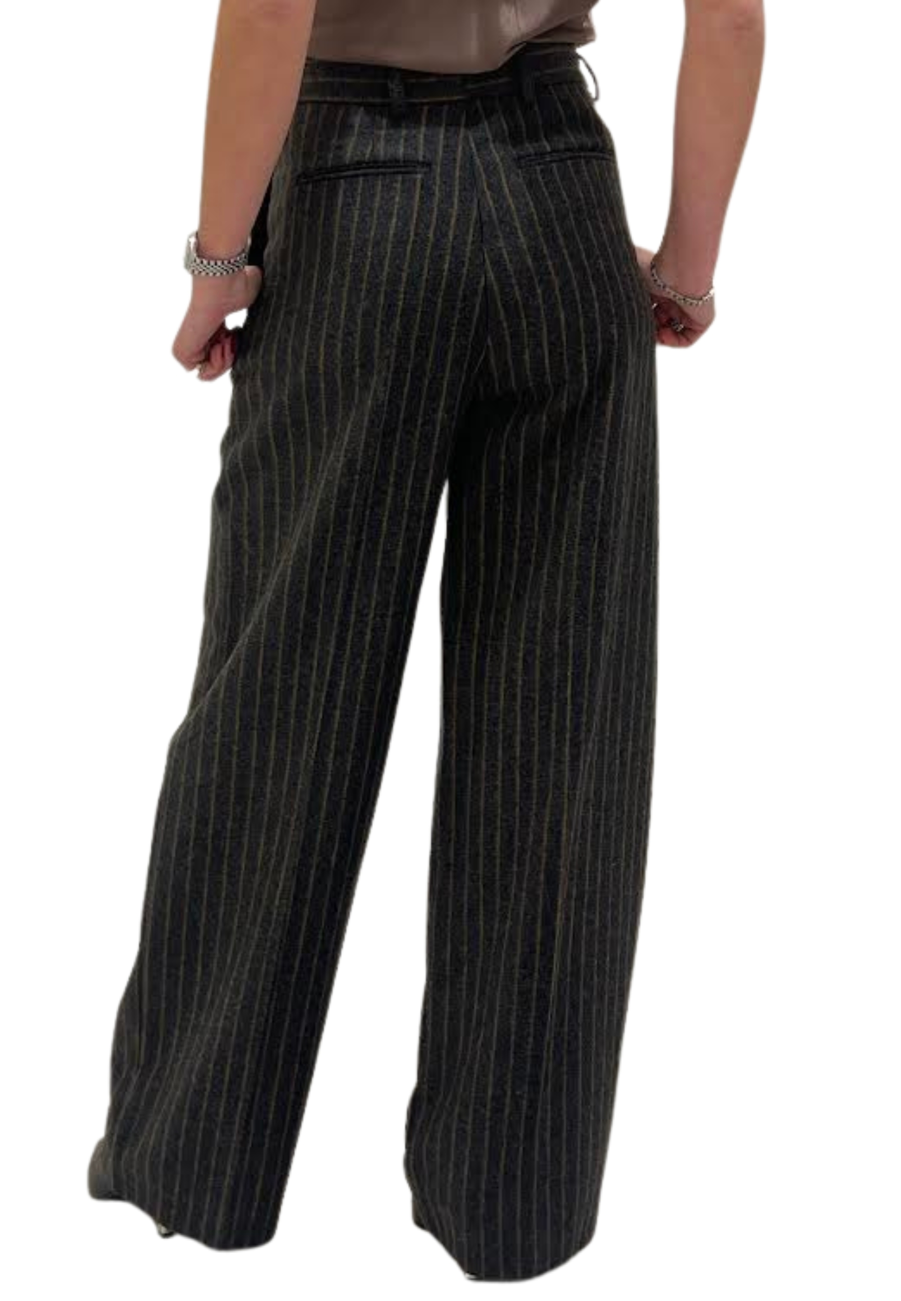 Grey trousers in camouflaged camel cloth with wire pockets.