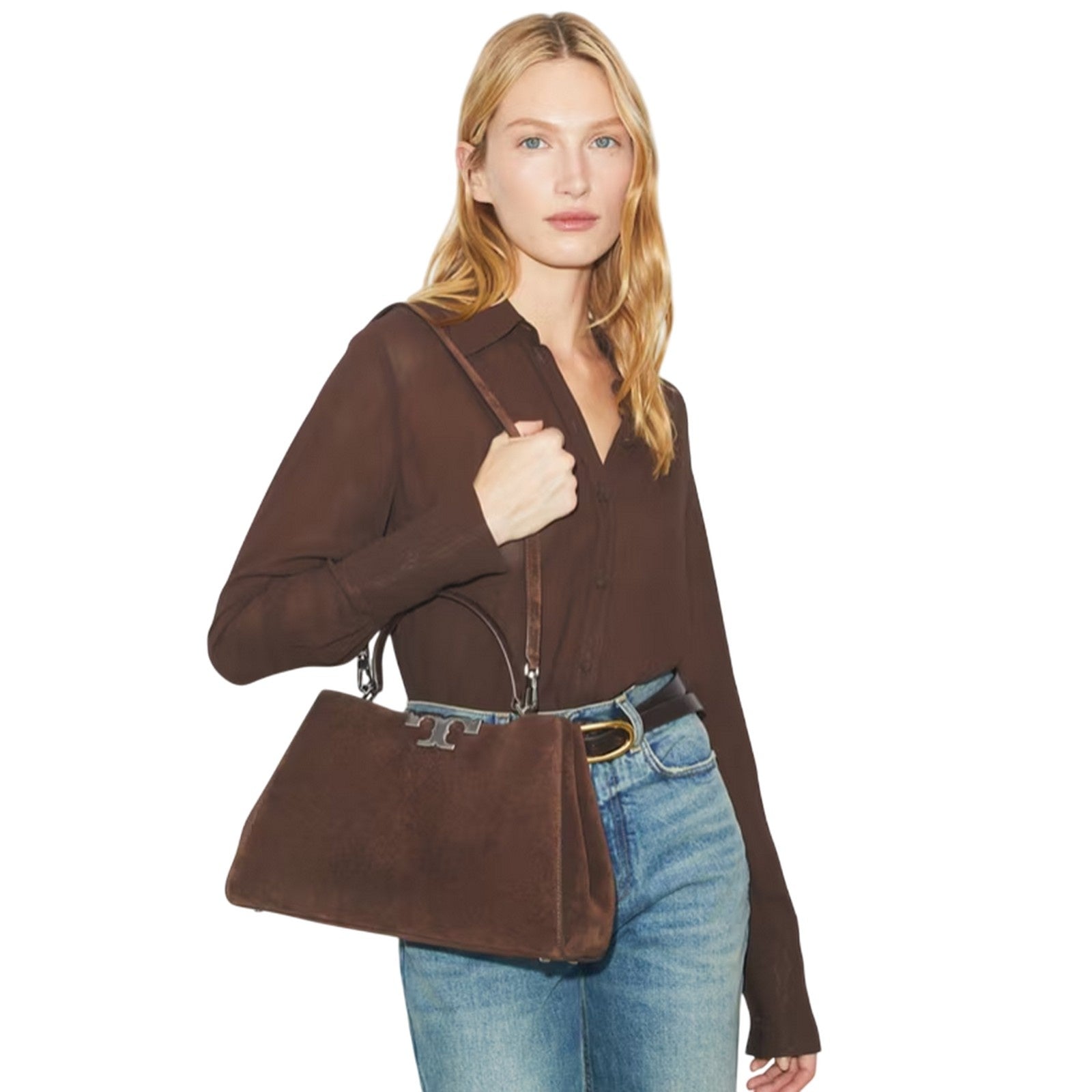 shoulder bags woman Tory Burch - eleanor suede satchel - brown