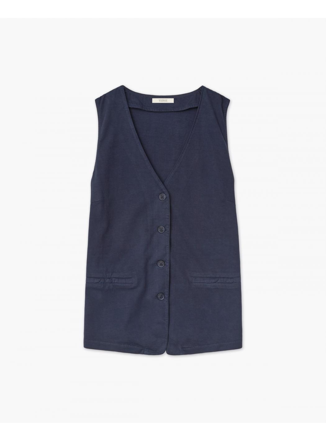 VestaKnit knit meshflat.Fabric100%cotton.CuttingStraight straight.Necklinea V.Left.Closure with buttonseffecttartarugated.Pocketsfinished.