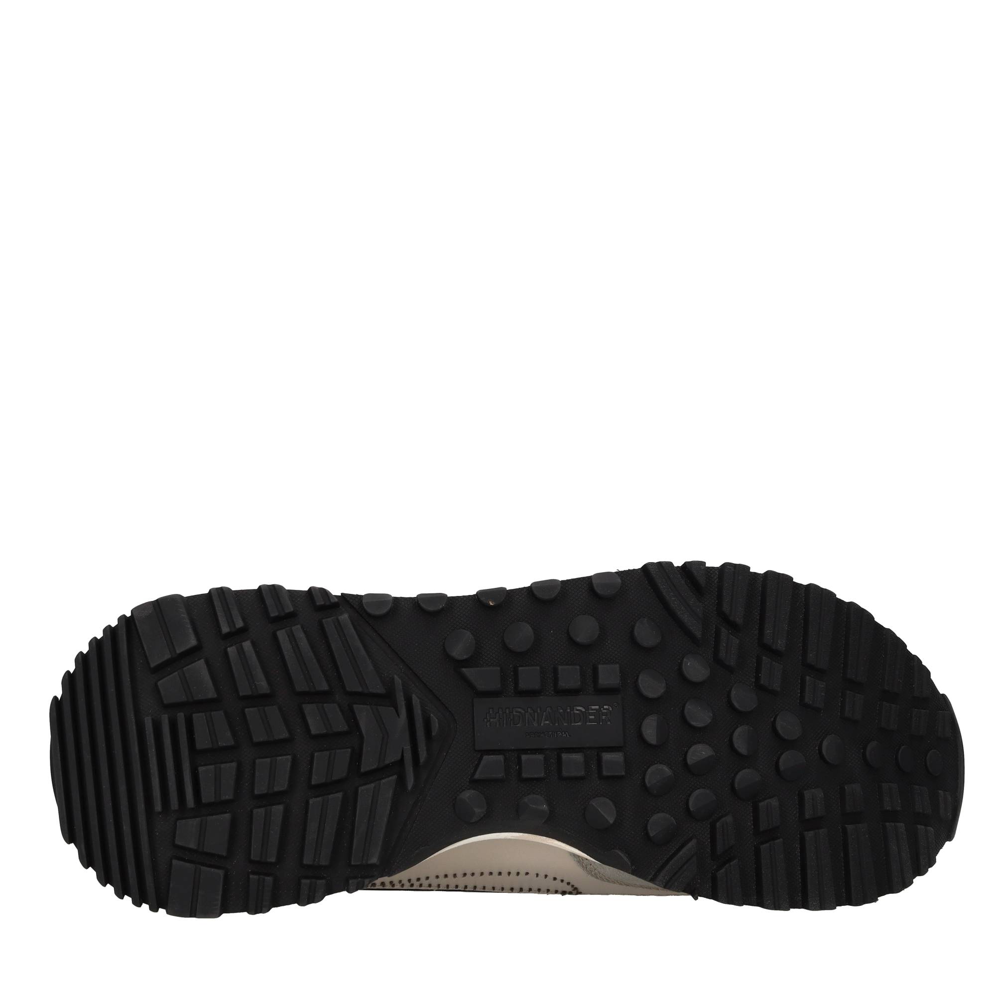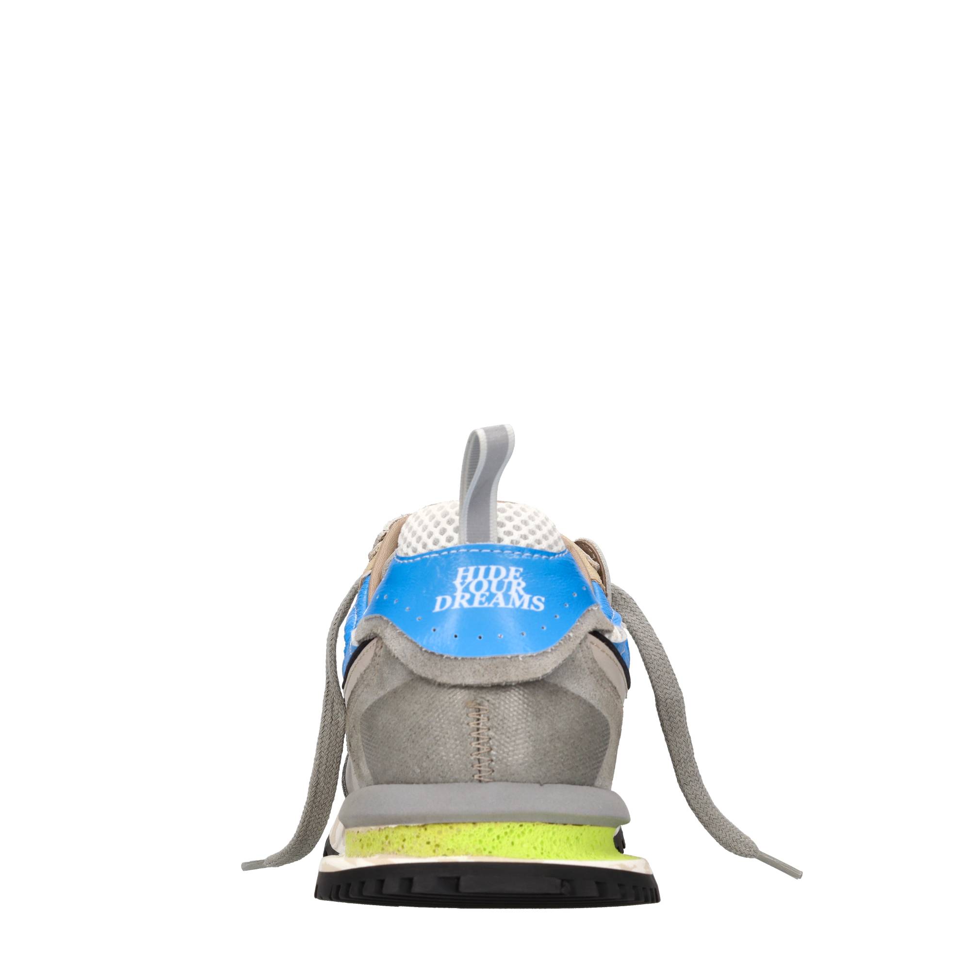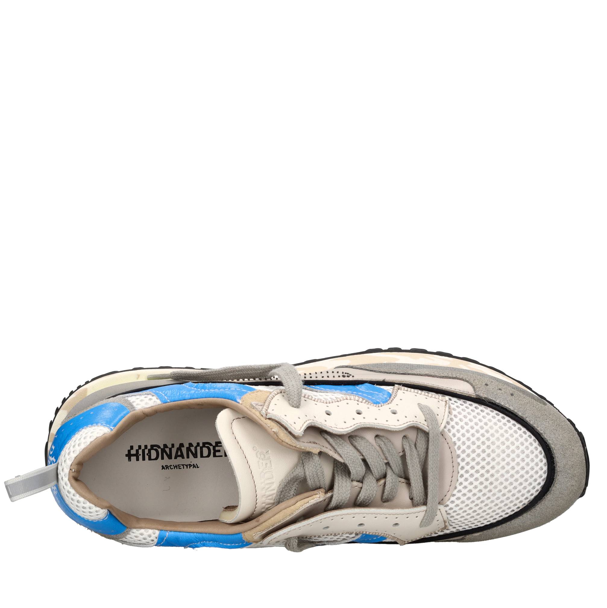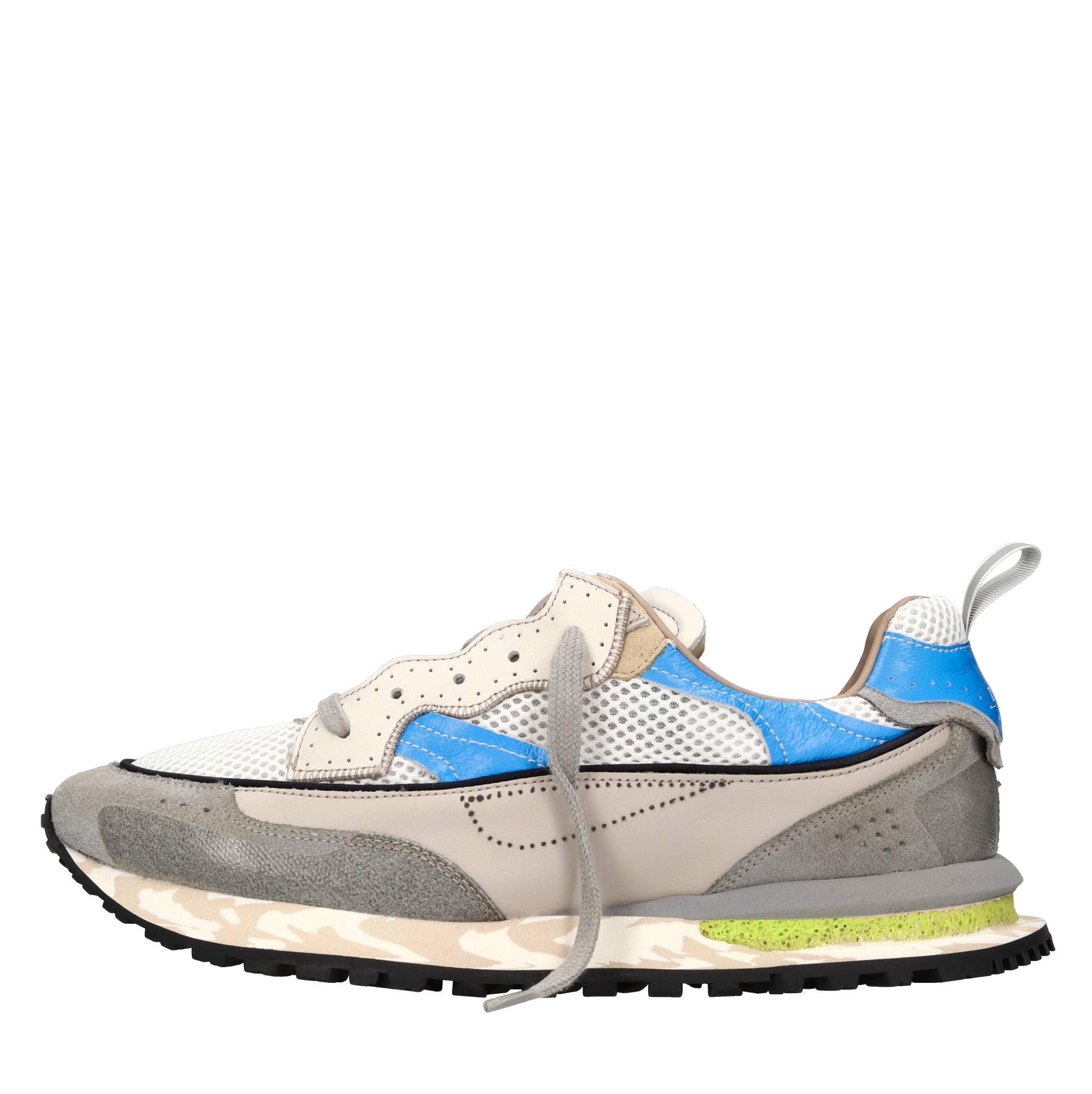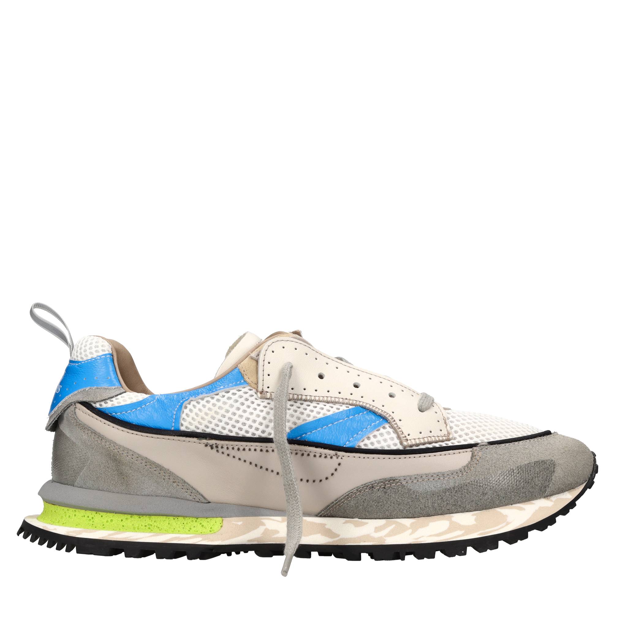 Zapatillas de cuero y tela. Cierre frontal con cordones. Suela exterior de goma con detalles de fluo. Cuero superior.