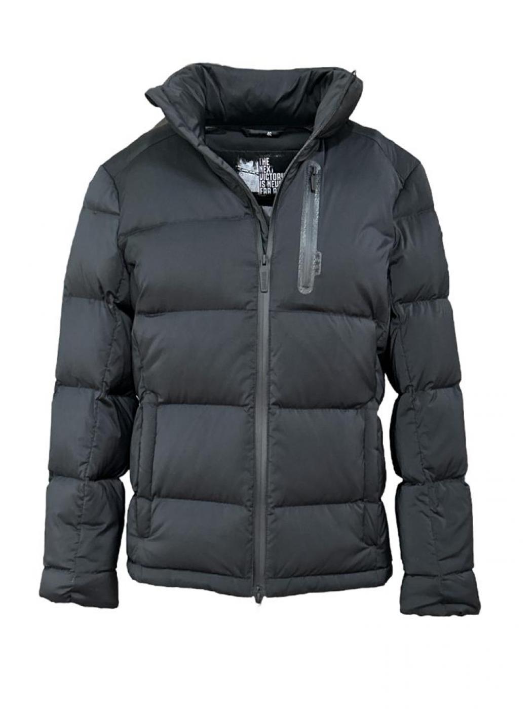 Chaqueta Juventus en nylon mate, acolchado en pluma real y con acolchado horizontal en la parte delantera y oblicua en la espalda. Cierre con cremallera termoalizada. Bolsillos laterales con cremallera y bolsillo vertical con cremallera.
