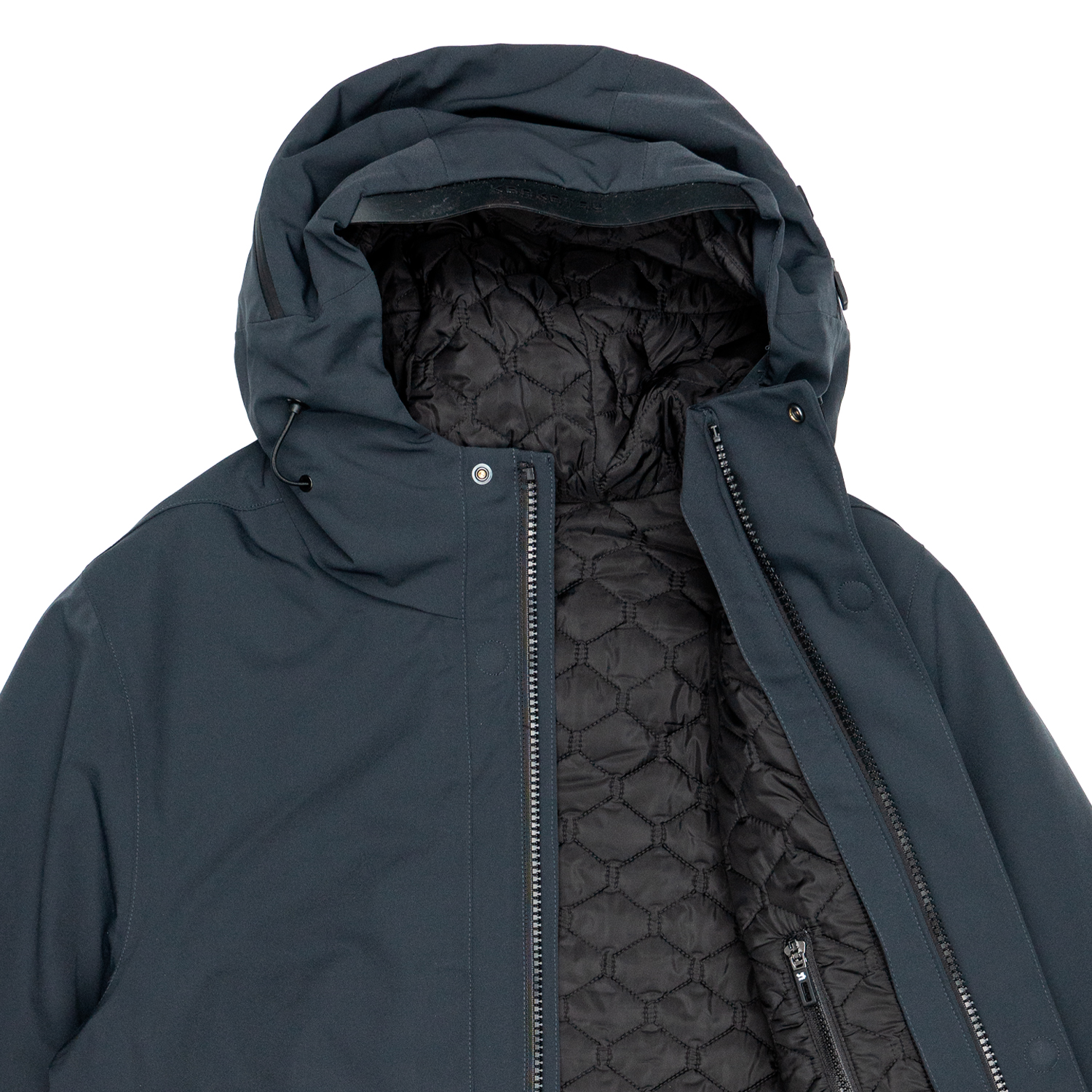 PLANCK parque invernal impermeable con costuras completamente grabadas. Cuenta con ranuras de ventilación lateral y una chaqueta interior extraíble. Equipado con aislamiento ecológico de botellas de plástico reciclado para mantenerte caliente.