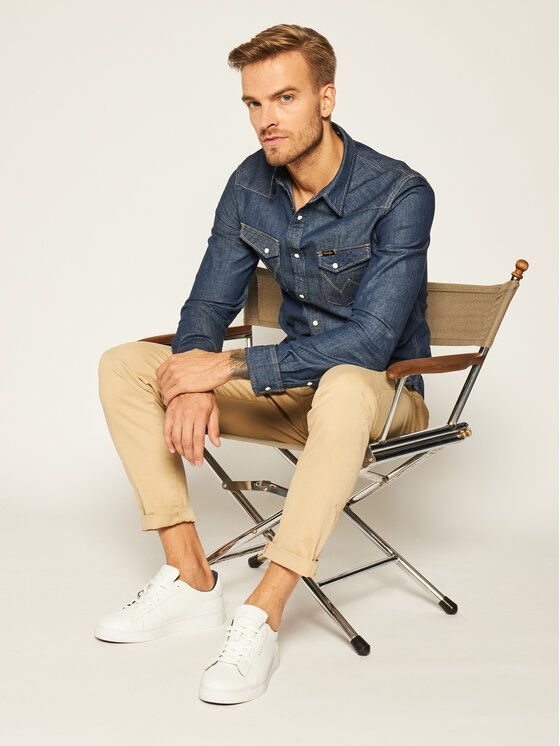 camisas hombre Wrangler 112130116 oeste denim azul oscuro