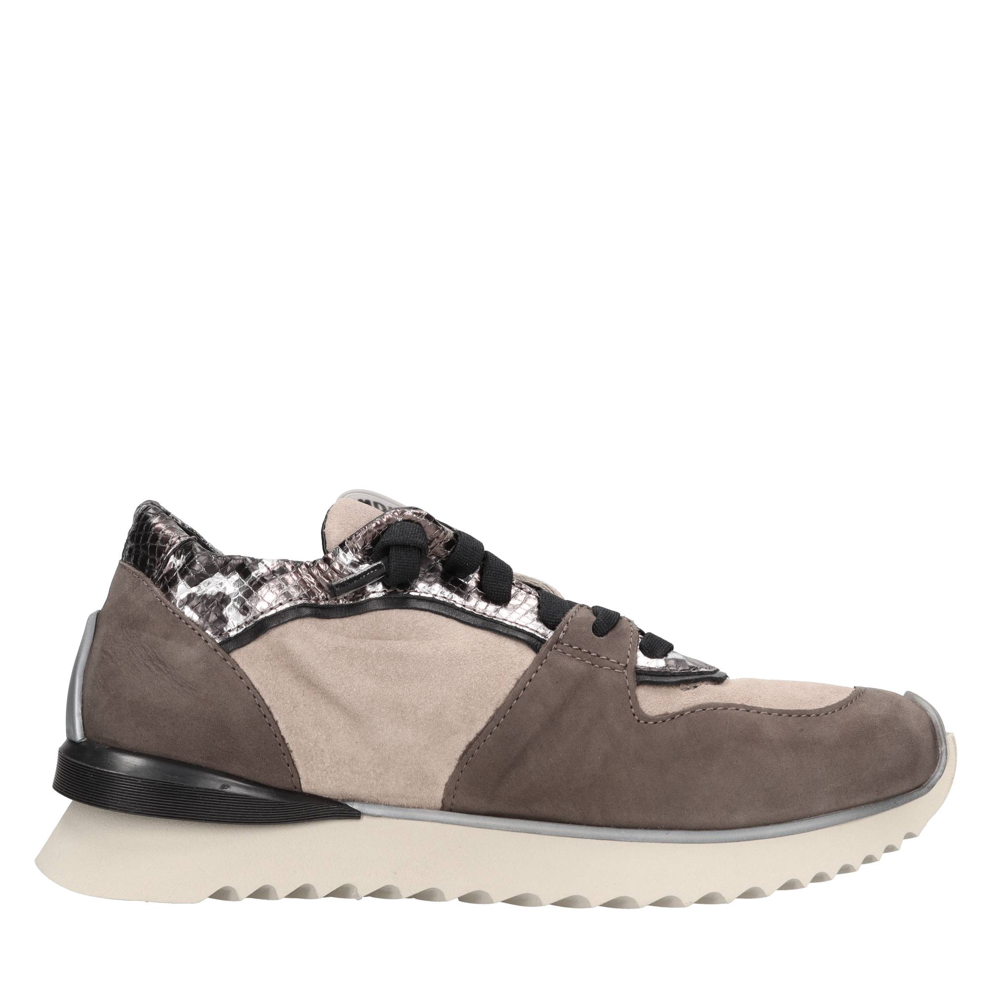 Zapatillas de nobuk. Cierre frontal con cordones. Suela exterior de goma. Parte superior interna de cuero.