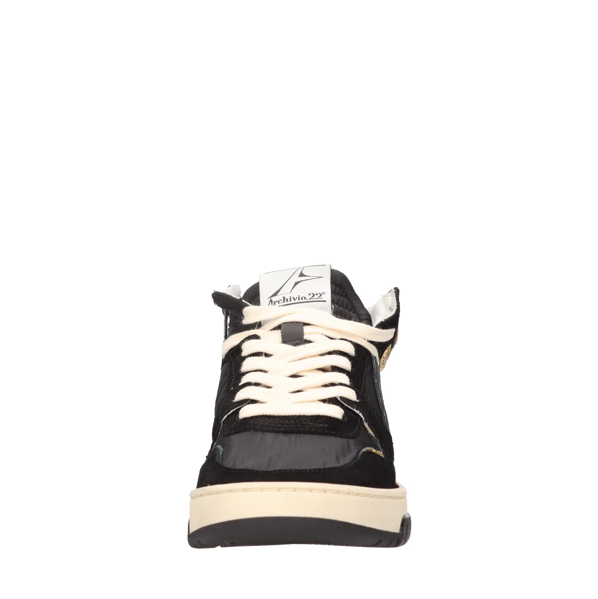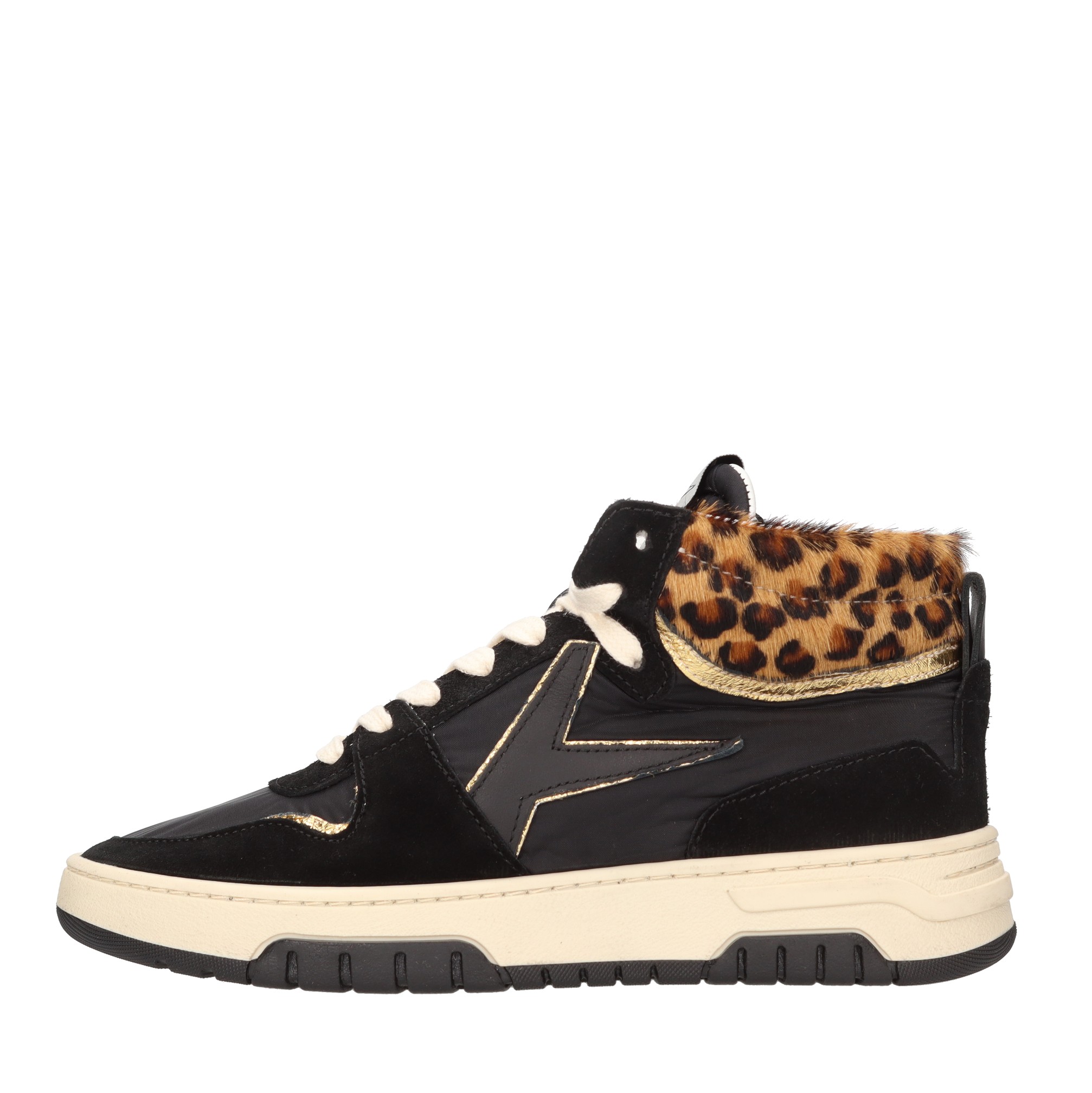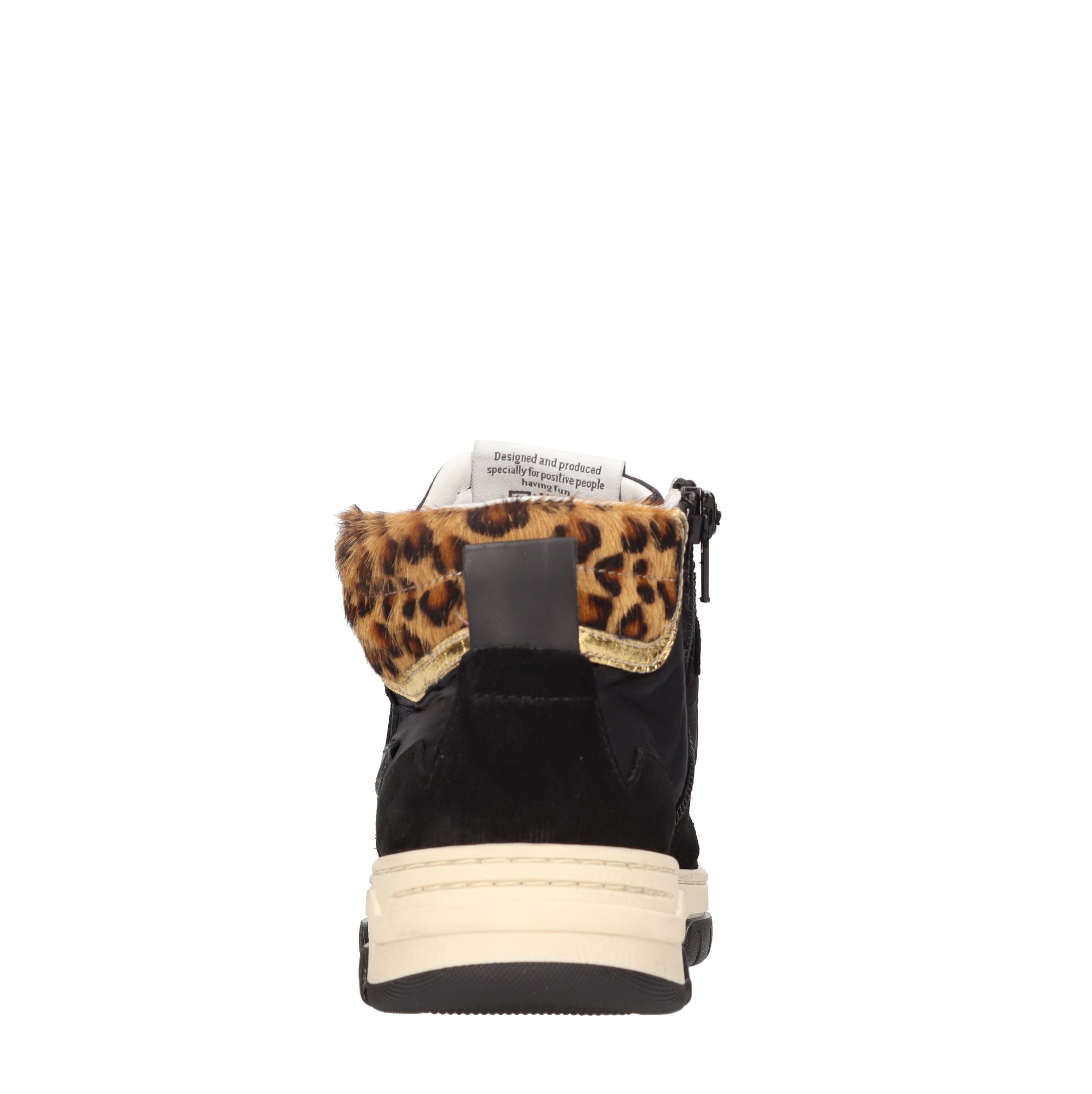 Zapatillas altas en ante y tejido. Parte superior interna en piel y tela. Suela exterior de goma.
