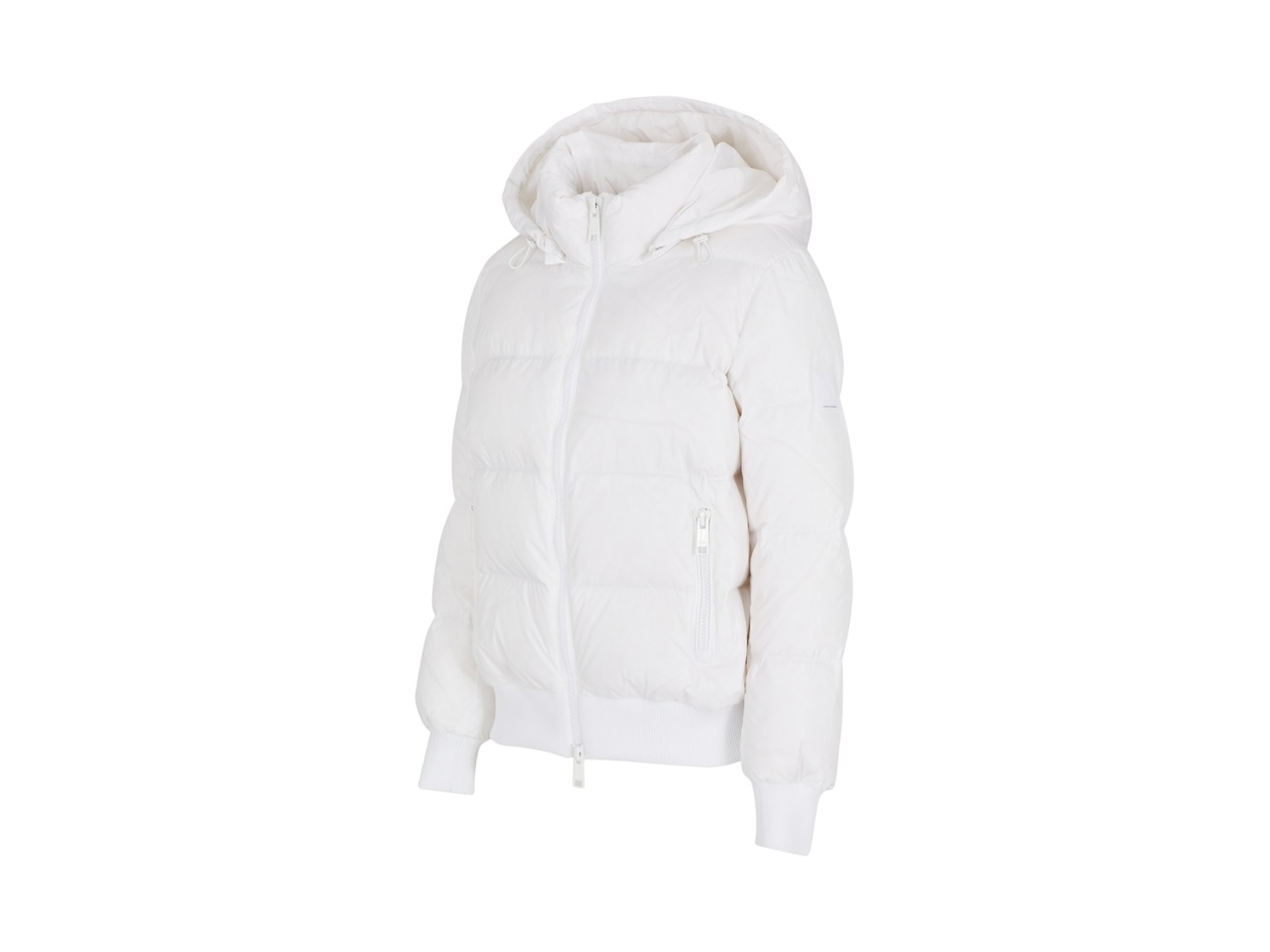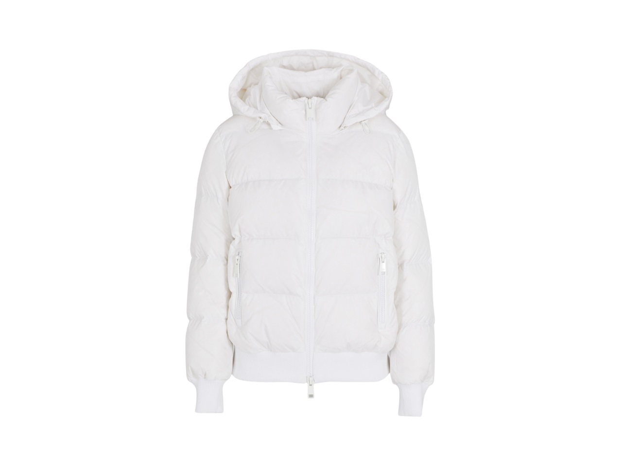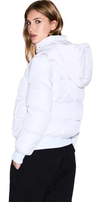 Chaqueta de nylon resistente a la pluma acolchada, diseñada para garantizar la máxima comodidad y protección térmica en días más fríos. El diseño es limpio y contemporáneo, con capucha envolvente que ofrece cobertura extra y detalles funcionales diseñados para la vida urbana. Las esposas y el borde acanalado aseguran un ajuste ajustado que retiene el calor, mientras que los bolsillos con cremallera mantienen los elementos esenciales seguros. Su silueta versátil hace que sea un aliado indispensable para enfrentar el invierno con un estilo joven y dinámico, fácil de integrar en cualquier armario de moda. relleno: 80% pluma de pato blanco, 20% plumas de pato blanco; tejido de nylon con sello de plumas. Cierre frontal con cremallera de longitud completa. Capucha fija con cordón ajustable. Dos bolsillos laterales verticales con cierre de cremallera. Esposas elásticas y borde. Parche con logo aplicado en la manga.