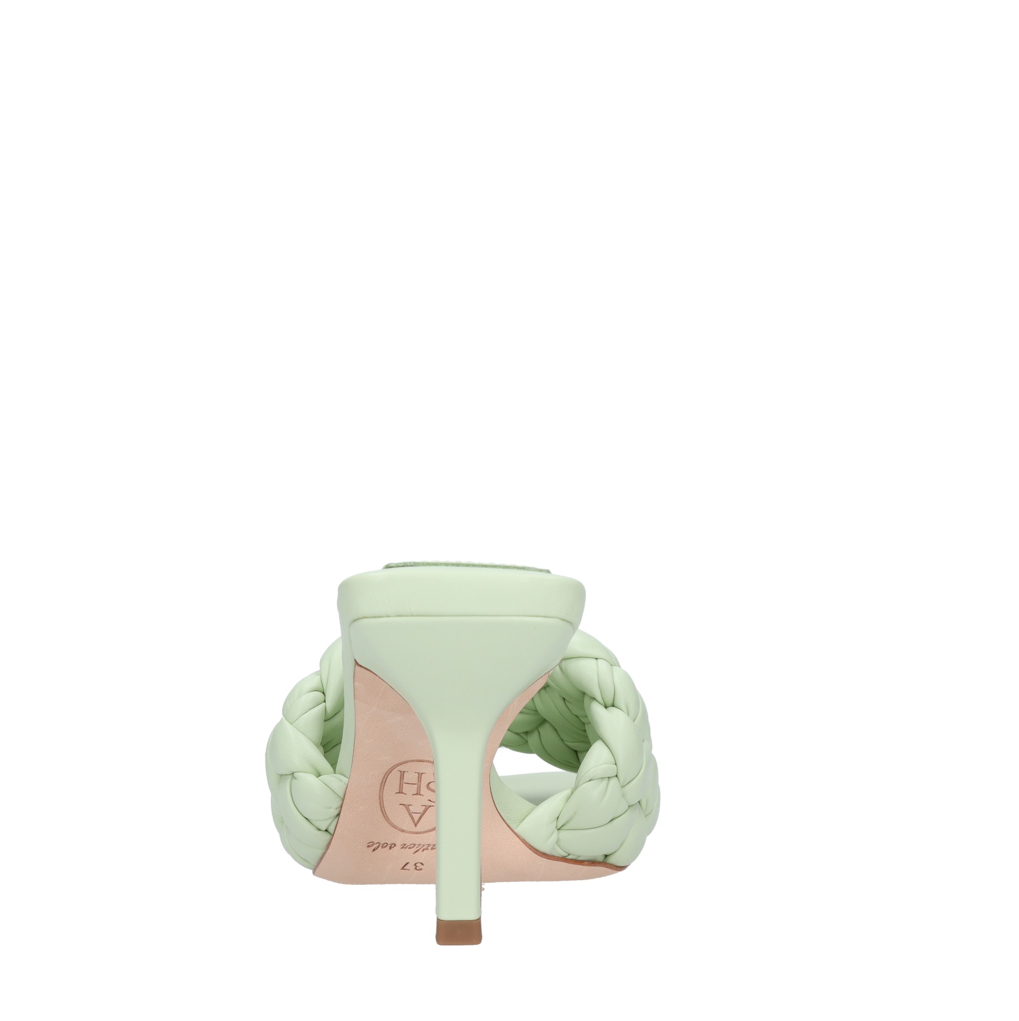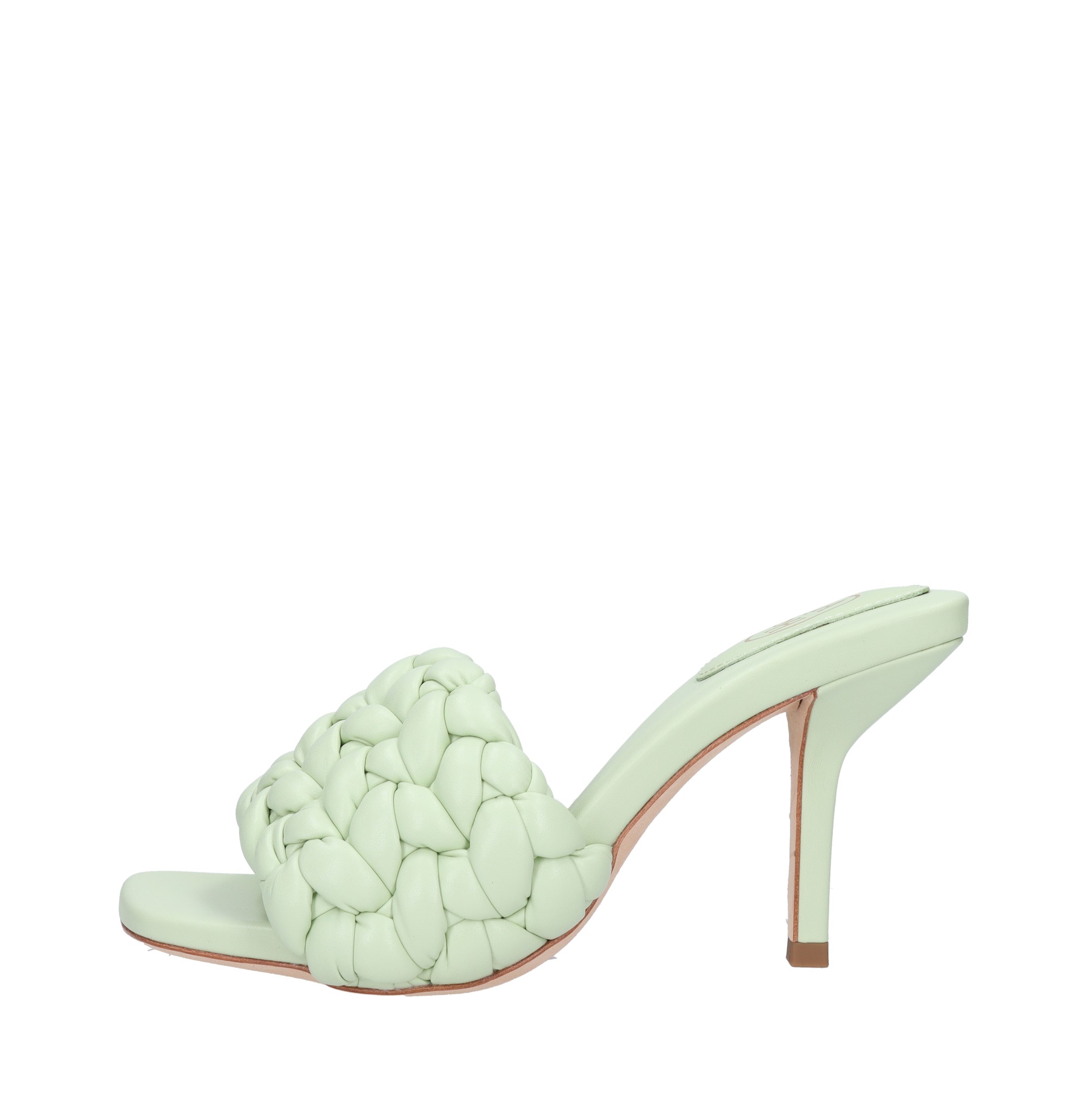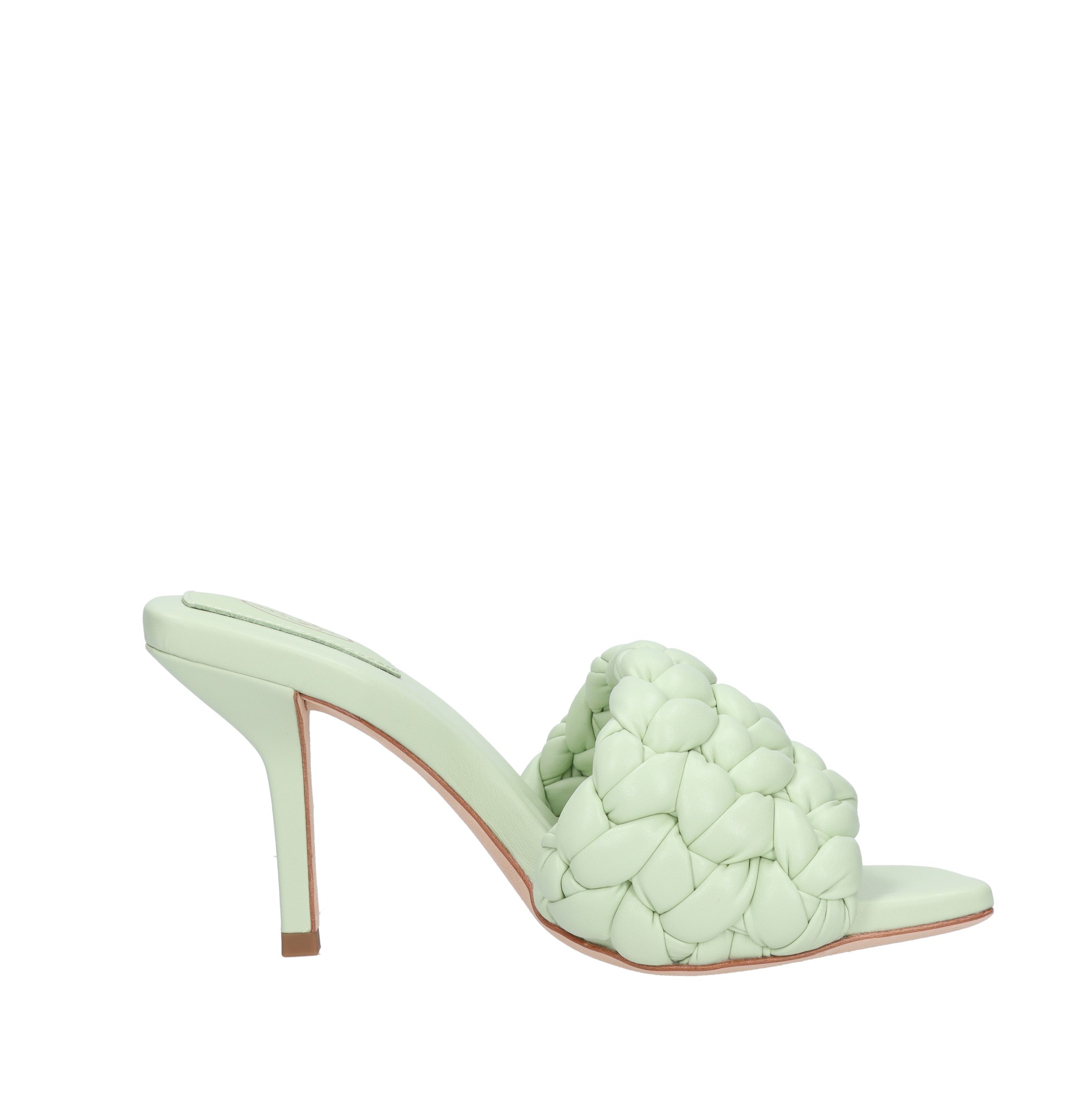 Mules de piel tejida. Parte superior interna de cuero. Suela exterior de piel.