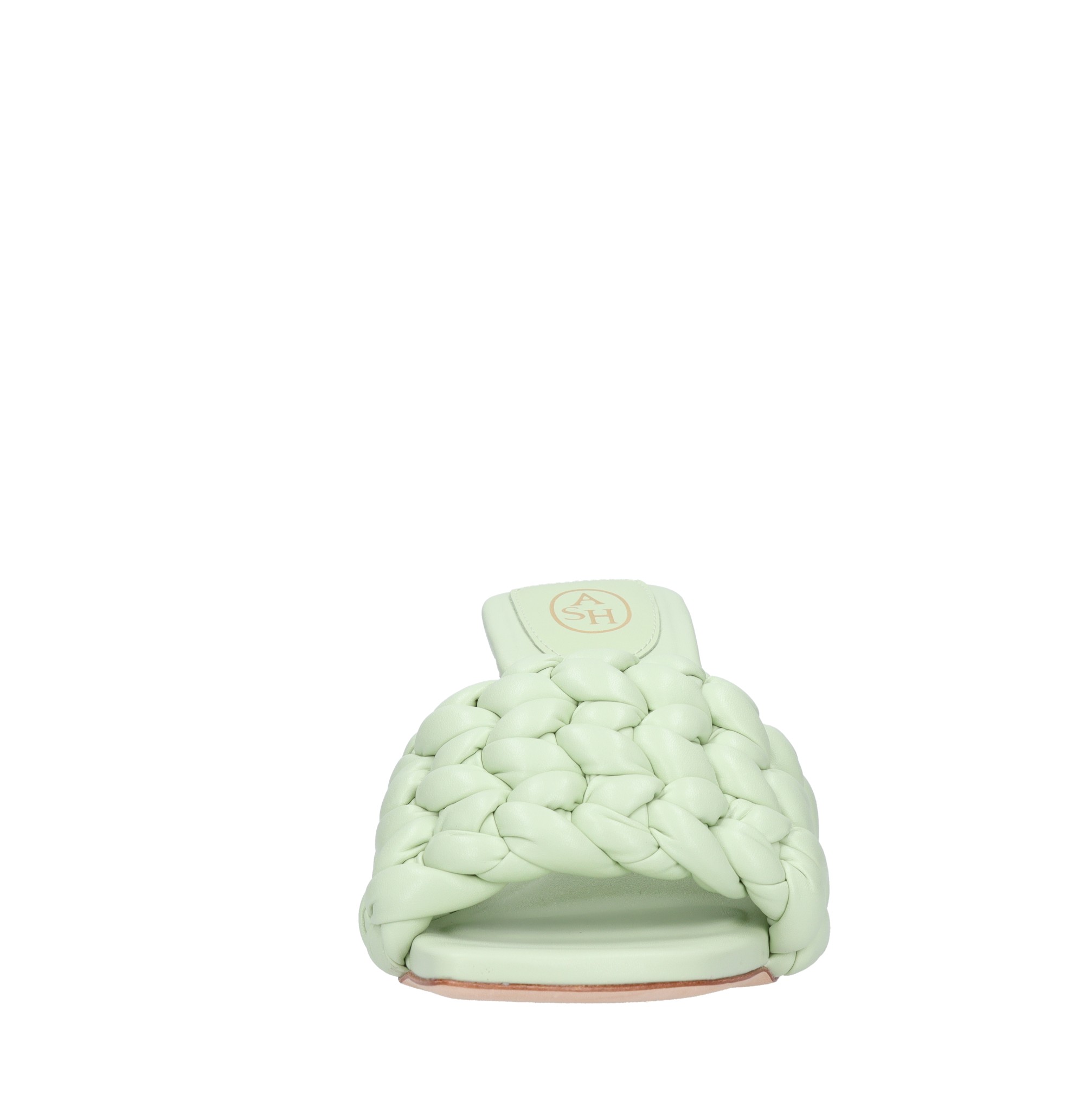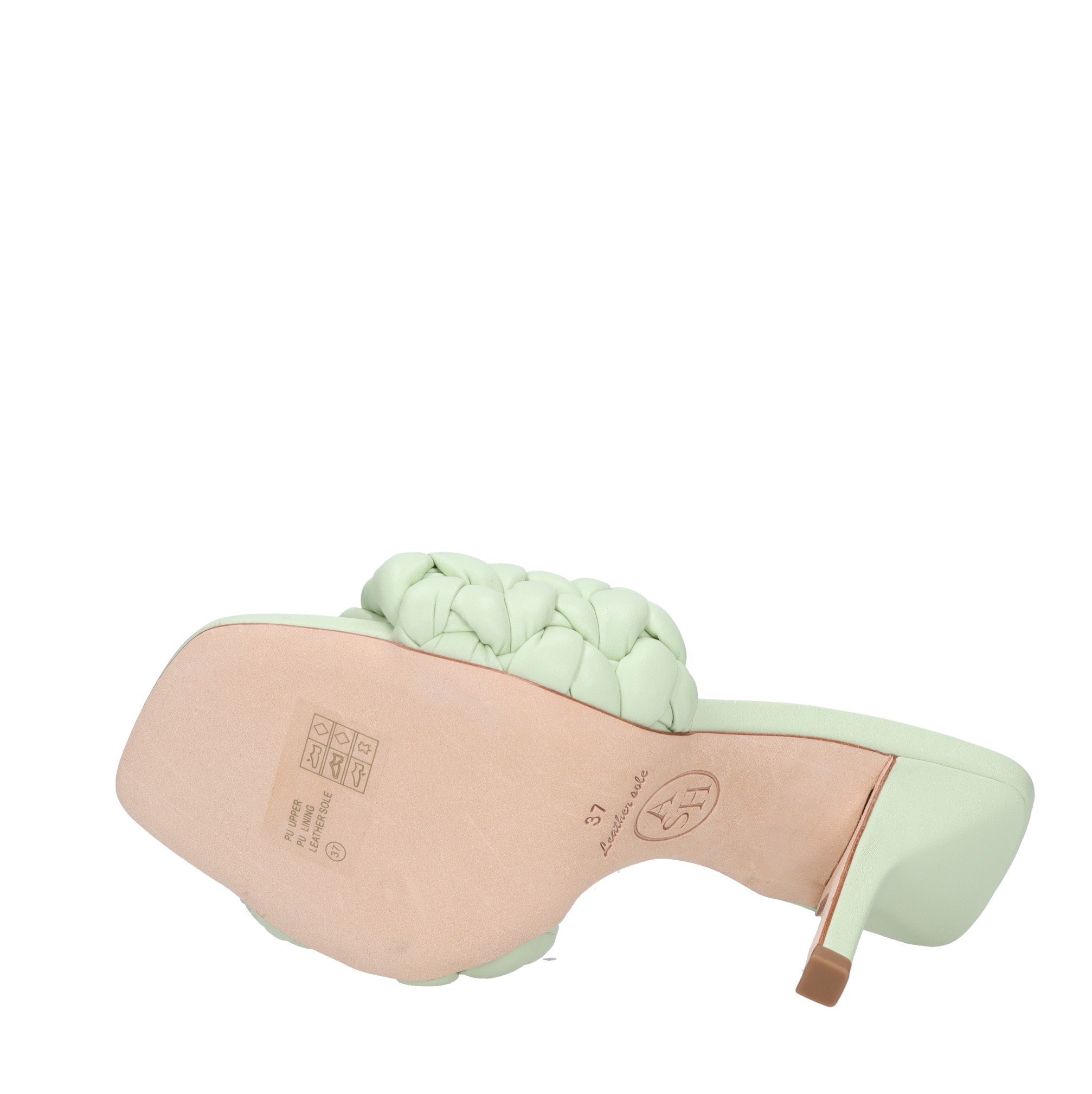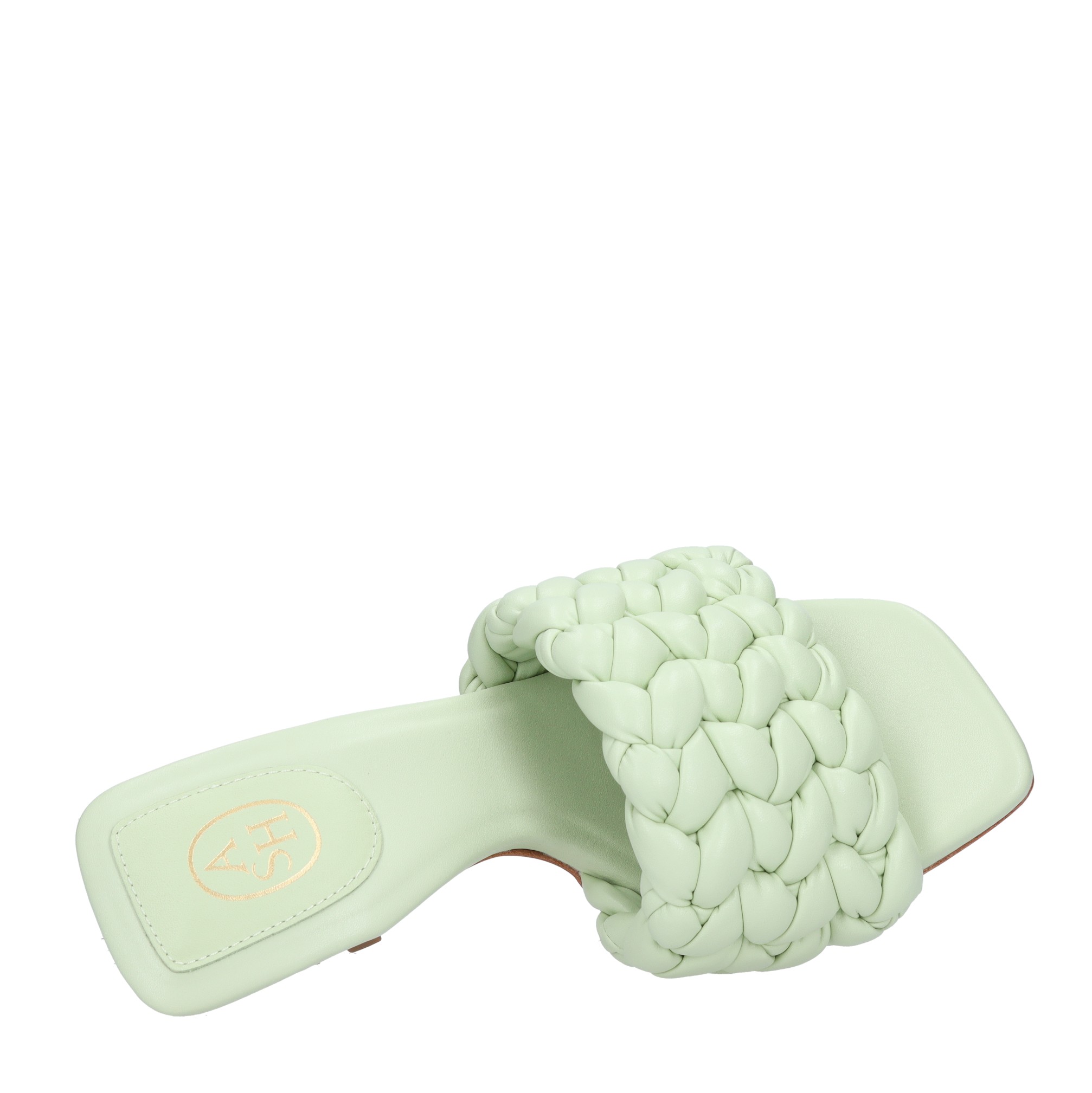 Mules de piel tejida. Parte superior interna de cuero. Suela exterior de piel.
