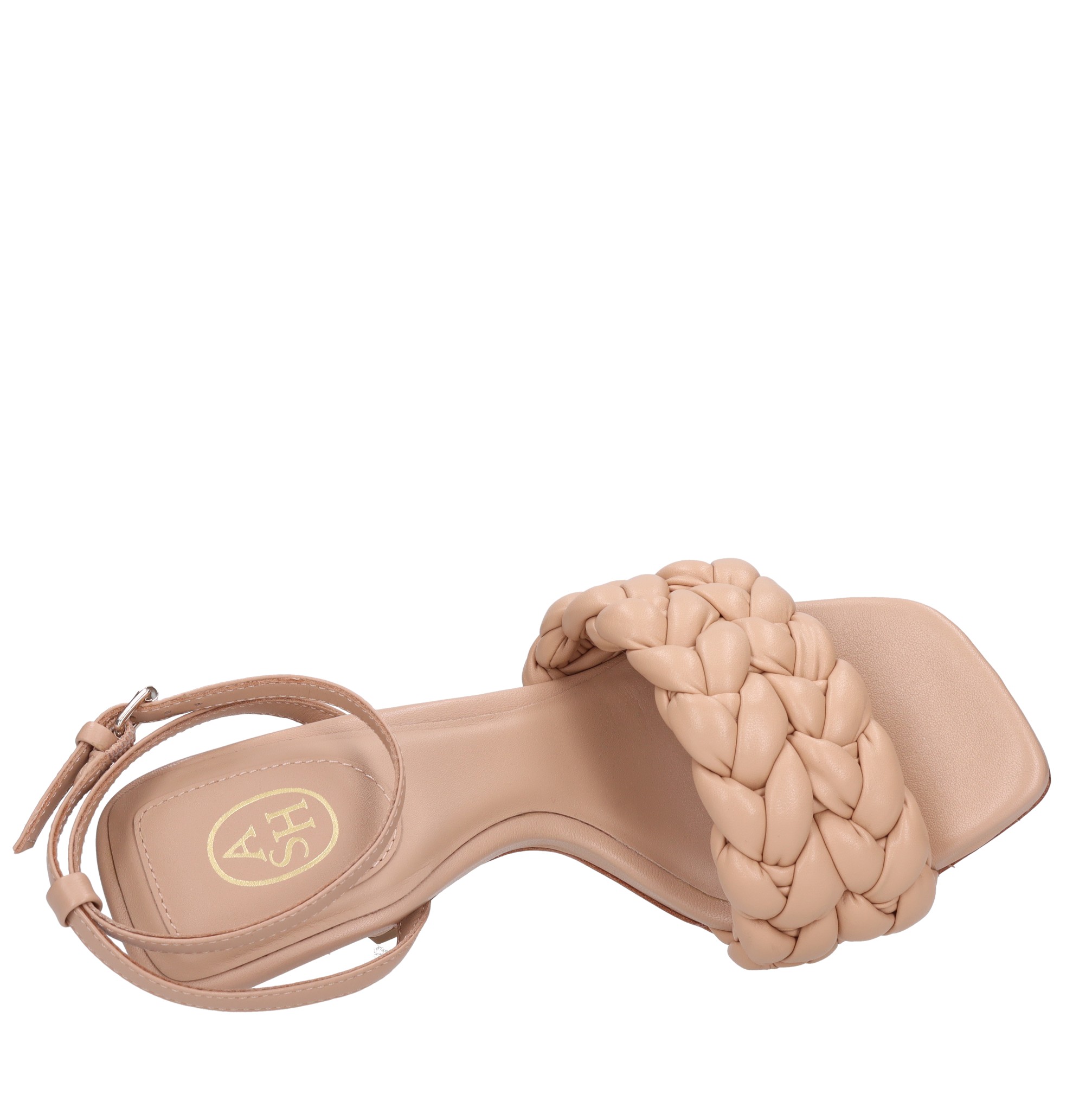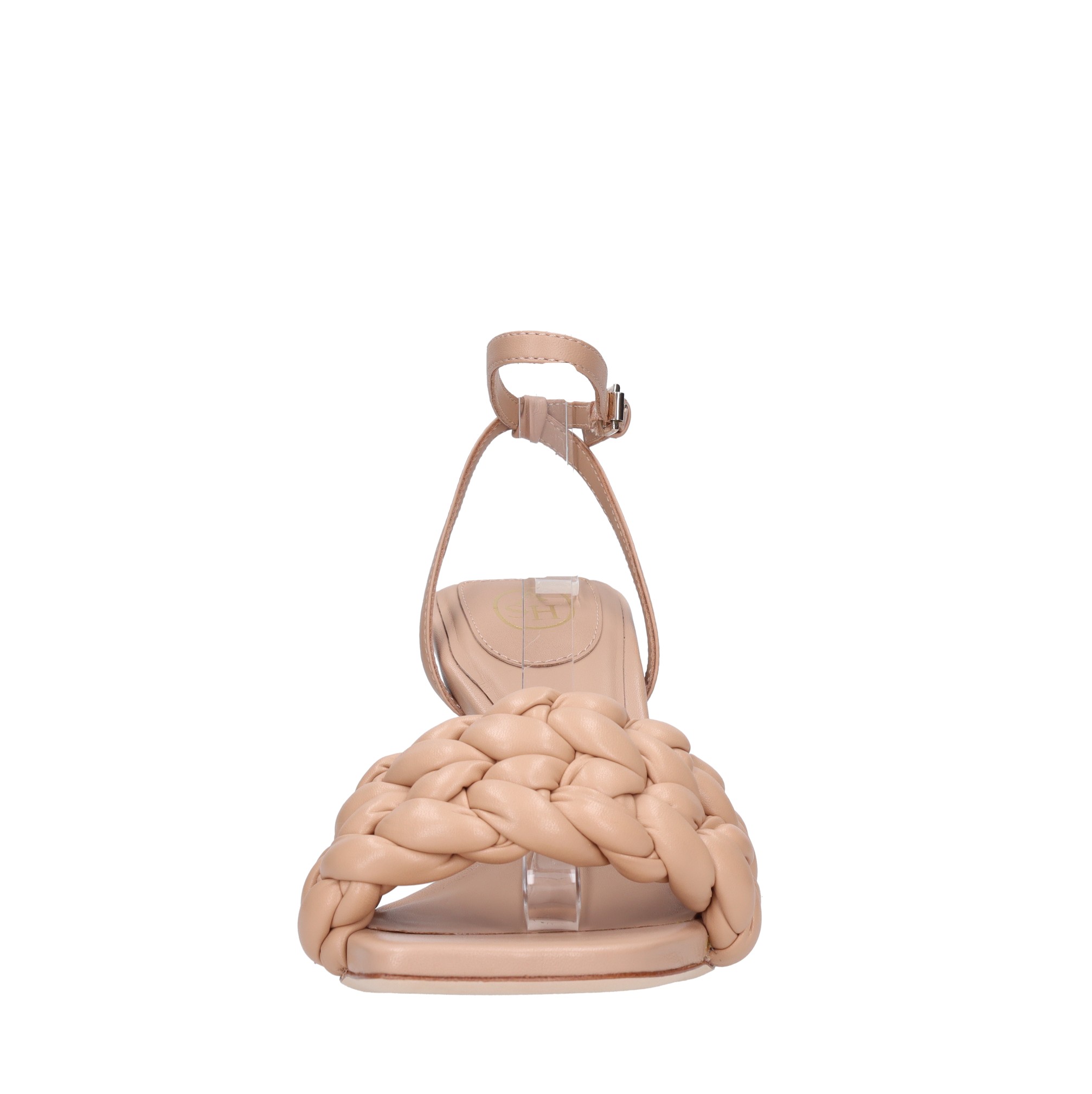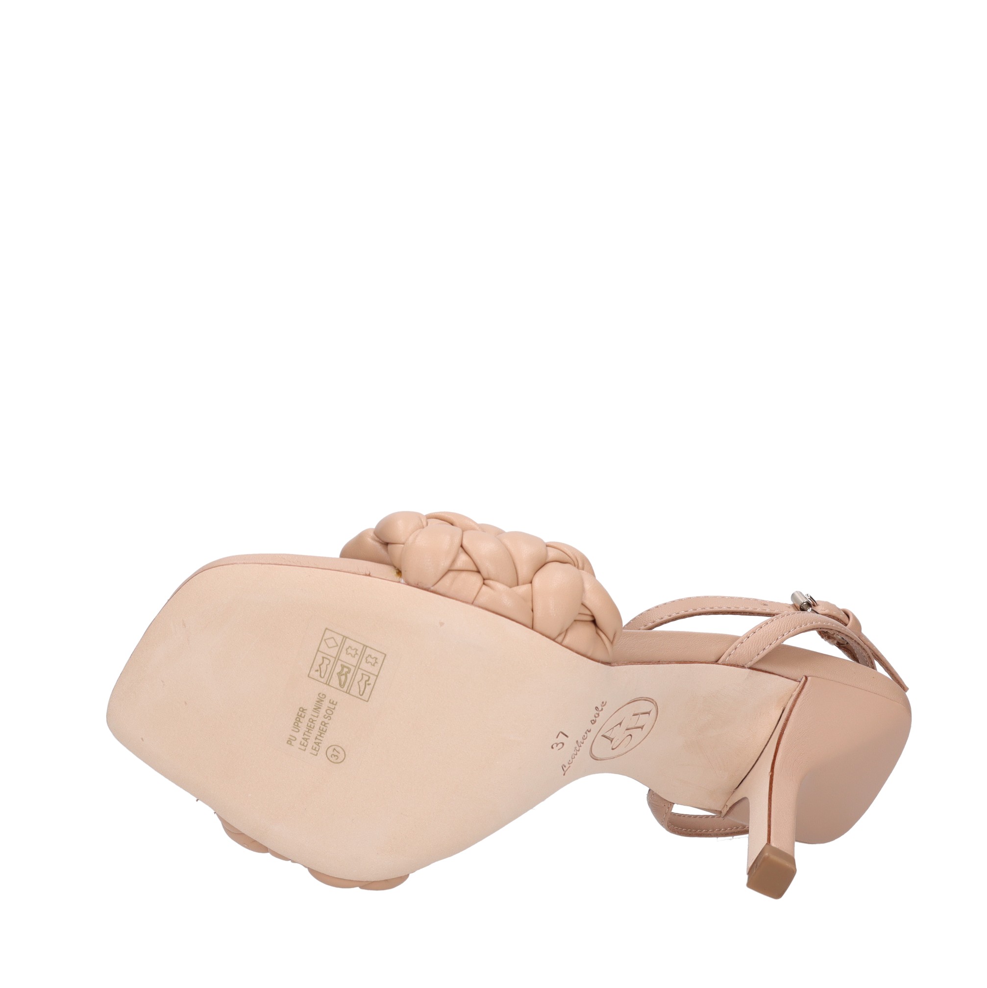 Sandalias de piel sintética. Cuero ecológico tejido. Correa con cierre de hebilla. Suela de cuero. Parte superior interna de cuero.