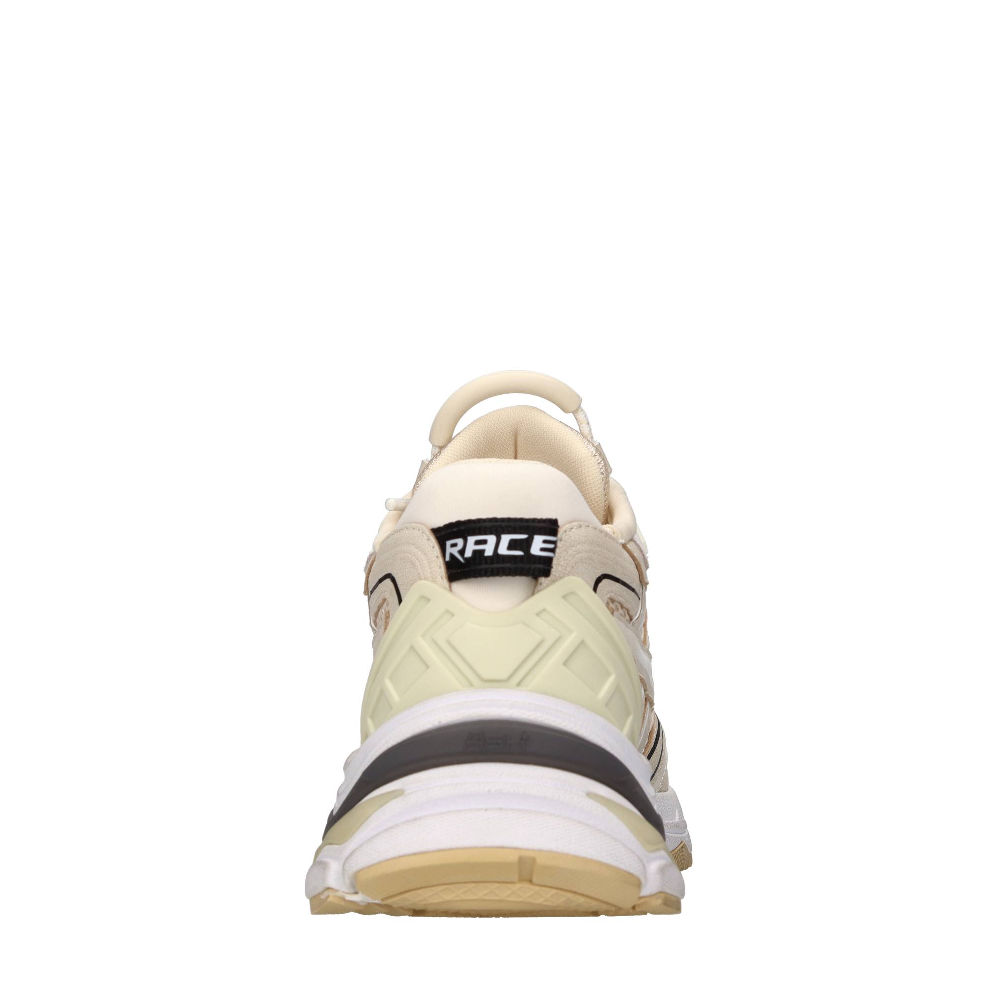Zapatillas modelo de carrera en cuero y tela. Cierre frontal con cordones. Suela exterior de goma. Parte superior interna en tela.