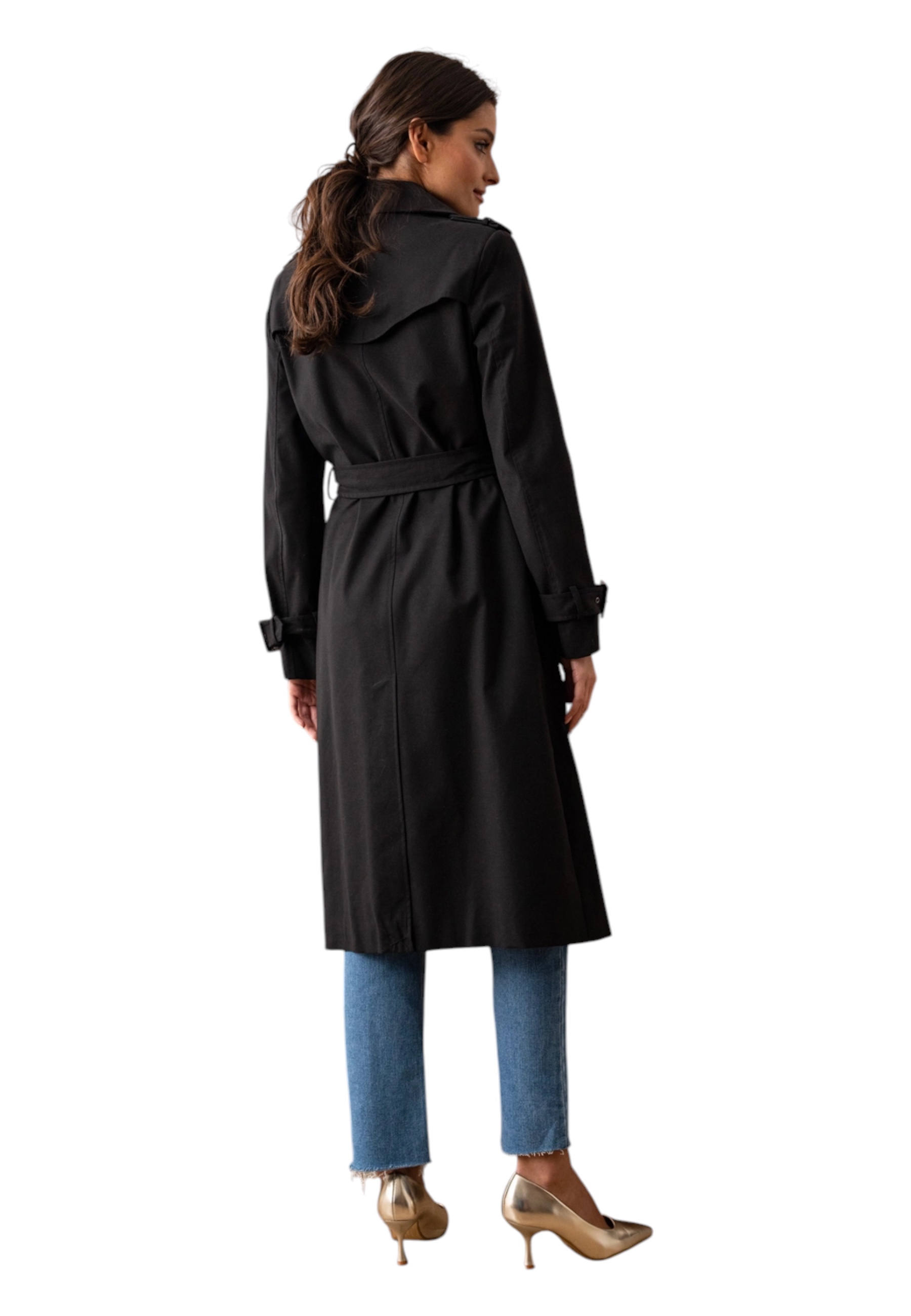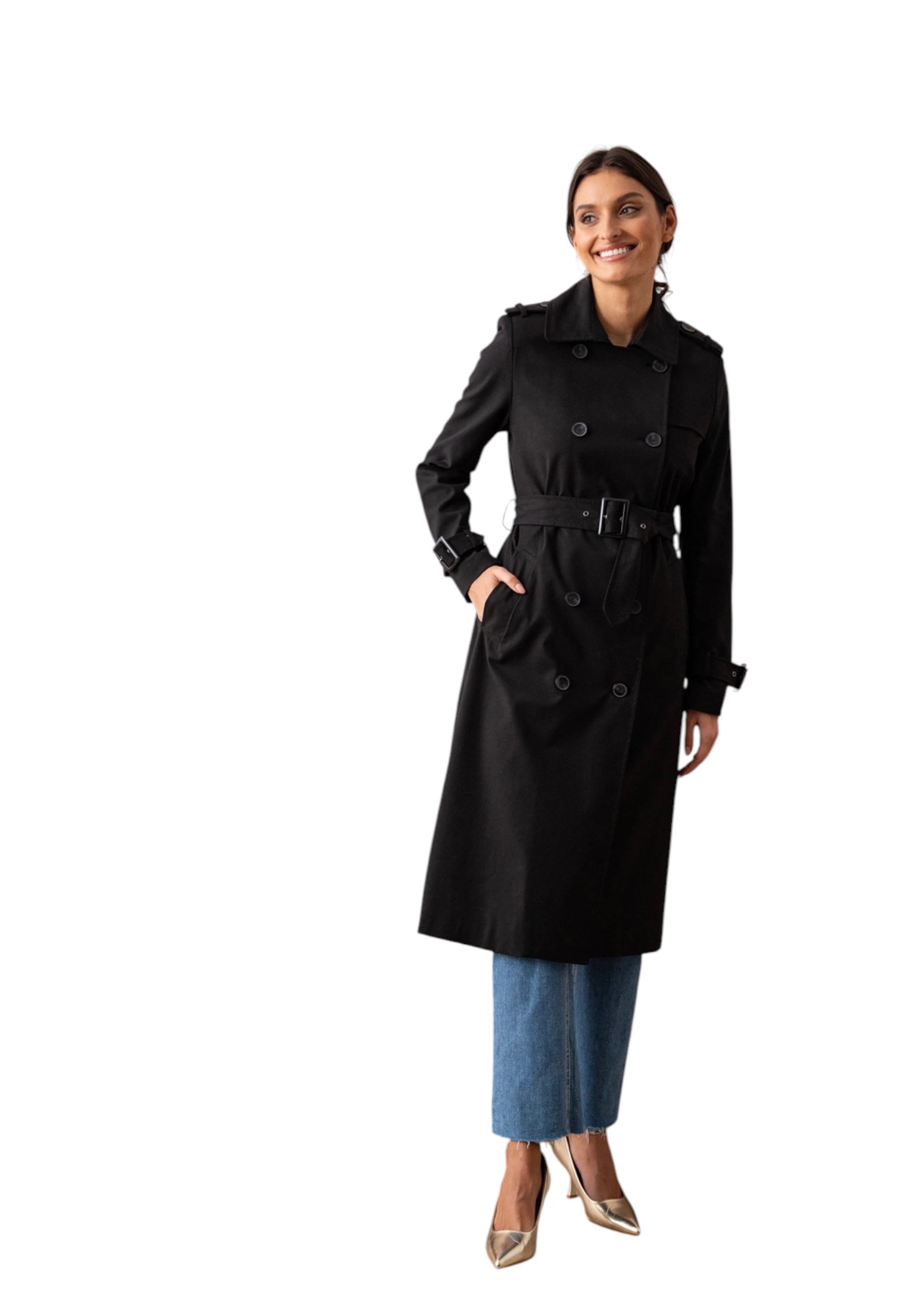 Trinchera larga en color sólido con cinturón en caderas y mangas