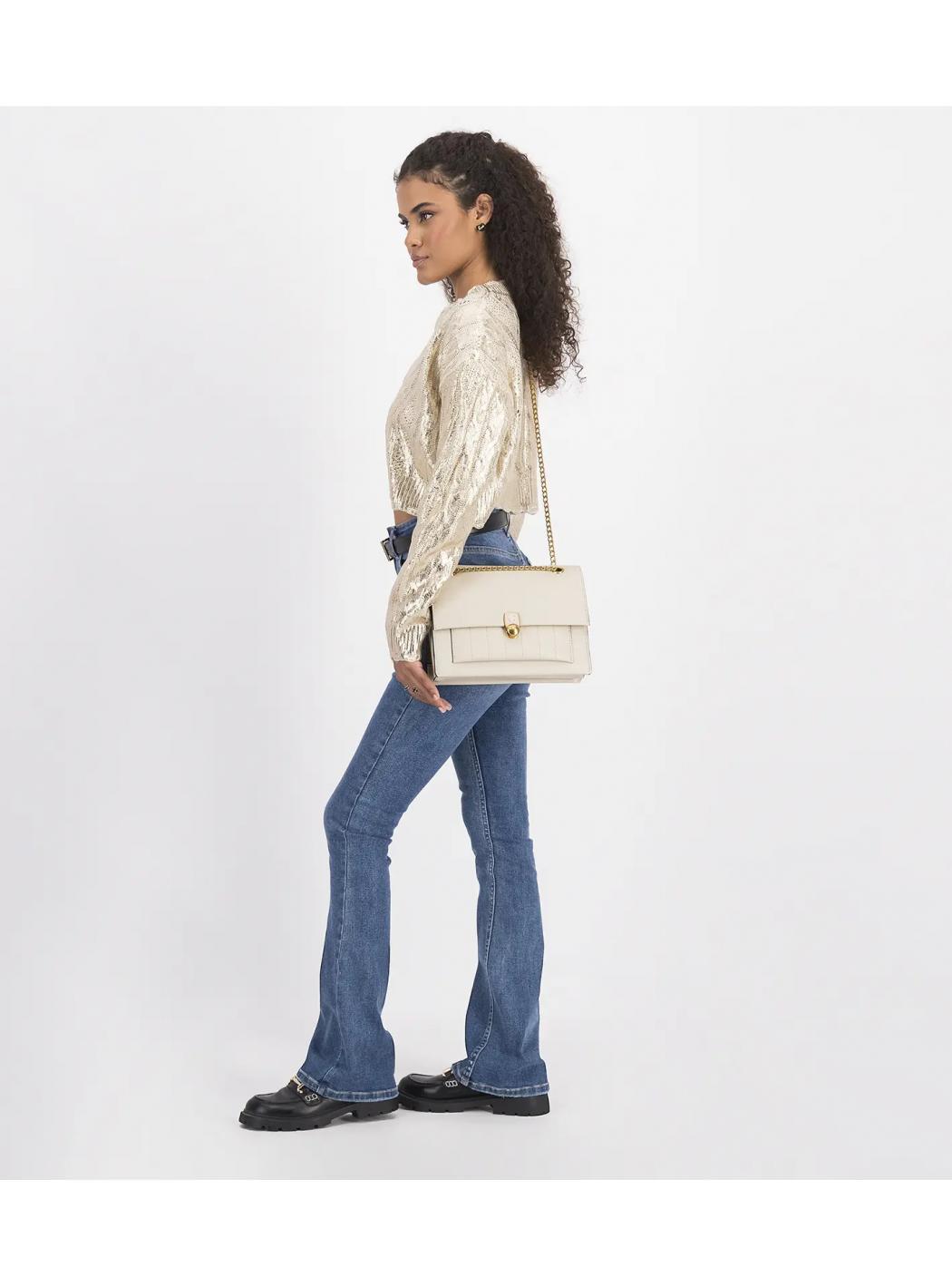 La bolsa de hombro de las mujeres Lynda está hecha de alta calidad. Cuenta con detalles cosidos en la parte delantera, junto con una cadena de metal dorado que añade un toque lujoso. La bolsa cierra con una solapa y una hebilla para mayor seguridad. En su interior, se divide en múltiples compartimentos para una mejor organización de sus objetos, con el central fijado por una cremallera. Su diseño mínimo y líneas limpias lo convierten en la opción ideal para cualquier estilo.