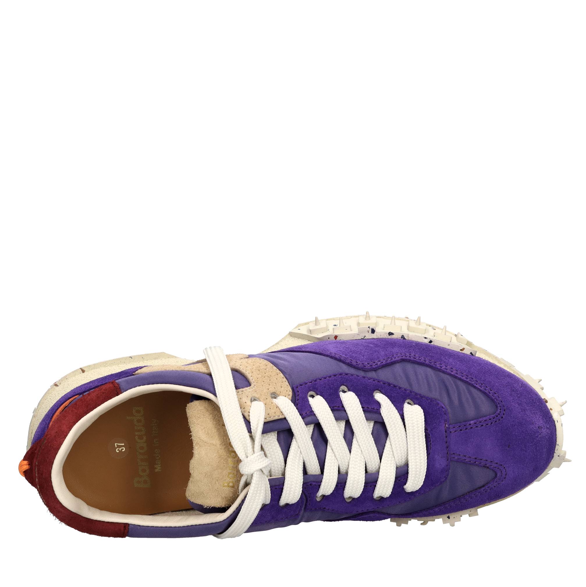 Zapatillas multimateriales. Extremo exterior en suede y tela. Cierre frontal con cordones. Parte superior interna en cuero y tela.