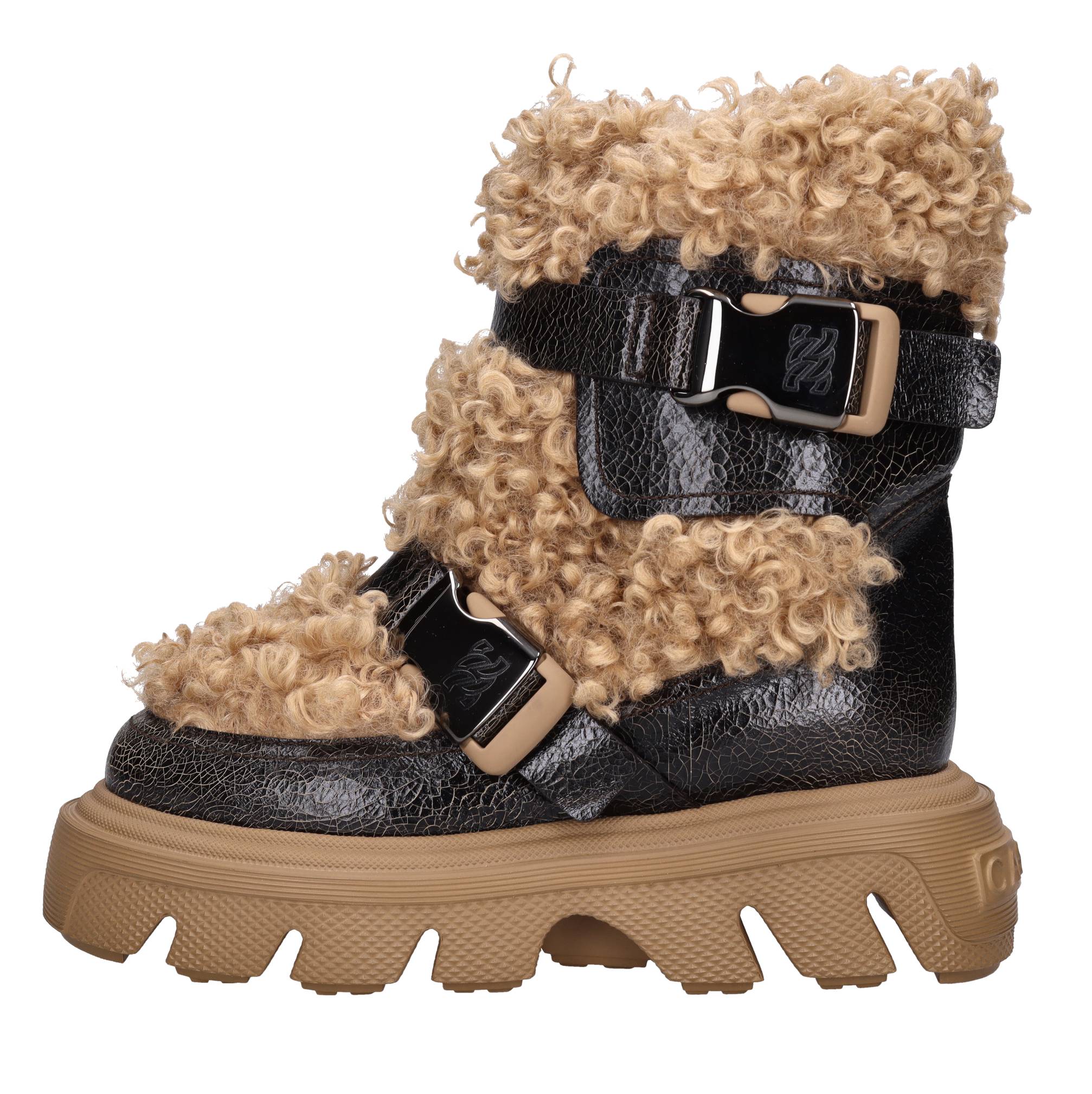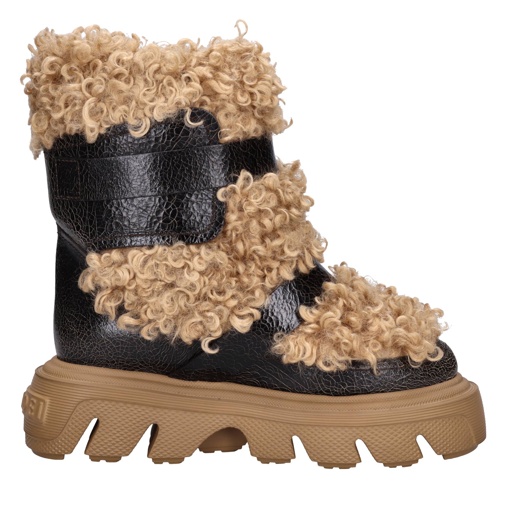 Botines en piel y pelo sintético. Suela de goma con logo. Parte superior interna en pelo sintético. Muestra. Se envía en caja neutra.